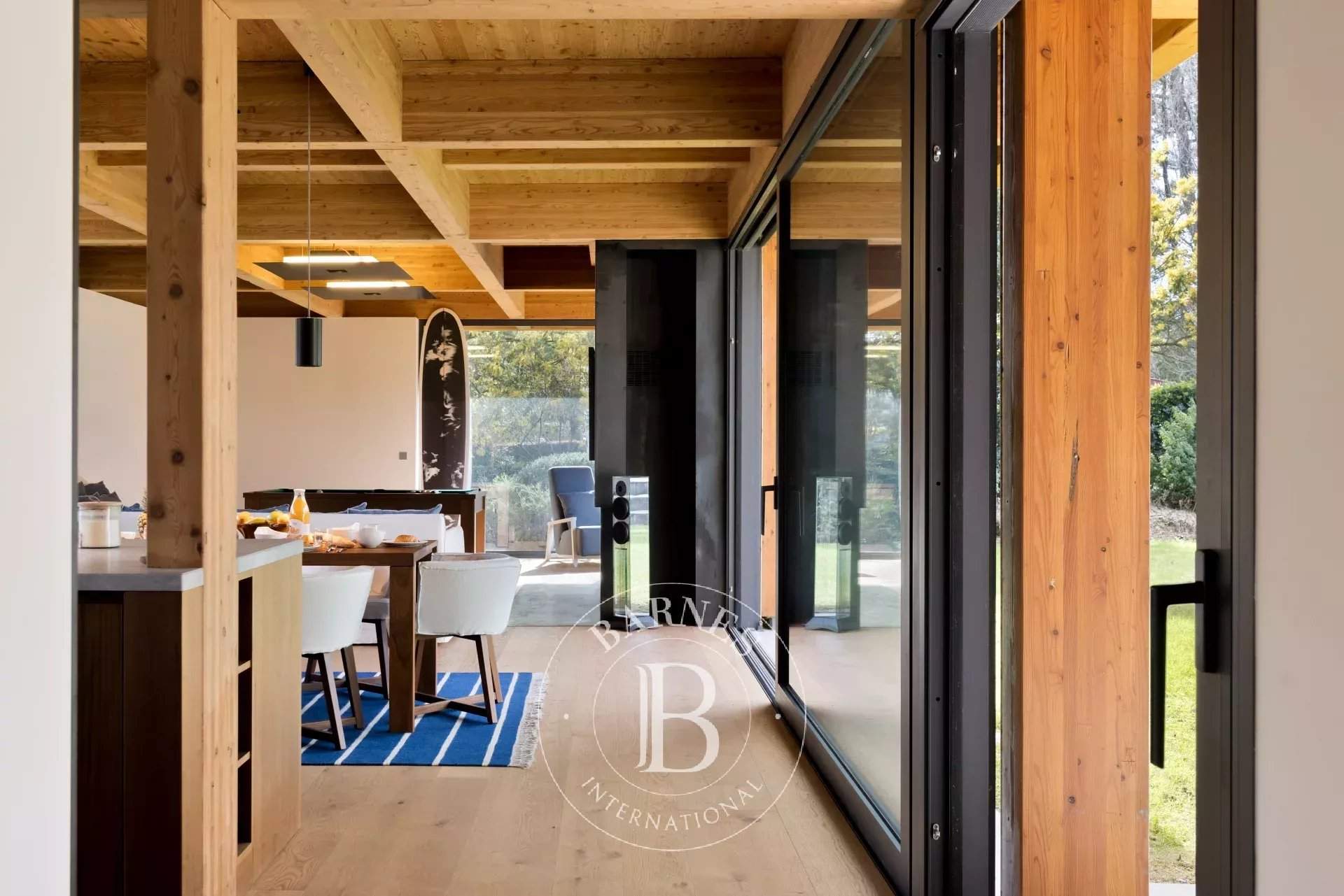 Discover villa MAJESTIC, a modern and contemporary wooden villa located between the Golf Club of L'Impératrice and the Golf Club of Chiverta, 5 minutes walk from the beaches. It has 4 bedrooms and 3 bathrooms, a large garden, a terrace, a heated swimming pool and a garage. On the 1st level you will find a living room with pool table, a dining room and a modern fully equipped kitchen. There is also a large garden with a terrace and swimming pool. On the ground floor there is a children's room with a bunk bed, a sofa bed and a separate bathroom with shower. On the first raised level, there are 2 other bedrooms both having the same configuration each comprising a double bed and sharing a separate shower room and toilet. An office is a master suite on the 1st floor. It has A/C, a double bed, a dressing room and a balcony. The bathroom is equipped with a shower and a bath.