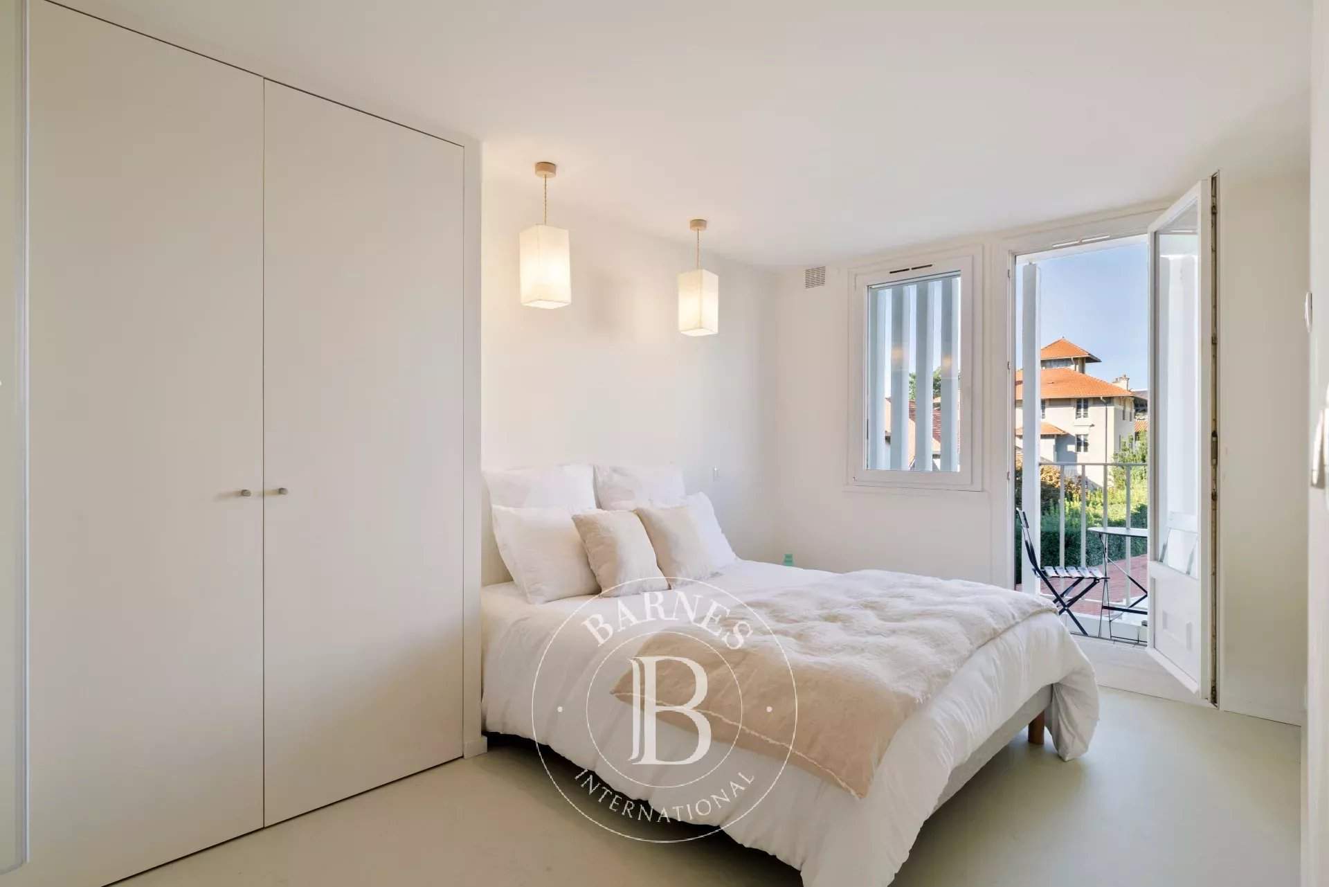 Located on the 5th floor of an inner city building, the Ernest apartment enjoys an unobstructed view on the Biarritz's park and an exceptional brightness thanks to its many windows. Upon entering the apartment, you step into the spacious living area, bathed in light. It comprises a large dining area, an open kitchen, a spacious balcony, and a cozy couch area. A wall projector mount is available in the lounge (no TV). The master suite has a Queensize bed, a large wardrobe and a private shower room with Italian shower. A second bedroom, also with a Queensize double bed and plenty of storage space, completes the sleeping area. The third bedroom has a single bed with an extra pull-out bed. The last two bedrooms share a large, spacious and comfortable shower room. The apartment comes with underground parking in the building. The Biarritz Market Halls, downtown boutiques, and the beaches can be easily reached walking.