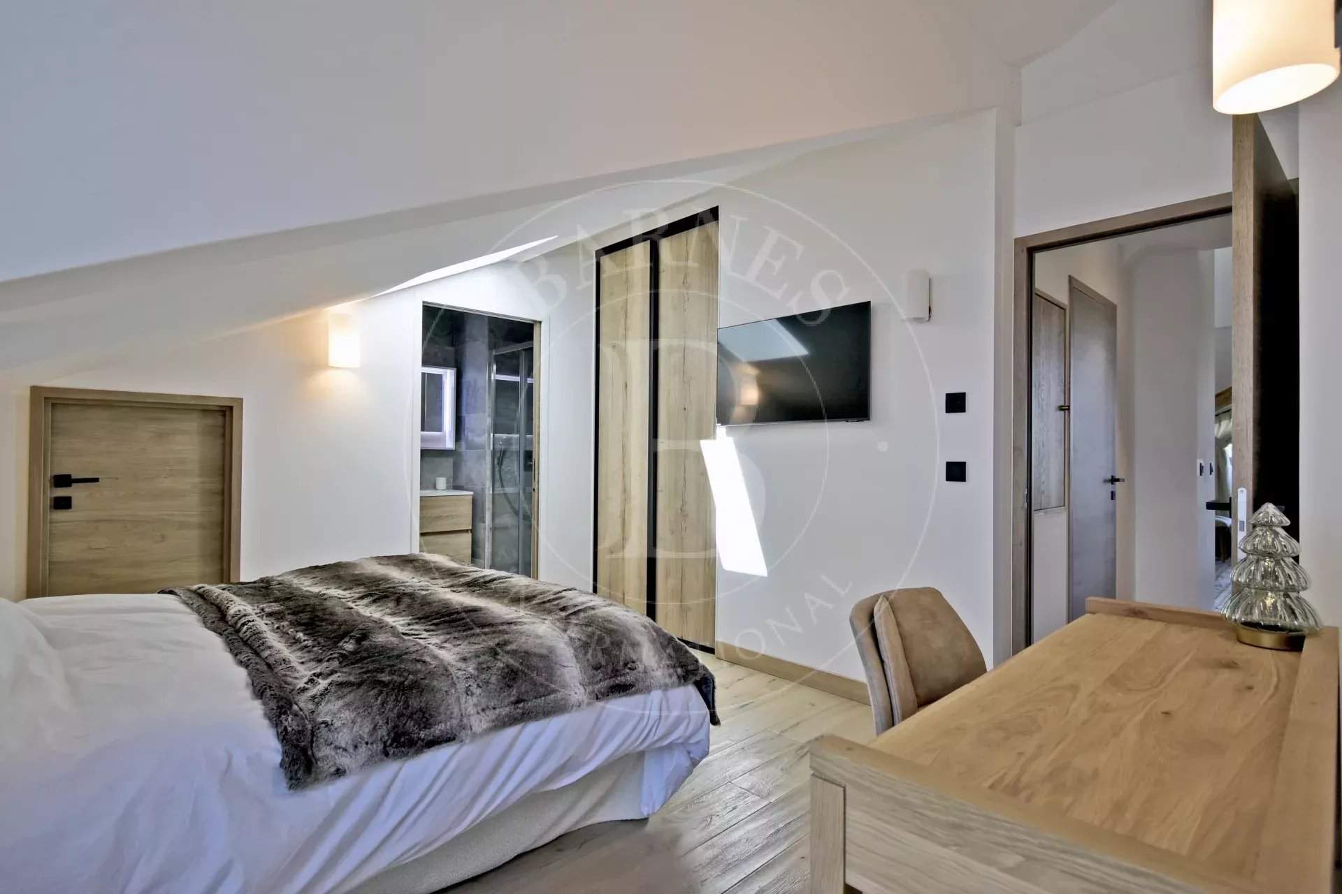Charming apartment in the heart of the Domaine de L'Ariondaz, in Courchevel 1650. This brand new apartment of 147m² is ideally located and has all the essential equipment for an unforgettable stay in the heart of the largest ski area in the world. It is composed as follows: - Bedroom 1: 1 double bed, 1 dressing room & an en-suite bathroom with 1 sink and 1 WC - Bedroom 2: 1 double bed & an en-suite bathroom with 1 sink and 1 WC - Bedroom 3: 2 bunk beds for sleeping - Bedroom 4: 1 double bed - 1 bathroom with 2 sinks - 1 separate WC - 1 large living area - 1 fully equipped kitchen Included services: - Personalized welcome - Welcome products - Beds made upon arrival - Towels provided - End-of-stay cleaning - Concierge service