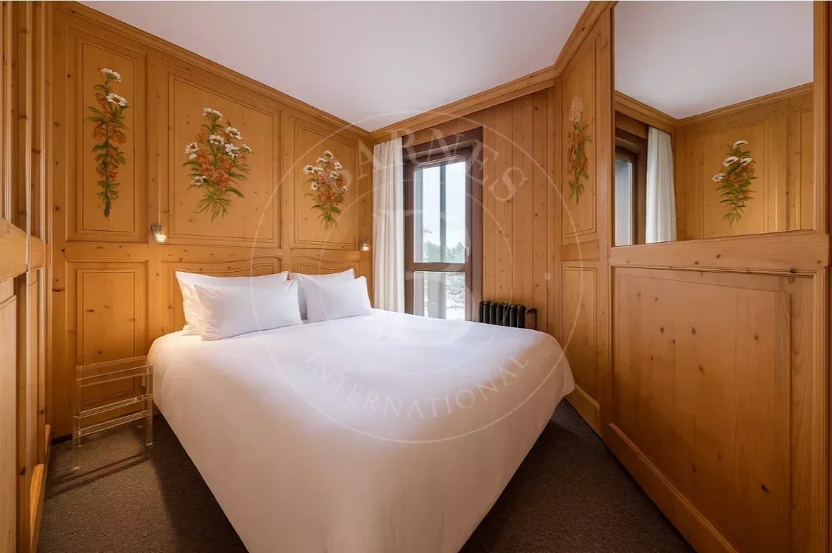 Ideally located apartment in Courchevel 1850 with direct access to the 'Jardin Alpin' green run and the cable car connecting to the town centre. Located in the iconic Domaine du Jardin Alpin residence, this is a beautiful apartment for 4 people. It comprises a fully equipped kitchen, a cosy living room, a double bedroom and a cabin. The advantages of this accommodation: - Ski-in/ski-out - Ideal location - Cable car connecting the town centre to the foot of the residence - Quiet and secure residence - Ski locker Apartment layout: - Entrance hall - Fully equipped kitchen: fridge, oven, ceramic hob, Nespresso machine, kettle, toaster and dishwasher - Living room with table for four - Lounge with sofa and armchairs, TV - Bedroom 1: Queen size bed - Bathroom with bath, washbasin and toilet - Bedroom 2: bunk beds with shower room, washbasin and toilet Services included: - Welcome gifts - Welcome products - Beds made on arrival - Towels provided - End-of-stay cleaning - Concierge service