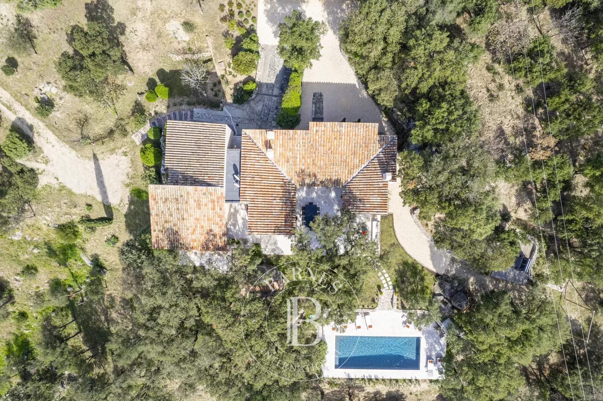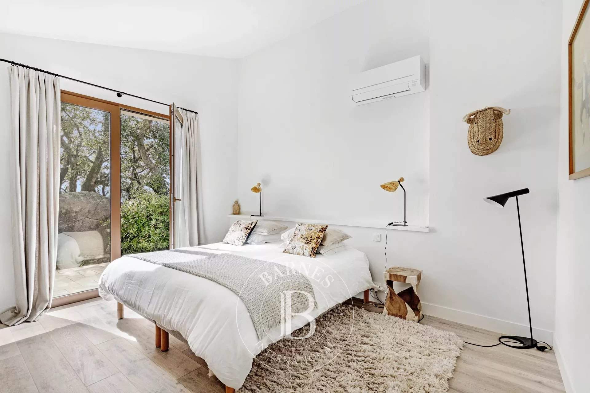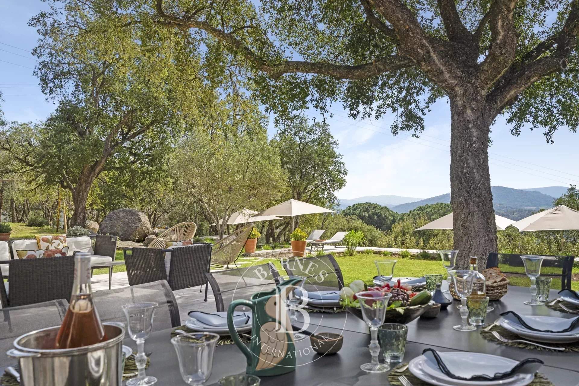 * Villa Roche * Located in the heart of nature, in a secure, quiet and preserved environment in the commune of Plan de la Tour. This 250 sqm (2691 sq. ft.) villa is built on a 1.2 h plot. The property comprises a fully-equipped kitchen, a spacious terrace, and five en suite bedrooms, each with its own shower room. Outside, a large garden planted with trees, a 10 x 5 m swimming pool, numerous relaxation areas and garden furniture. Facilities: Air-conditioning in all bedrooms, gas hob, ping-pong table, swing, parking for several cars, electric gate. Services included: Entrance cleaning and personalized BARNES concierge service. Registration number: 830940003574X