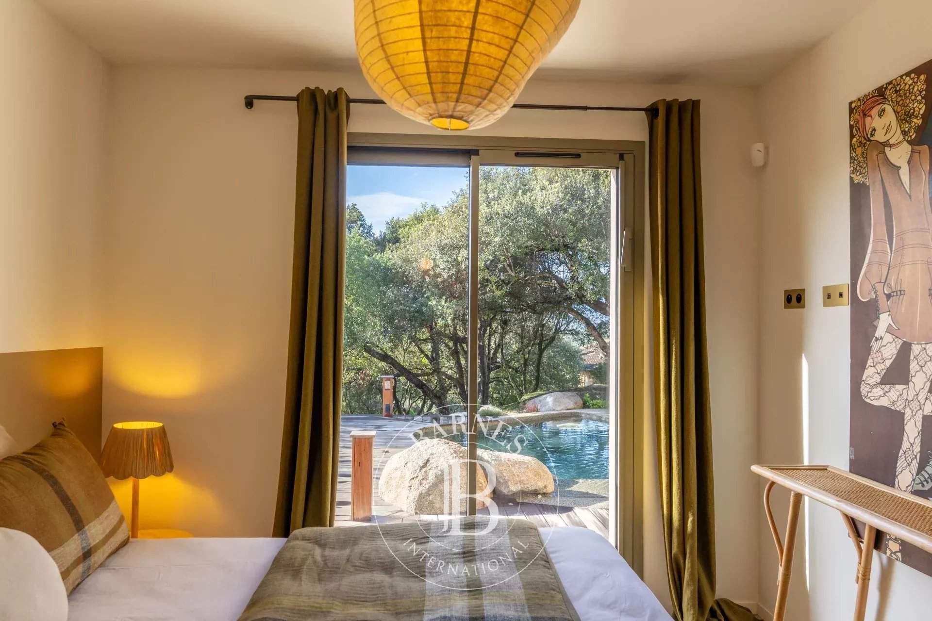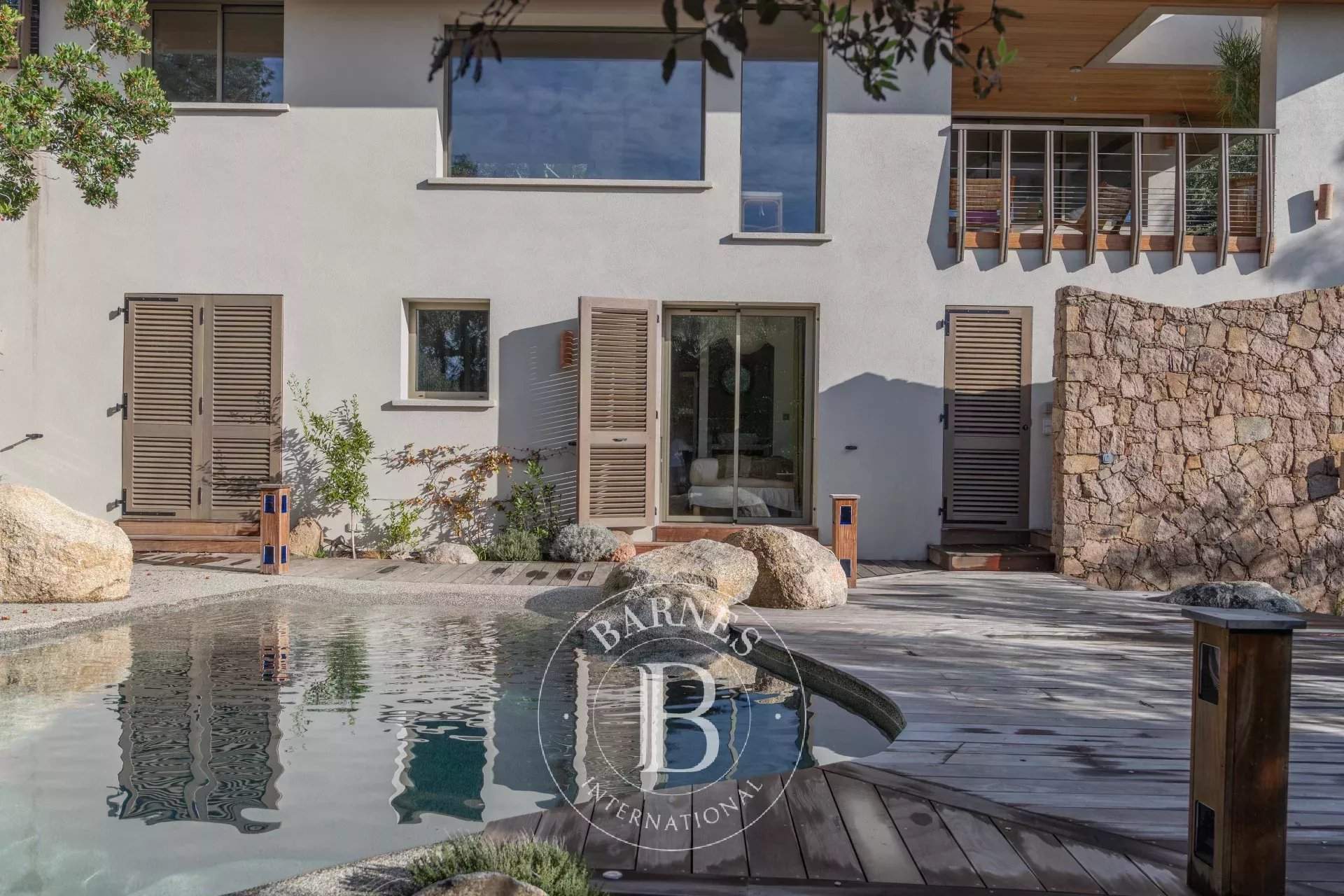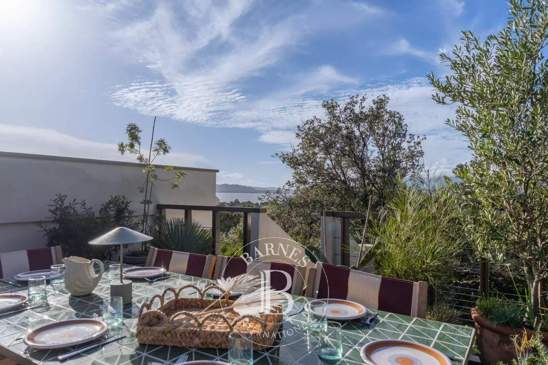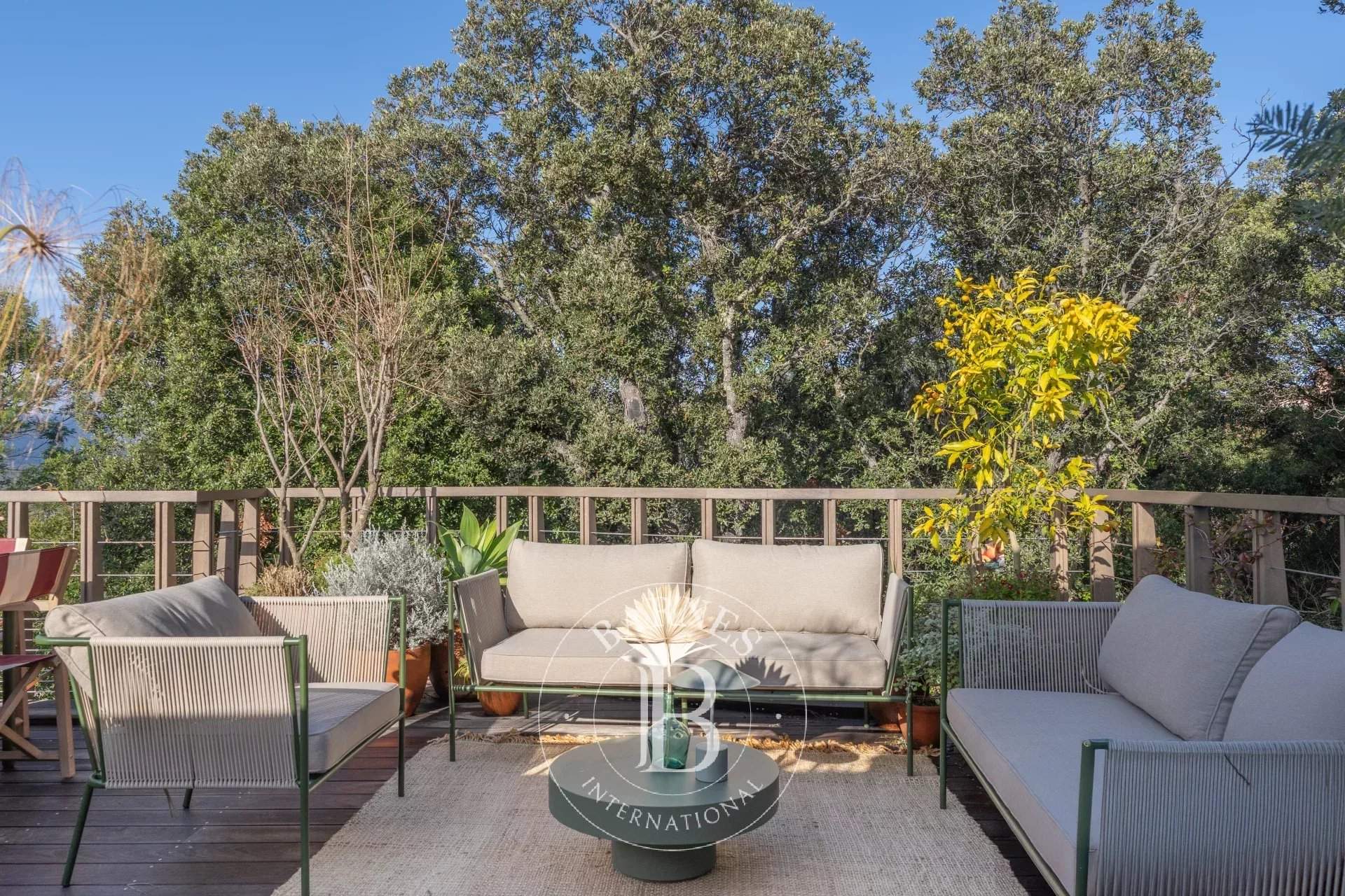 RL443 - Villa A Fiumarella Located in the private Cala Rossa estate, this two-level villa offers an exceptional setting just steps from the beach. Decorated in a chic and refined Mediterranean style, the living and dining areas open onto a shaded terrace, perfect for outdoor meals. The kitchen is fully equipped. The villa features 5 bedrooms, including a children's room, each with its own private bathroom. Outside, a naturally designed pool, secured with an alarm system, completes the comfort. Close to shops and restaurants, the property is just a short walk from the estate's secluded coves. Included services: regular housekeeping, bed linen, pool towels, and a personalised concierge service. Information on the risks to which this property is exposed is available on the Géorisques website: www.georisques.gouv.fr