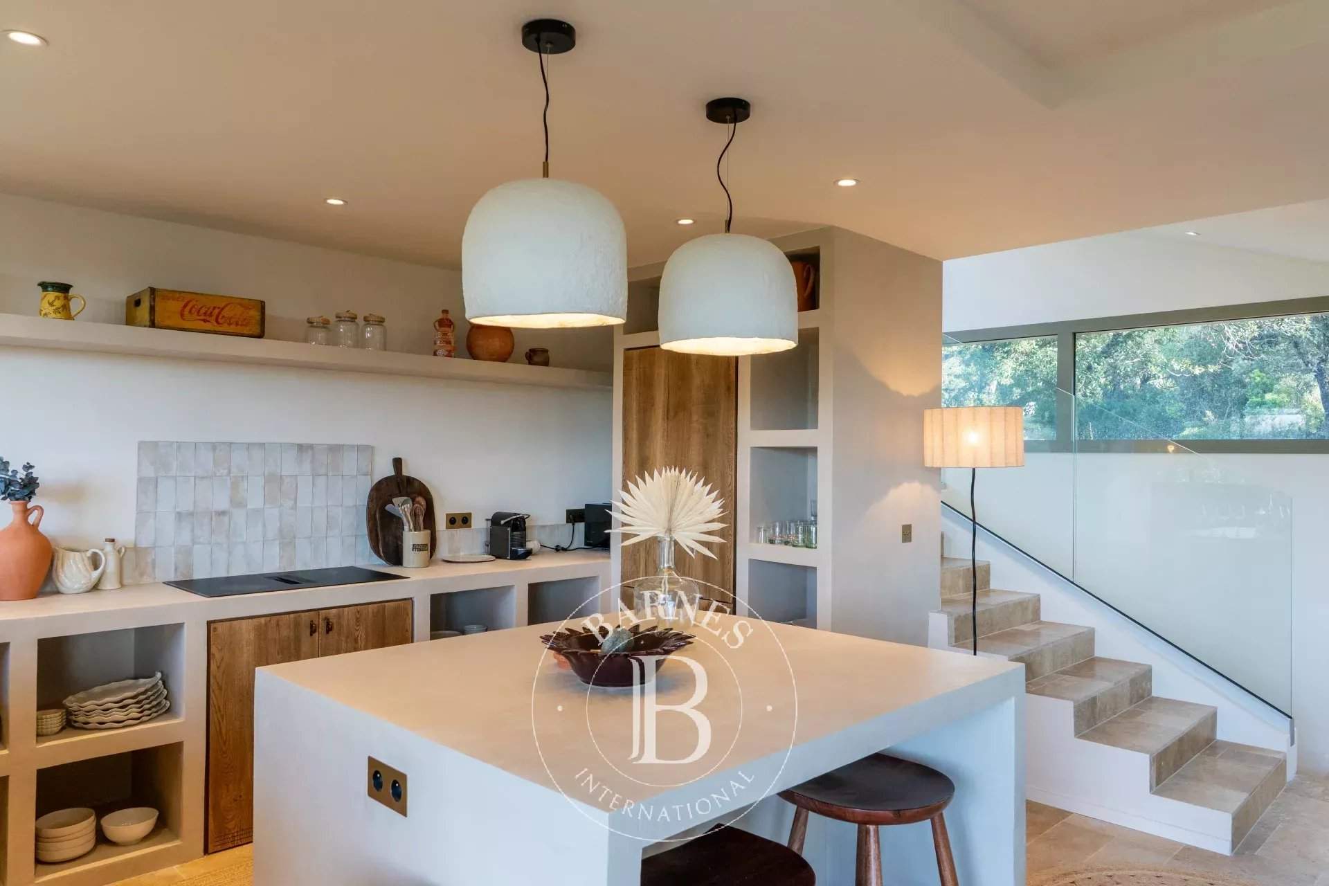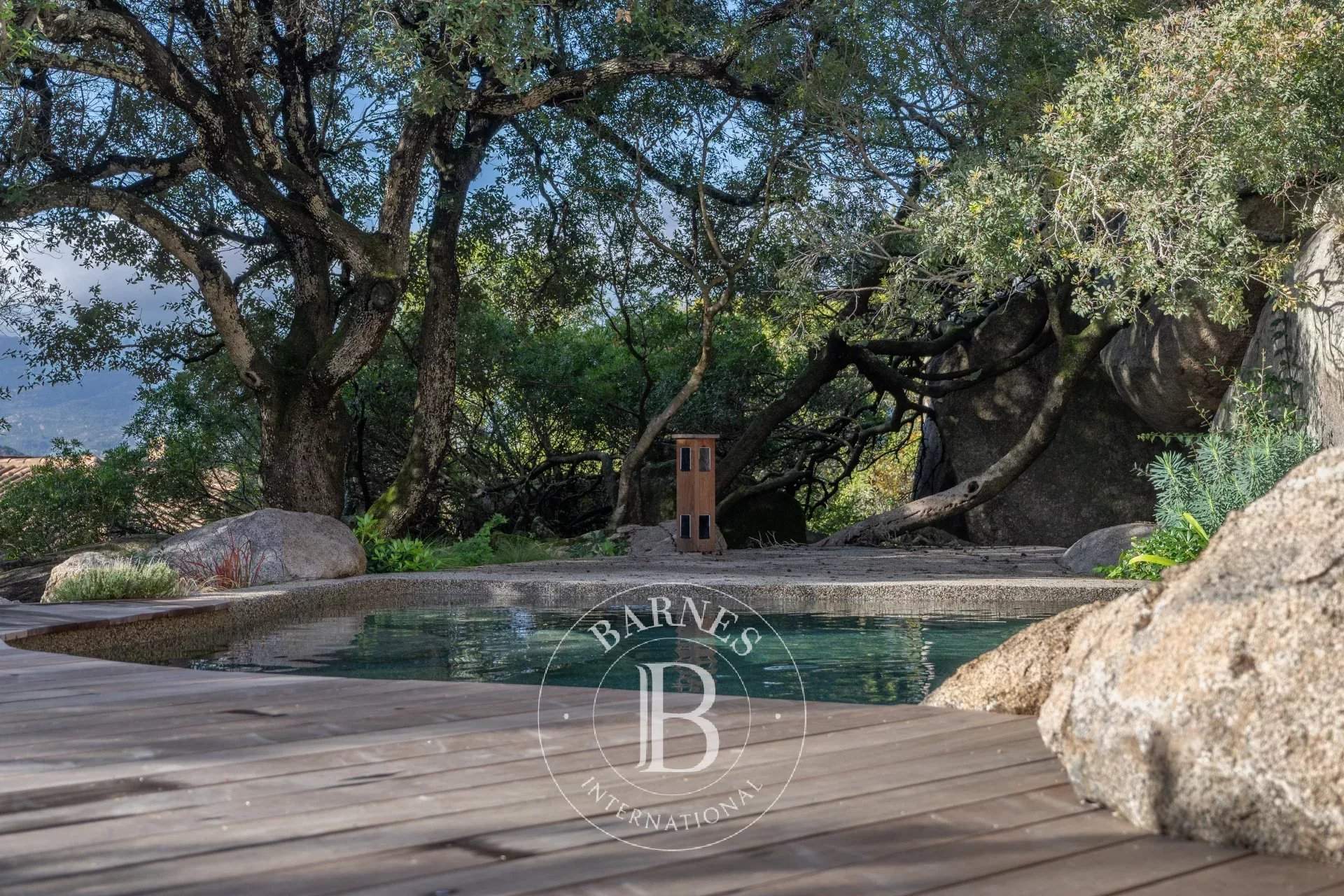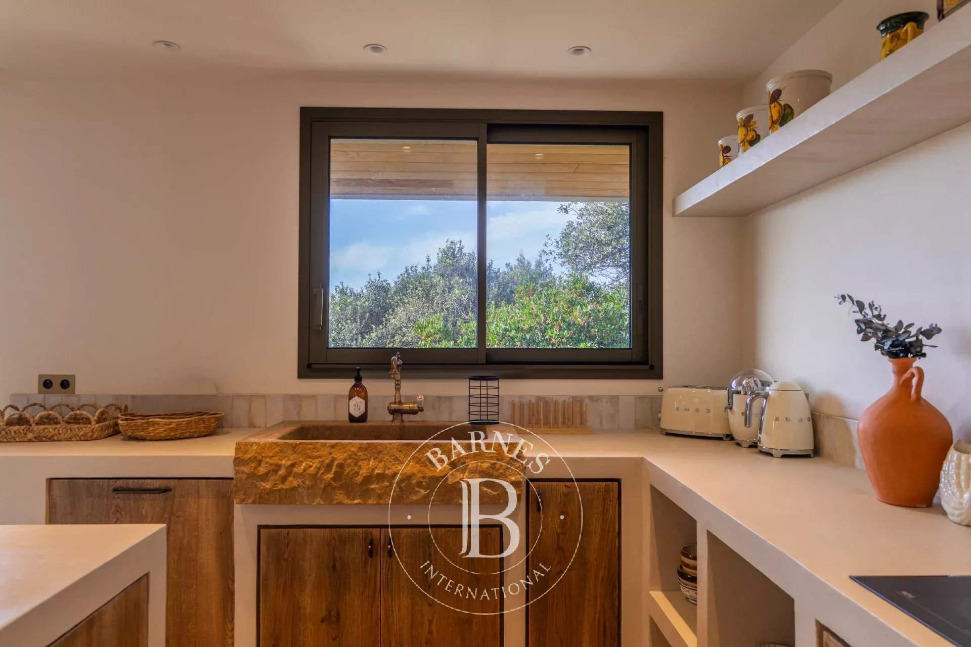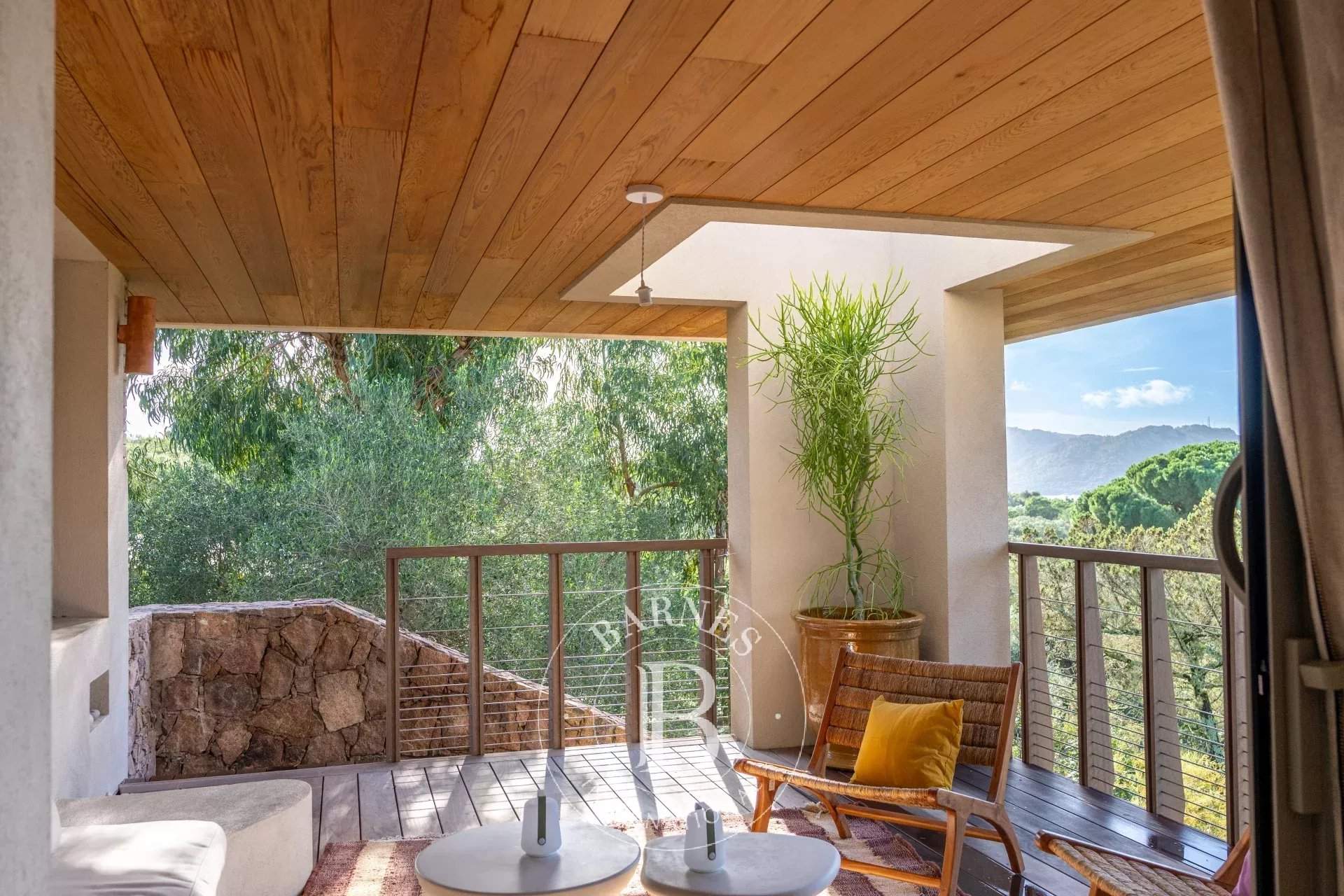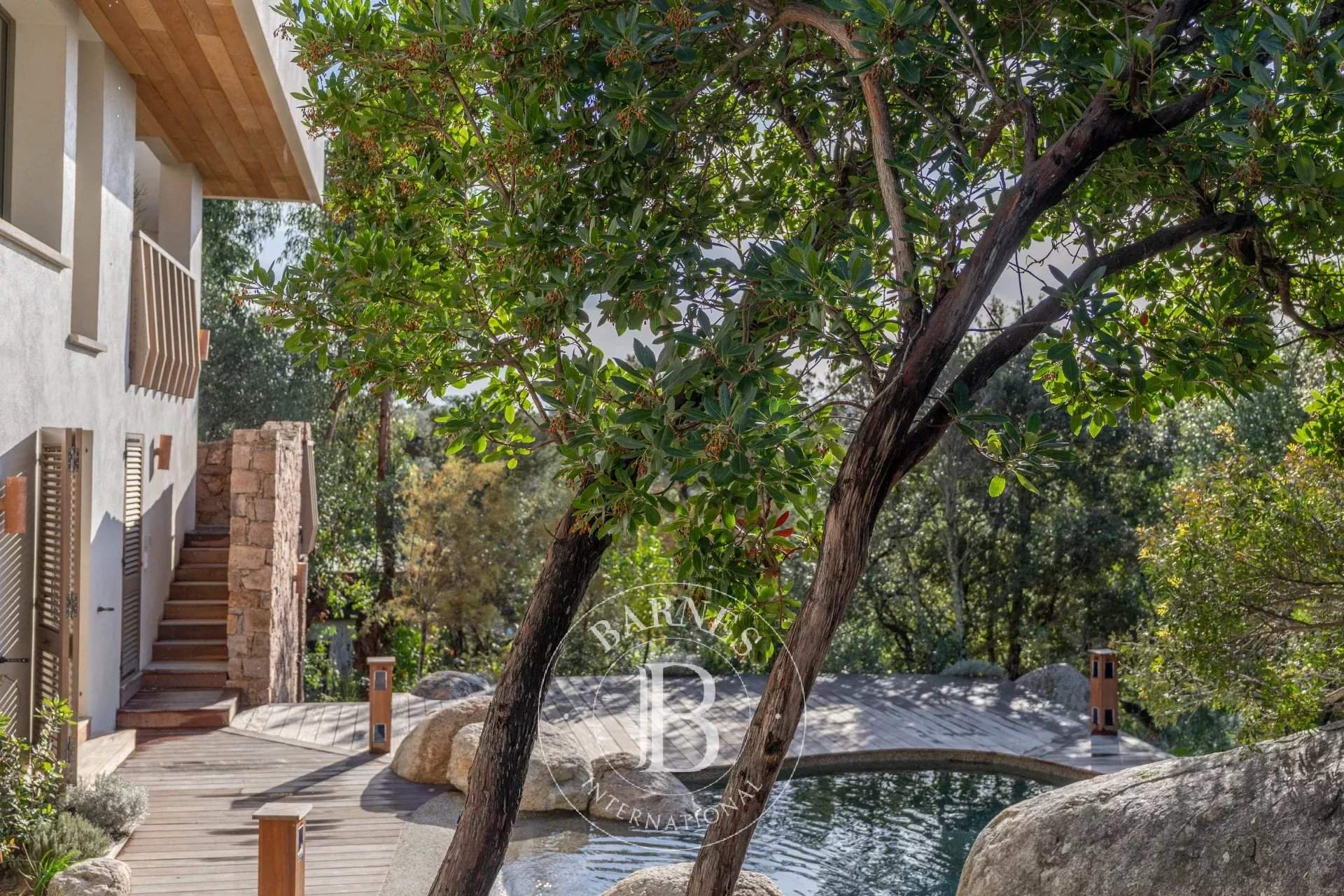 RL443 - Villa A Fiumarella Located in the private Cala Rossa estate, this two-level villa offers an exceptional setting just steps from the beach. Decorated in a chic and refined Mediterranean style, the living and dining areas open onto a shaded terrace, perfect for outdoor meals. The kitchen is fully equipped. The villa features 5 bedrooms, including a children's room, each with its own private bathroom. Outside, a naturally designed pool, secured with an alarm system, completes the comfort. Close to shops and restaurants, the property is just a short walk from the estate's secluded coves. Included services: regular housekeeping, bed linen, pool towels, and a personalised concierge service. Information on the risks to which this property is exposed is available on the Géorisques website: www.georisques.gouv.fr