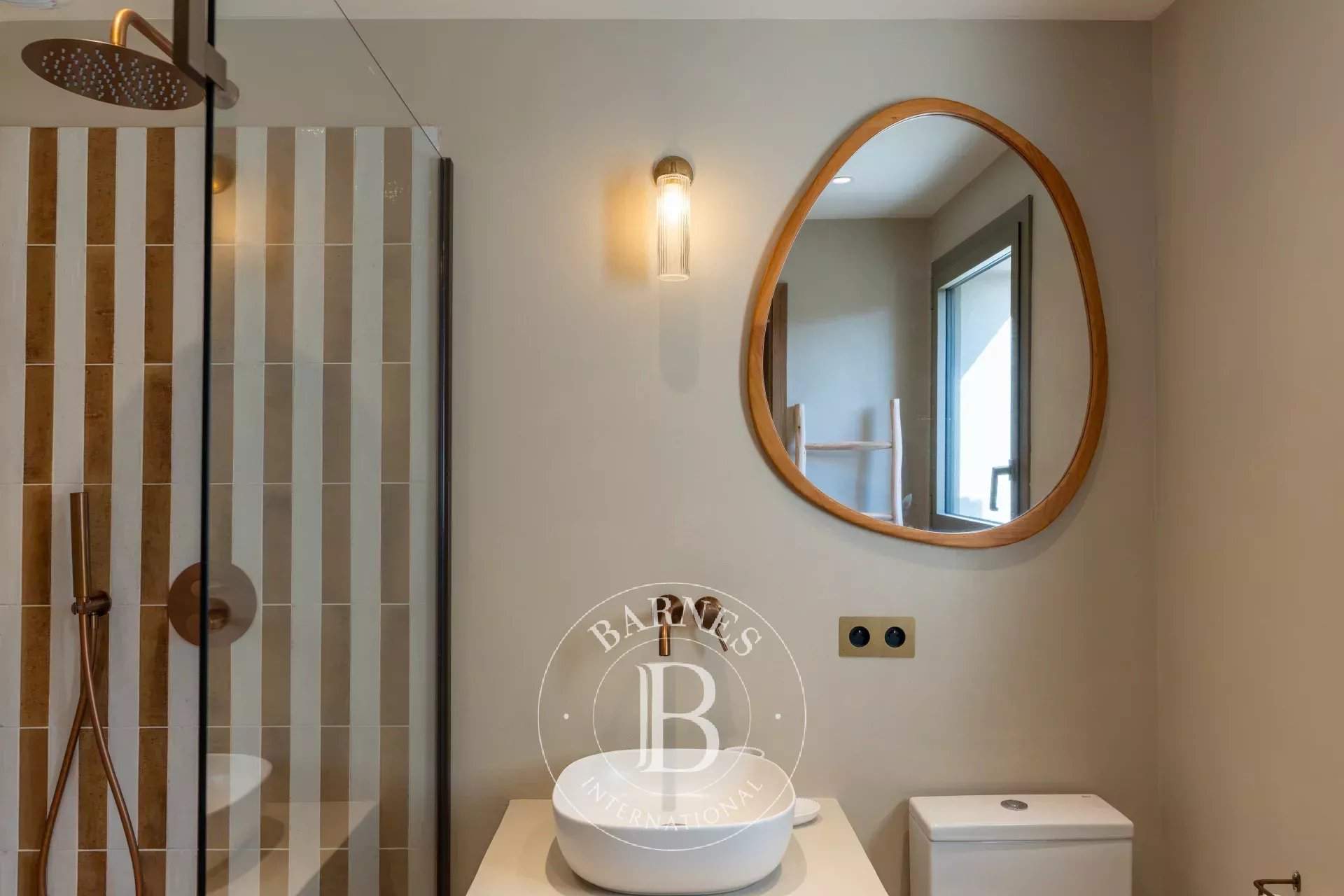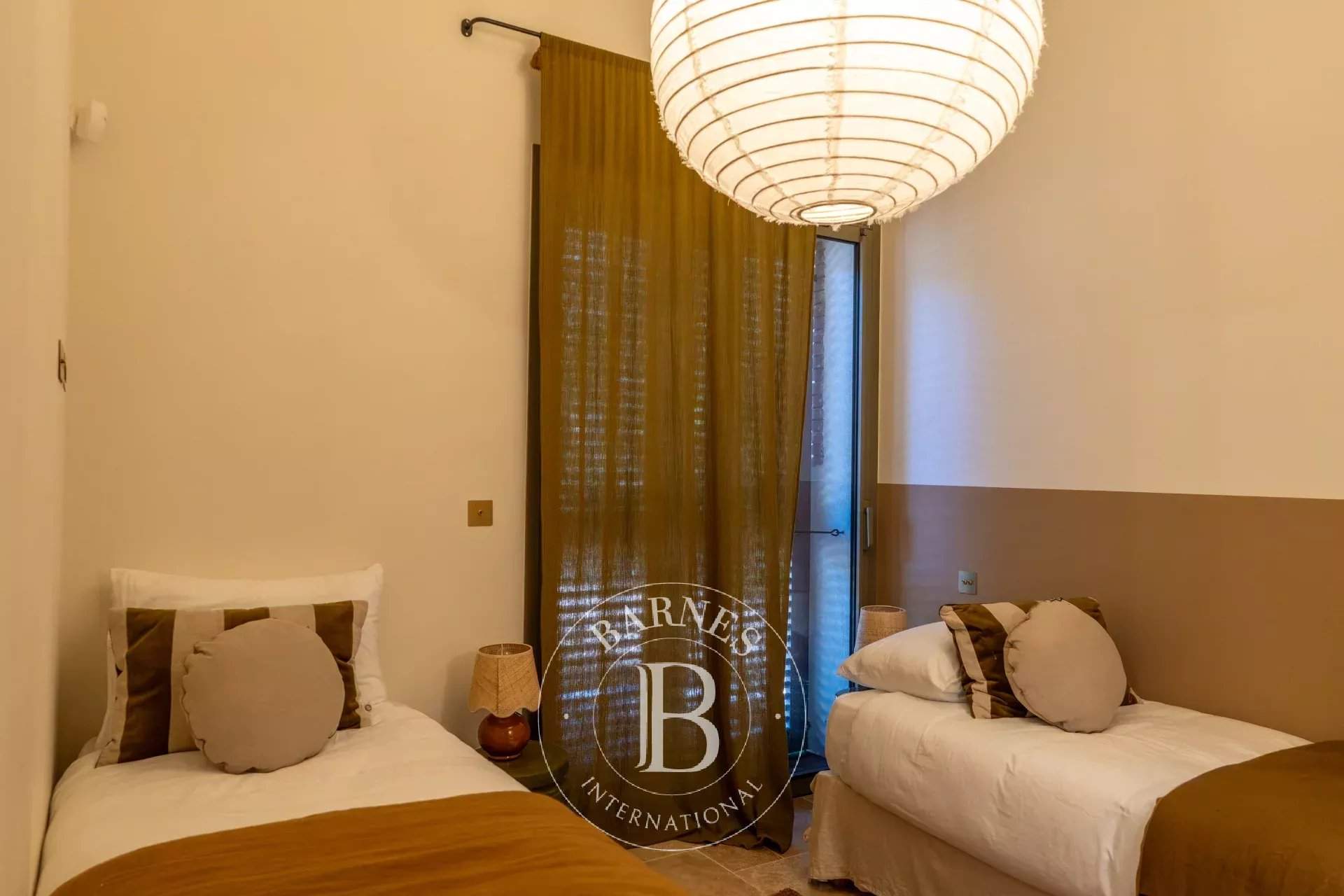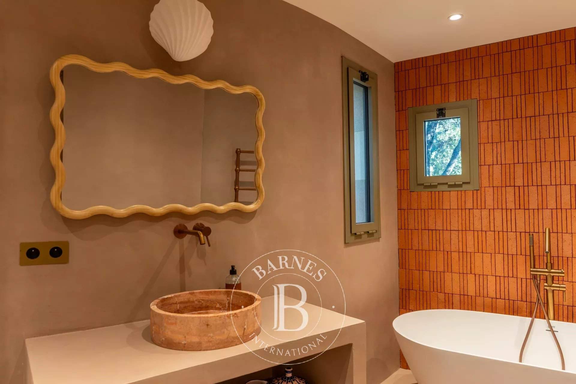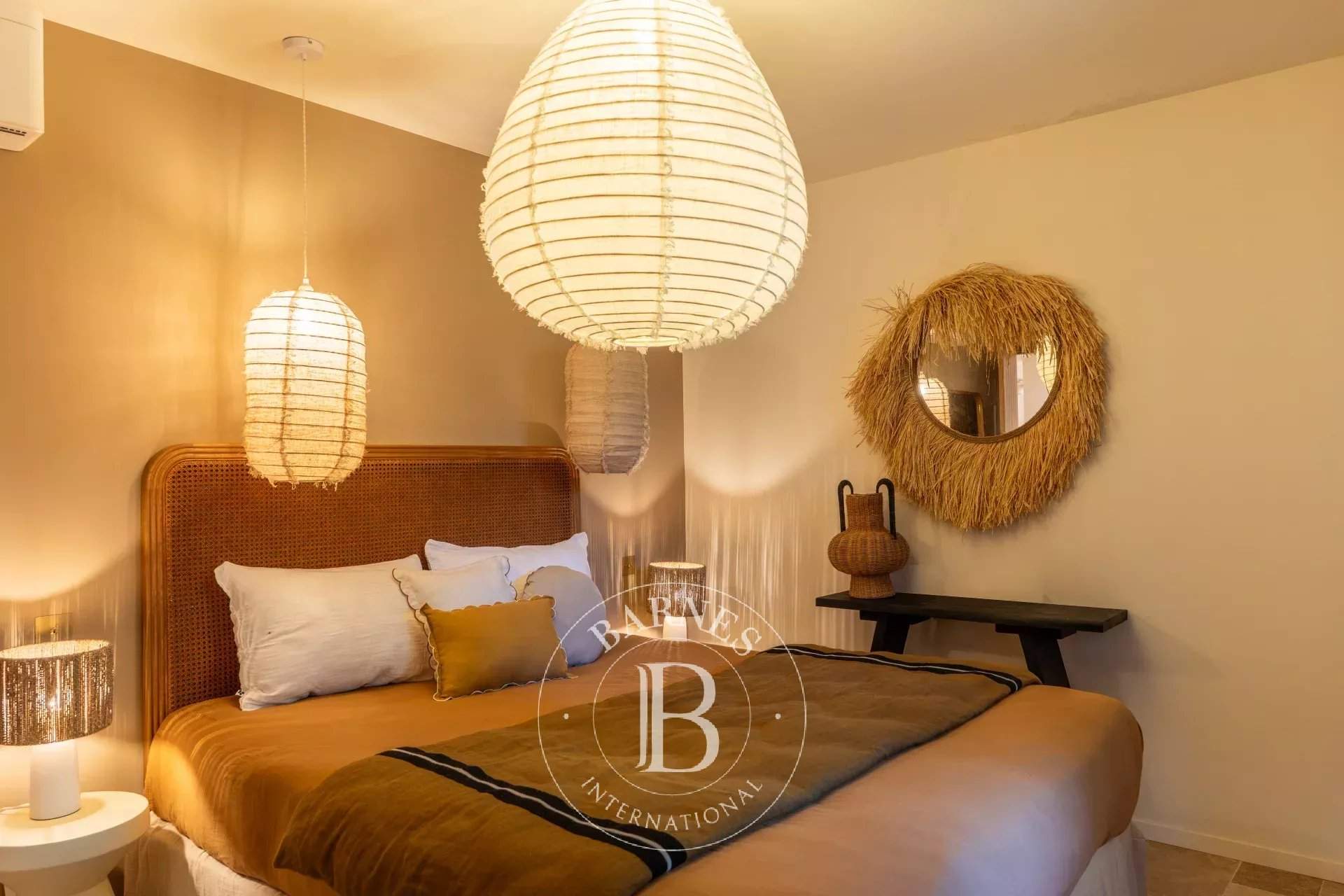 RL443 - Villa A Fiumarella Located in the private Cala Rossa estate, this two-level villa offers an exceptional setting just steps from the beach. Decorated in a chic and refined Mediterranean style, the living and dining areas open onto a shaded terrace, perfect for outdoor meals. The kitchen is fully equipped. The villa features 5 bedrooms, including a children's room, each with its own private bathroom. Outside, a naturally designed pool, secured with an alarm system, completes the comfort. Close to shops and restaurants, the property is just a short walk from the estate's secluded coves. Included services: regular housekeeping, bed linen, pool towels, and a personalised concierge service. Information on the risks to which this property is exposed is available on the Géorisques website: www.georisques.gouv.fr