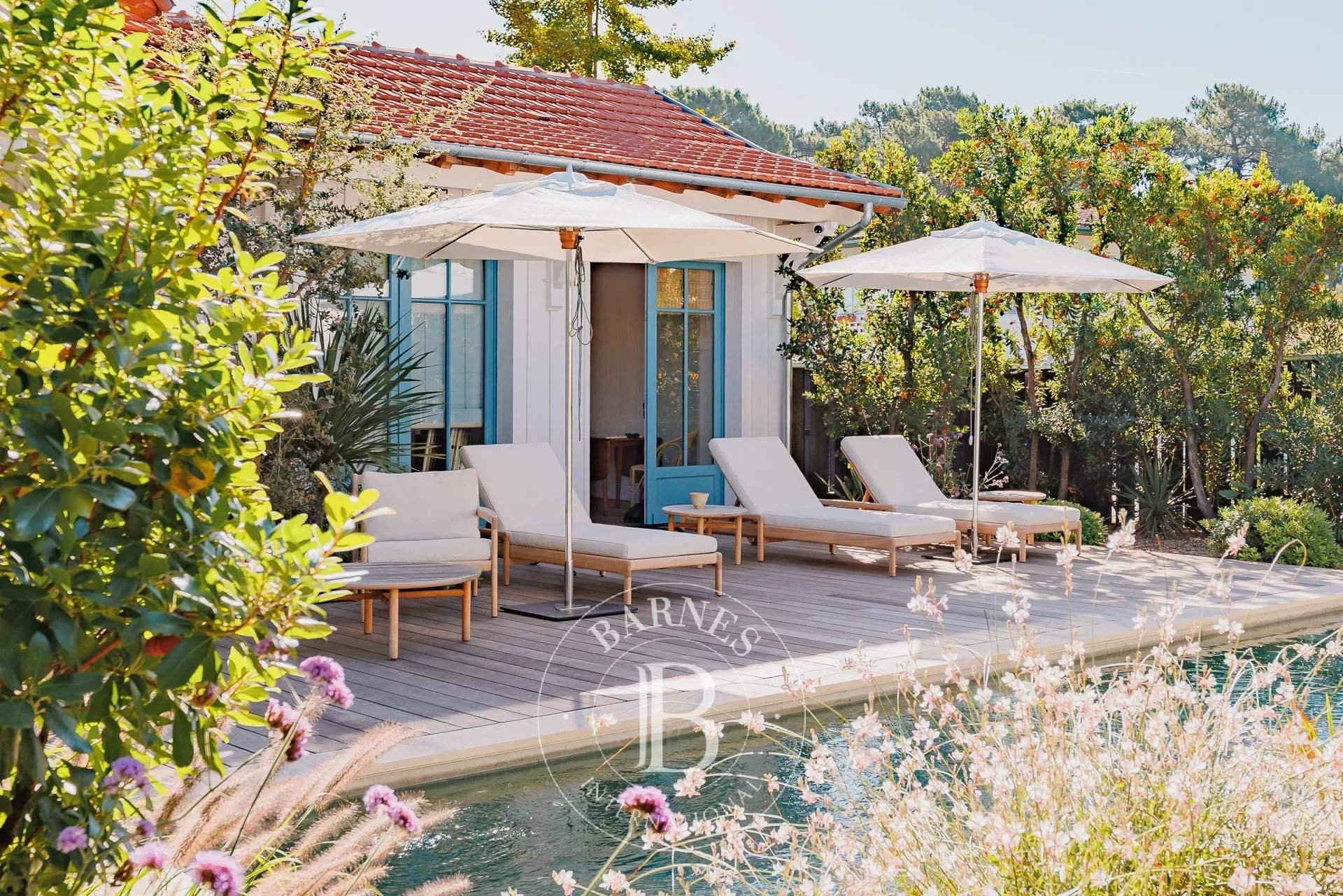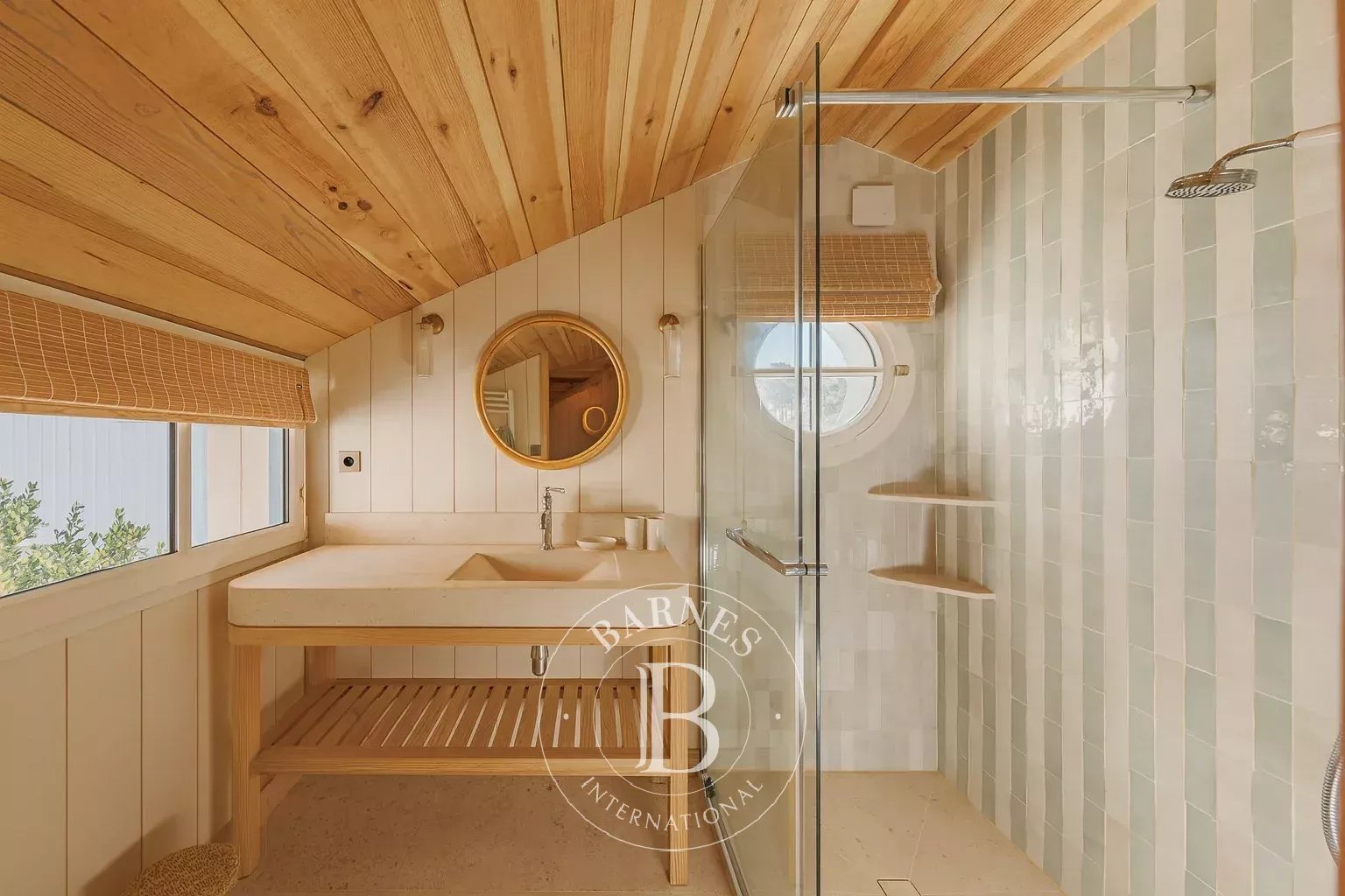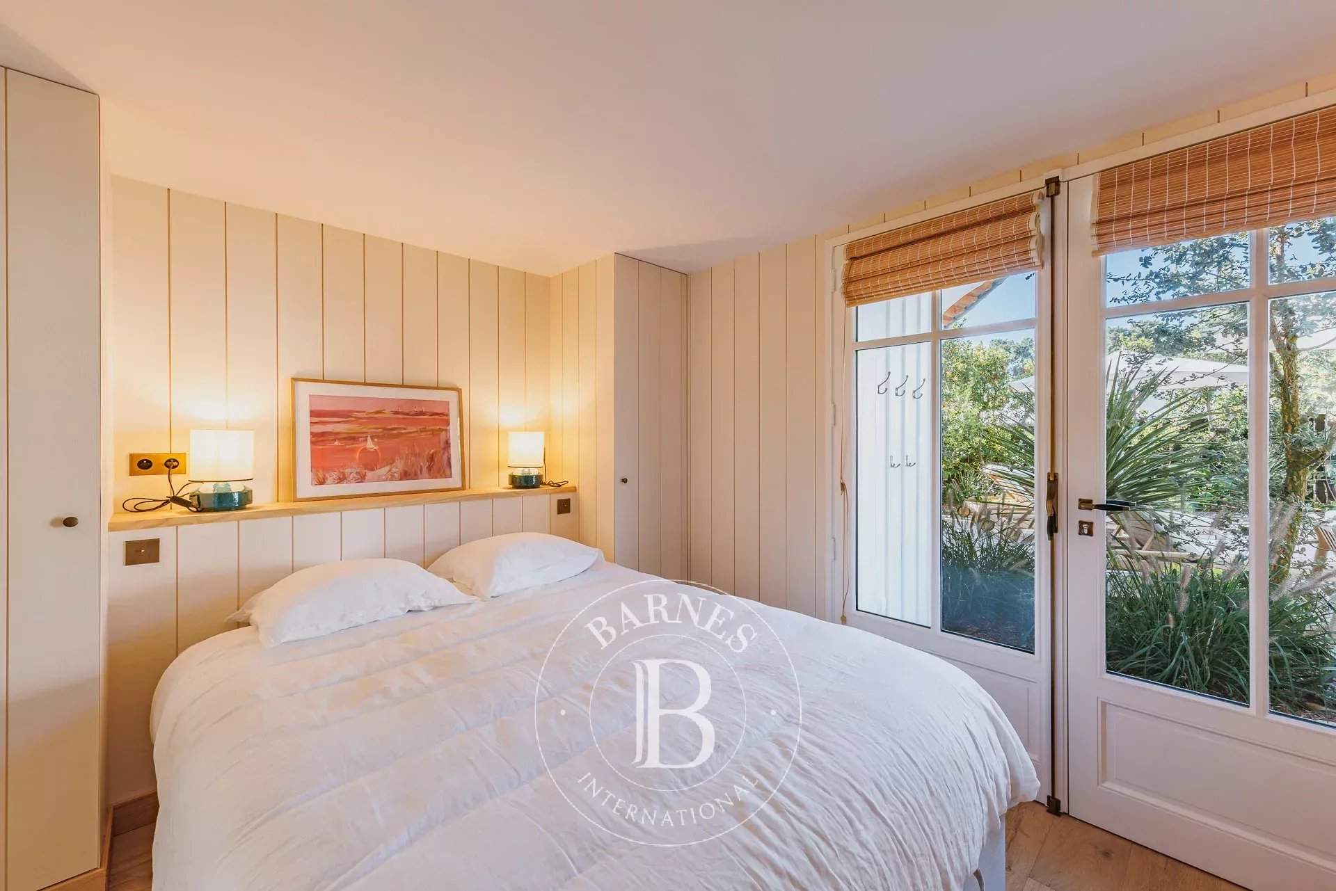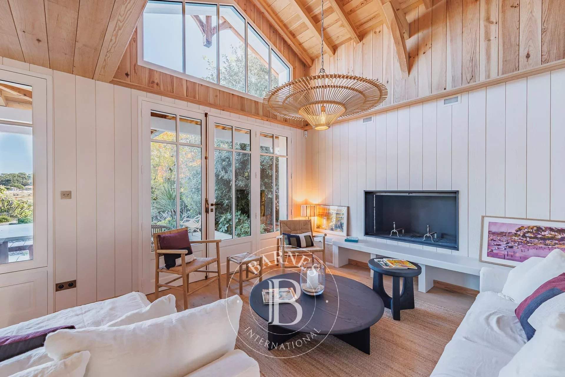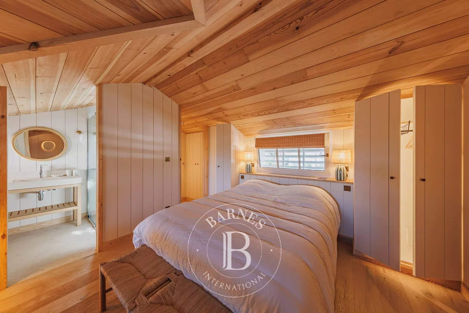 BARNES Cap Ferret presents the ?Villa du Port,? a truly unique address in the heart of the Cap Ferret Peninsula. Set facing the port of Piraillan, in a peaceful and preserved environment, this newly built villa, inspired by the Ferret-Capien spirit, combines elegance and comfort. From the moment you step inside, the charm is immediate. The main villa, offering 140 m² of living space, unfolds over two levels around a spacious and light-filled living area that includes a lounge, dining room, and fully equipped open kitchen with a central island. Large bay windows fill the space with light, creating a warm and contemporary atmosphere. A separate laundry room completes this level. The sleeping area features three double bedrooms with 160 cm beds, a children's room with four bunk beds, four shower rooms, and two toilets. Designed to accommodate up to eight guests, the layout combines functionality and refined comfort. The property also includes a delightful 40 m² guest house, ideal for welcoming family or friends. It offers a living room with dining area and kitchenette, a double bedroom, a children's room with bunk beds, and a shower room with toilet. Outdoors, a heated and secured pool (2.4 x 8 m) invites you to relax. The terraces flow harmoniously from one to another: by the pool to soak up the sun, and by the port, under the awning, for summer meals in complete tranquility. You'll also enjoy a lounge area facing the port ? the perfect spot for an aperitif and a few oysters while watching the oyster farmers return from the beds. A villa with timeless charm, designed for unforgettable holidays on the Bassin d'Arcachon, just minutes from the lively Piraillan market and the iconic beaches of Cap Ferret. To reach the center of Cap Ferret, you can take the safe cycling paths ? about ten minutes by bike ? or drive, with a journey of roughly 10 minutes depending on traffic.
