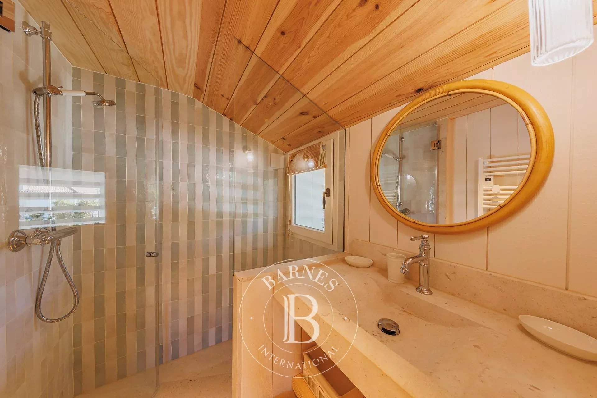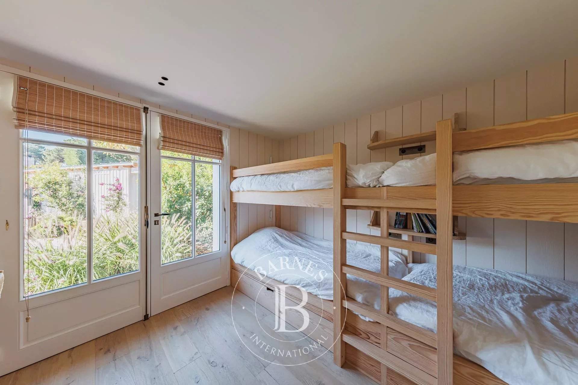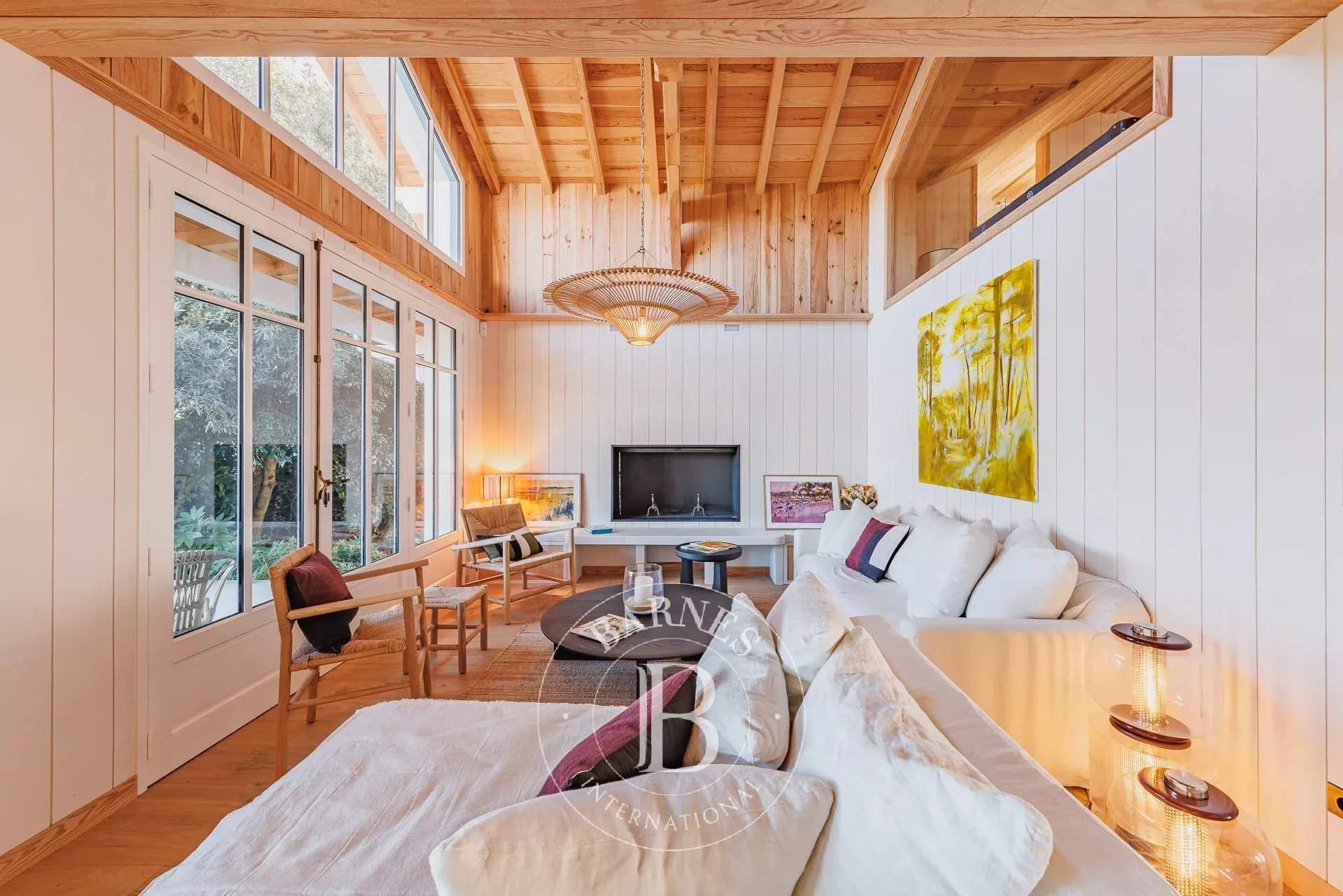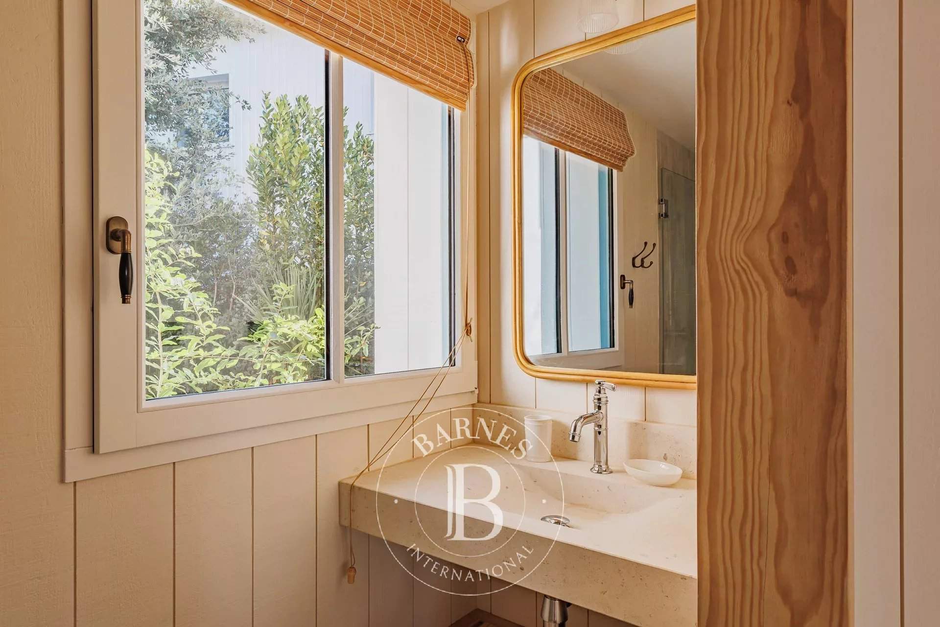 BARNES Cap Ferret presents the ?Villa du Port,? a truly unique address in the heart of the Cap Ferret Peninsula. Set facing the port of Piraillan, in a peaceful and preserved environment, this newly built villa, inspired by the Ferret-Capien spirit, combines elegance and comfort. From the moment you step inside, the charm is immediate. The main villa, offering 140 m² of living space, unfolds over two levels around a spacious and light-filled living area that includes a lounge, dining room, and fully equipped open kitchen with a central island. Large bay windows fill the space with light, creating a warm and contemporary atmosphere. A separate laundry room completes this level. The sleeping area features three double bedrooms with 160 cm beds, a children's room with four bunk beds, four shower rooms, and two toilets. Designed to accommodate up to eight guests, the layout combines functionality and refined comfort. The property also includes a delightful 40 m² guest house, ideal for welcoming family or friends. It offers a living room with dining area and kitchenette, a double bedroom, a children's room with bunk beds, and a shower room with toilet. Outdoors, a heated and secured pool (2.4 x 8 m) invites you to relax. The terraces flow harmoniously from one to another: by the pool to soak up the sun, and by the port, under the awning, for summer meals in complete tranquility. You'll also enjoy a lounge area facing the port ? the perfect spot for an aperitif and a few oysters while watching the oyster farmers return from the beds. A villa with timeless charm, designed for unforgettable holidays on the Bassin d'Arcachon, just minutes from the lively Piraillan market and the iconic beaches of Cap Ferret. To reach the center of Cap Ferret, you can take the safe cycling paths ? about ten minutes by bike ? or drive, with a journey of roughly 10 minutes depending on traffic.