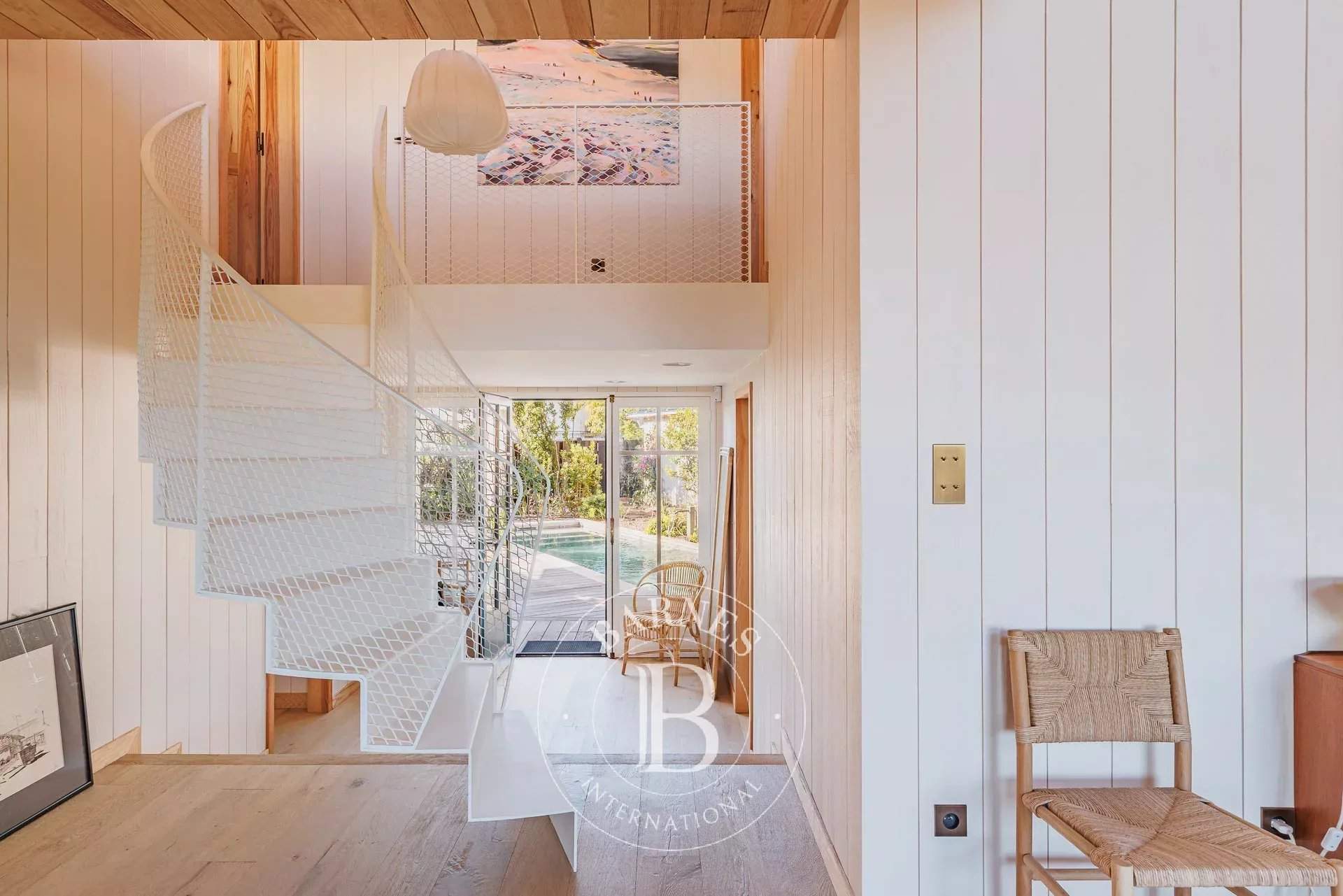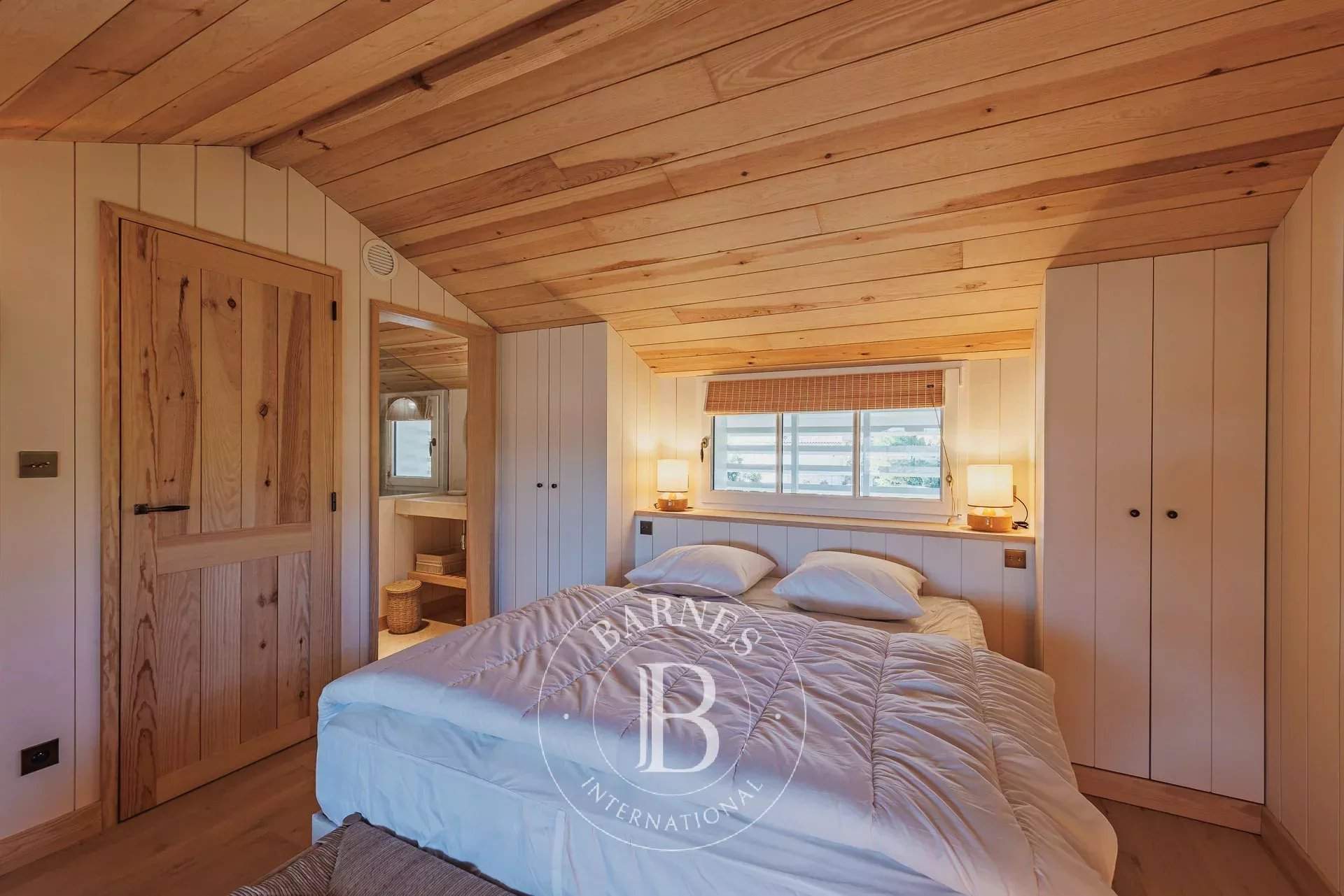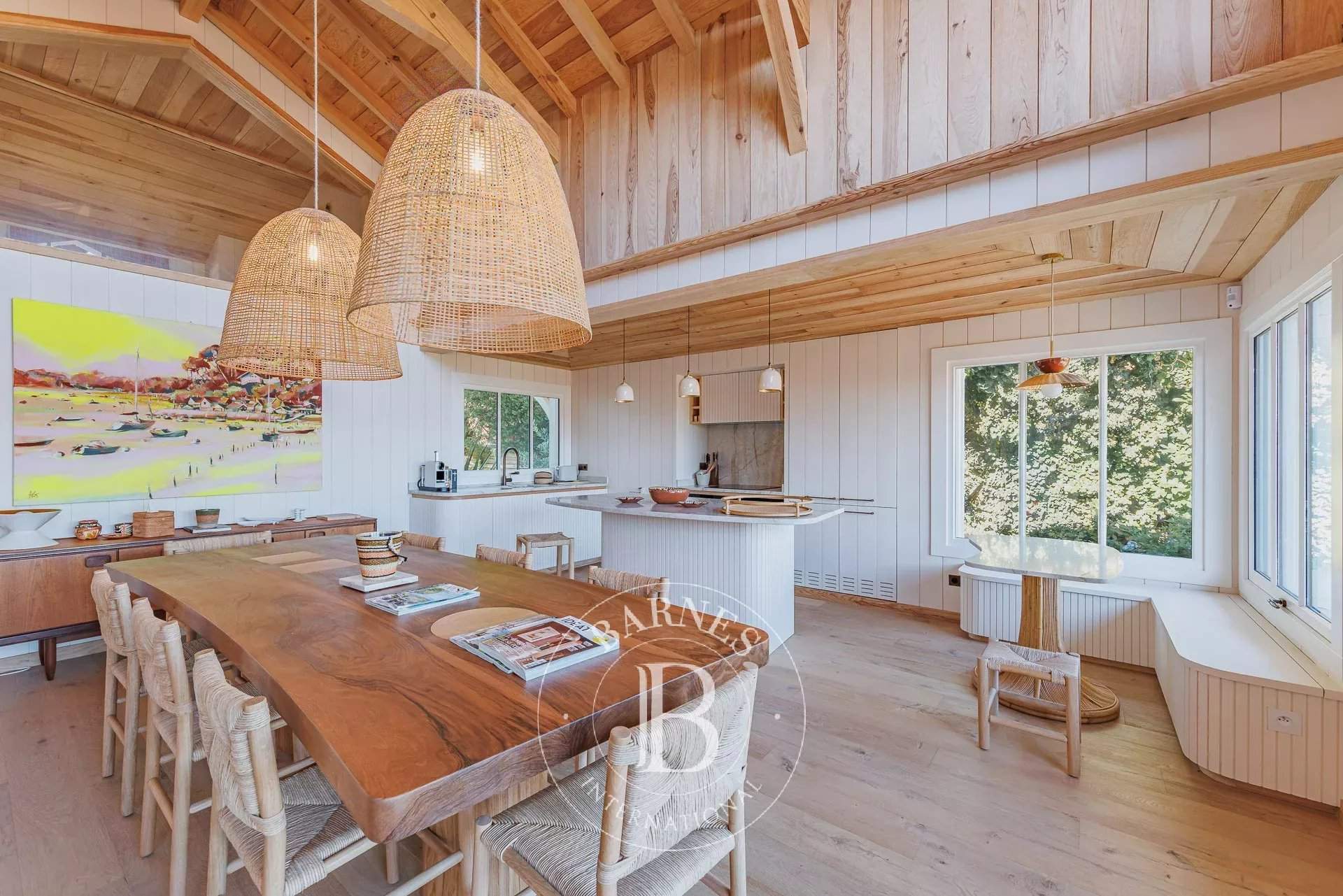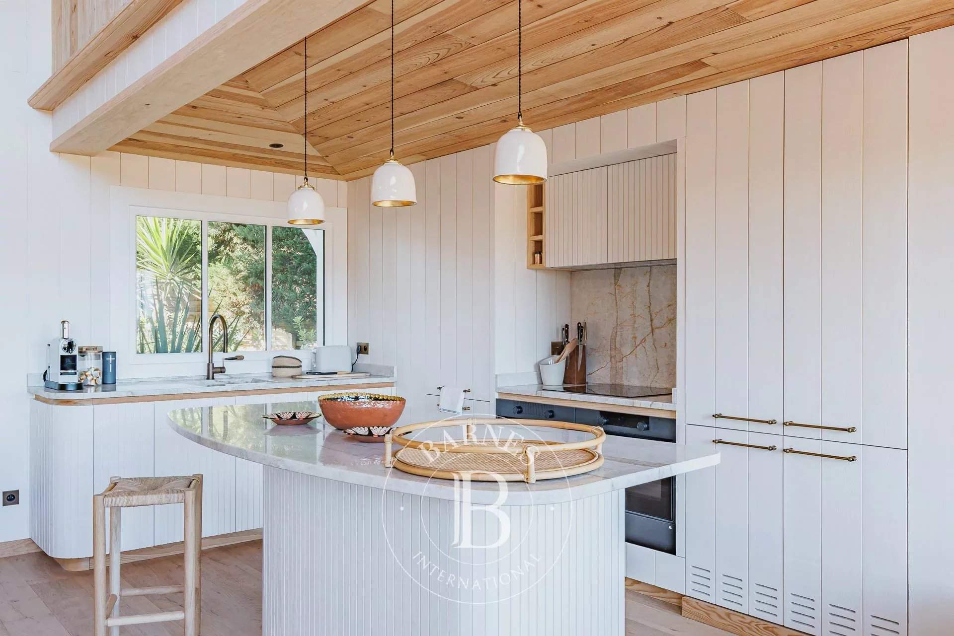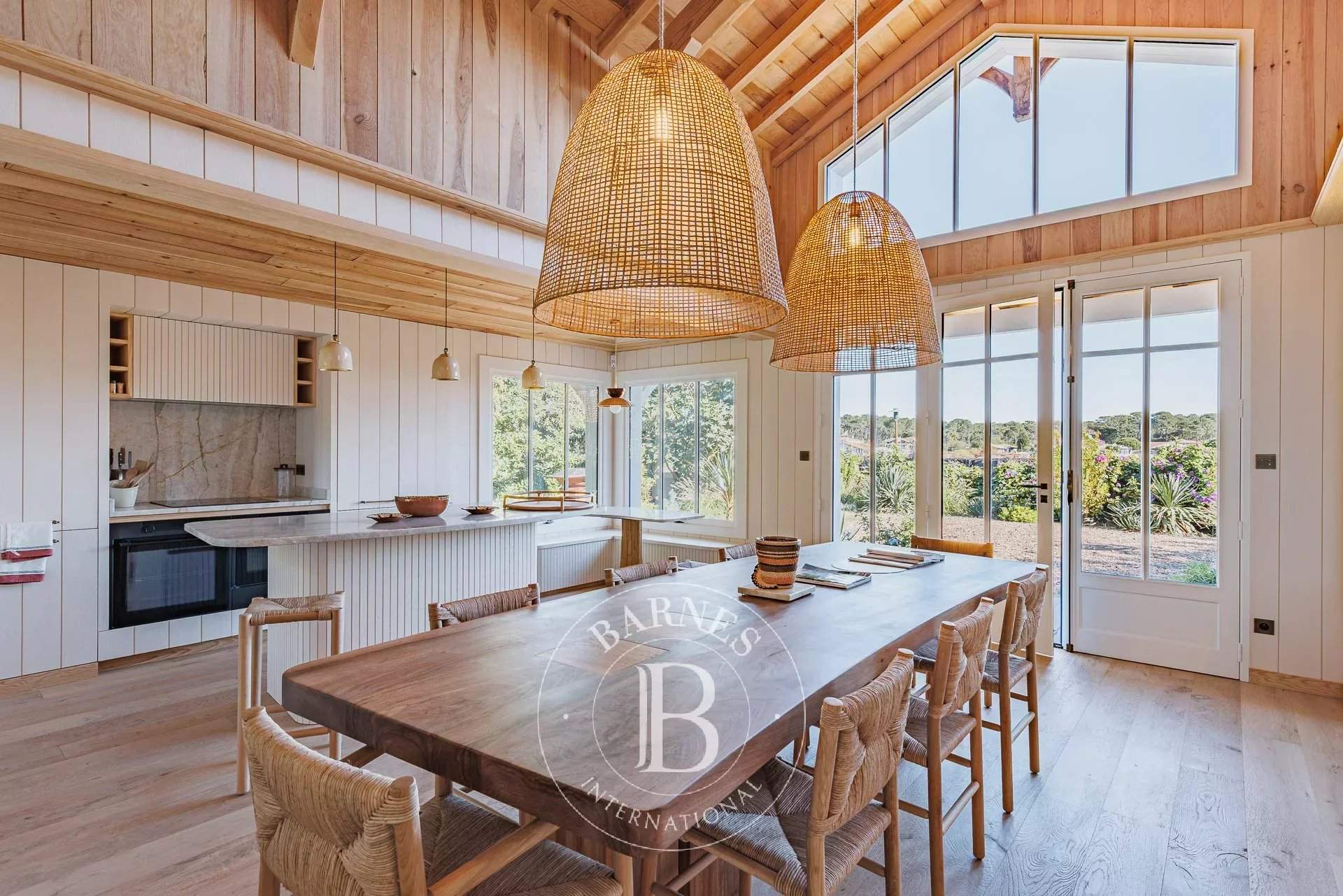 BARNES Cap Ferret presents the ?Villa du Port,? a truly unique address in the heart of the Cap Ferret Peninsula. Set facing the port of Piraillan, in a peaceful and preserved environment, this newly built villa, inspired by the Ferret-Capien spirit, combines elegance and comfort. From the moment you step inside, the charm is immediate. The main villa, offering 140 m² of living space, unfolds over two levels around a spacious and light-filled living area that includes a lounge, dining room, and fully equipped open kitchen with a central island. Large bay windows fill the space with light, creating a warm and contemporary atmosphere. A separate laundry room completes this level. The sleeping area features three double bedrooms with 160 cm beds, a children's room with four bunk beds, four shower rooms, and two toilets. Designed to accommodate up to eight guests, the layout combines functionality and refined comfort. The property also includes a delightful 40 m² guest house, ideal for welcoming family or friends. It offers a living room with dining area and kitchenette, a double bedroom, a children's room with bunk beds, and a shower room with toilet. Outdoors, a heated and secured pool (2.4 x 8 m) invites you to relax. The terraces flow harmoniously from one to another: by the pool to soak up the sun, and by the port, under the awning, for summer meals in complete tranquility. You'll also enjoy a lounge area facing the port ? the perfect spot for an aperitif and a few oysters while watching the oyster farmers return from the beds. A villa with timeless charm, designed for unforgettable holidays on the Bassin d'Arcachon, just minutes from the lively Piraillan market and the iconic beaches of Cap Ferret. To reach the center of Cap Ferret, you can take the safe cycling paths ? about ten minutes by bike ? or drive, with a journey of roughly 10 minutes depending on traffic.