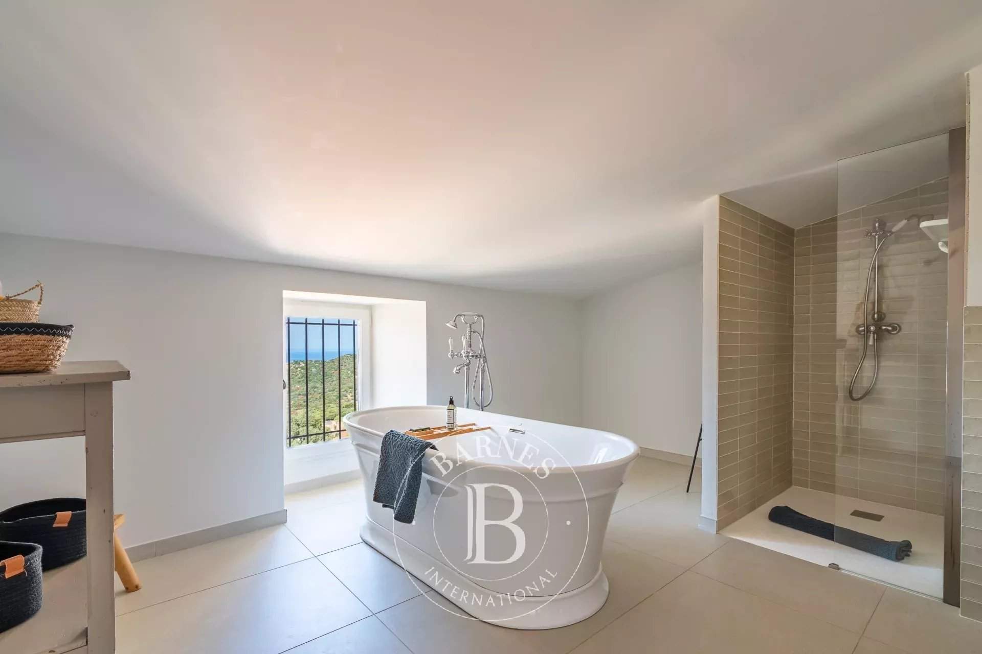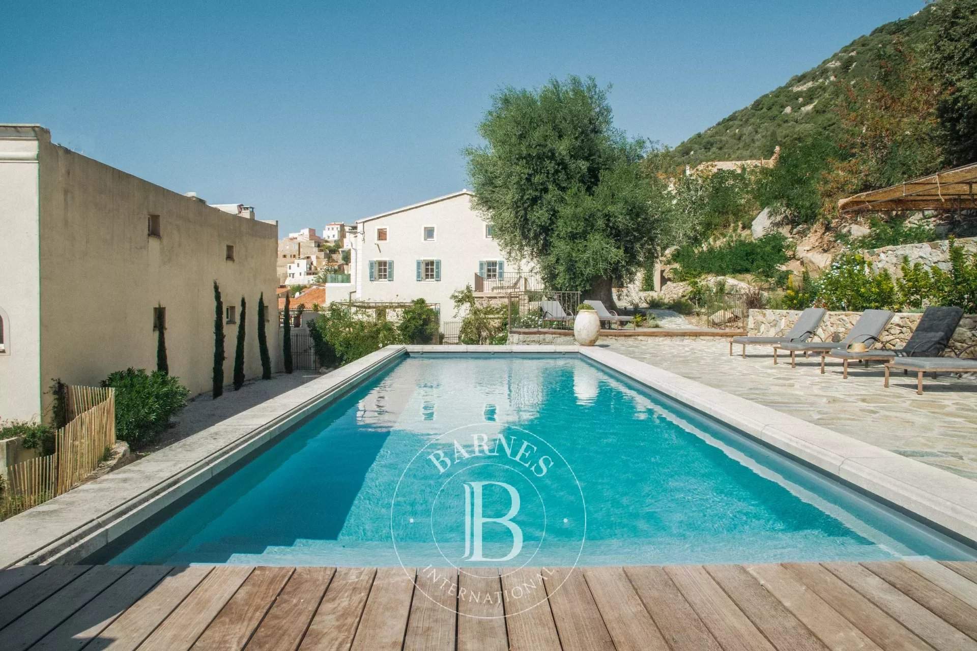 RL437 - A Funtanella Property located in the heart of the village of Lumio, an iconic village of Balagne, overlooking Calvi Bay, nestled between maquis and red rocks. This manor house dating back to 1750, fully renovated by an architect, with approximately 5,382 sq ft (500 m²), offers breathtaking views of the sea, Calvi Bay, and the village of Lumio. Spread over three levels, it includes a semi-professional kitchen, a pantry, a dining room, a small sitting room, and a large living room. It features 9 bedrooms and 9 bathrooms, as well as an office. An outbuilding of approximately 538 sq ft (50 m²) completes this property. The estate is set on a Mediterranean garden of approximately 10,764 sq ft (1,000 m²) with a swimming pool and its pool house. Ideally located, close to the beaches, Calvi town center, and its airport, Lumio is a Balagne village with preserved and authentic heritage. Included services : regular housekeeping, household linen, pool towels, and concierge service.