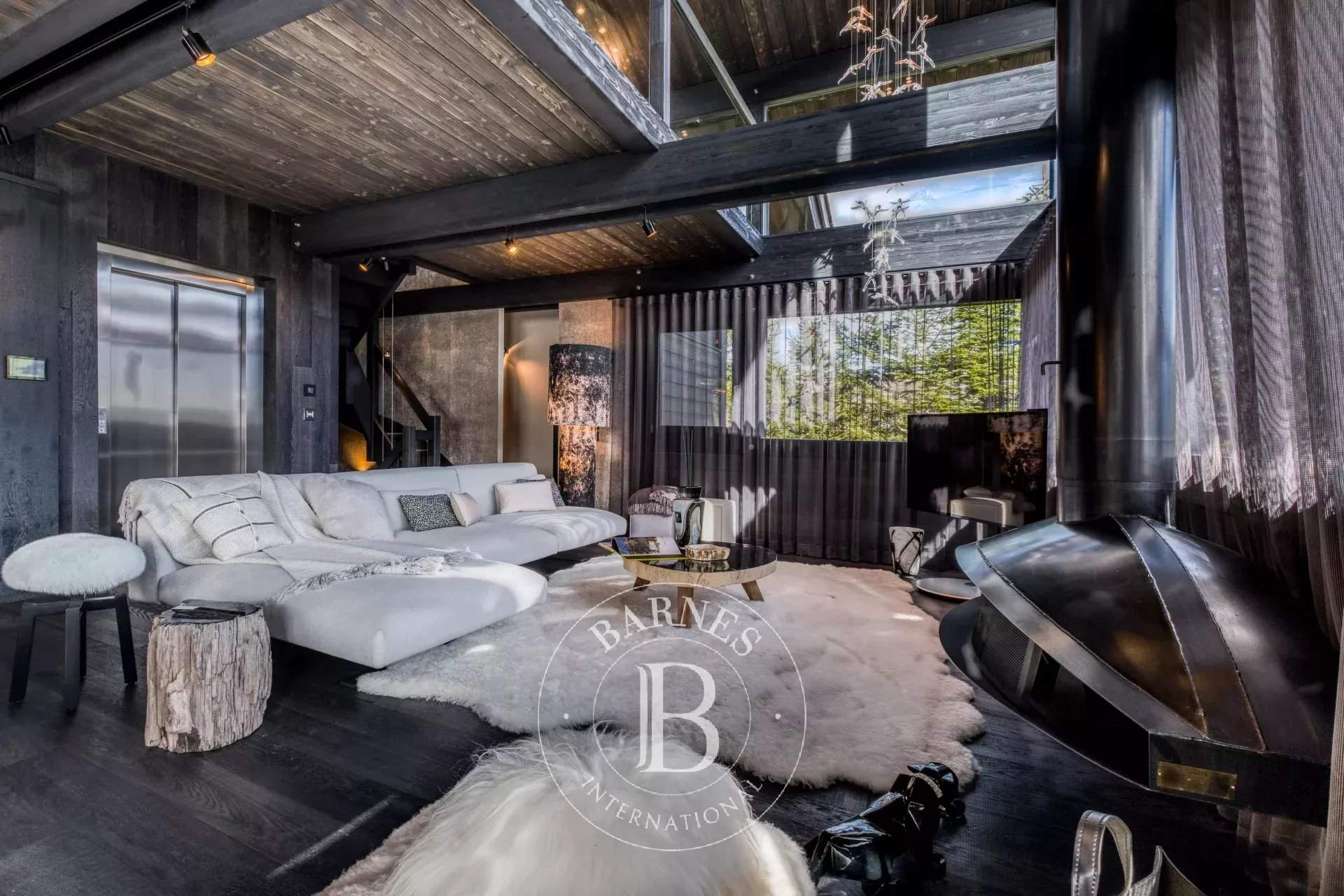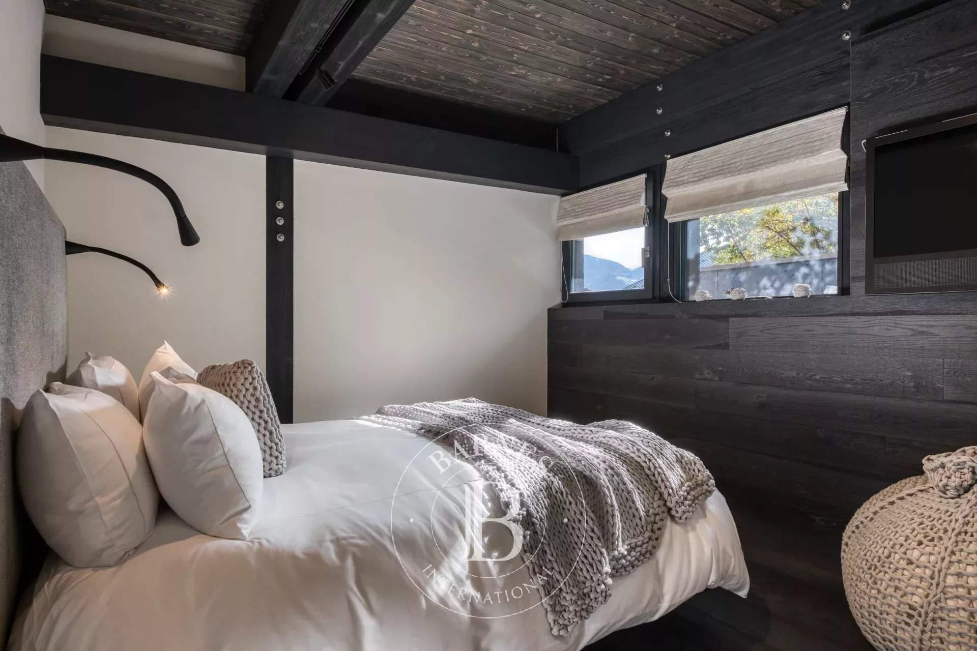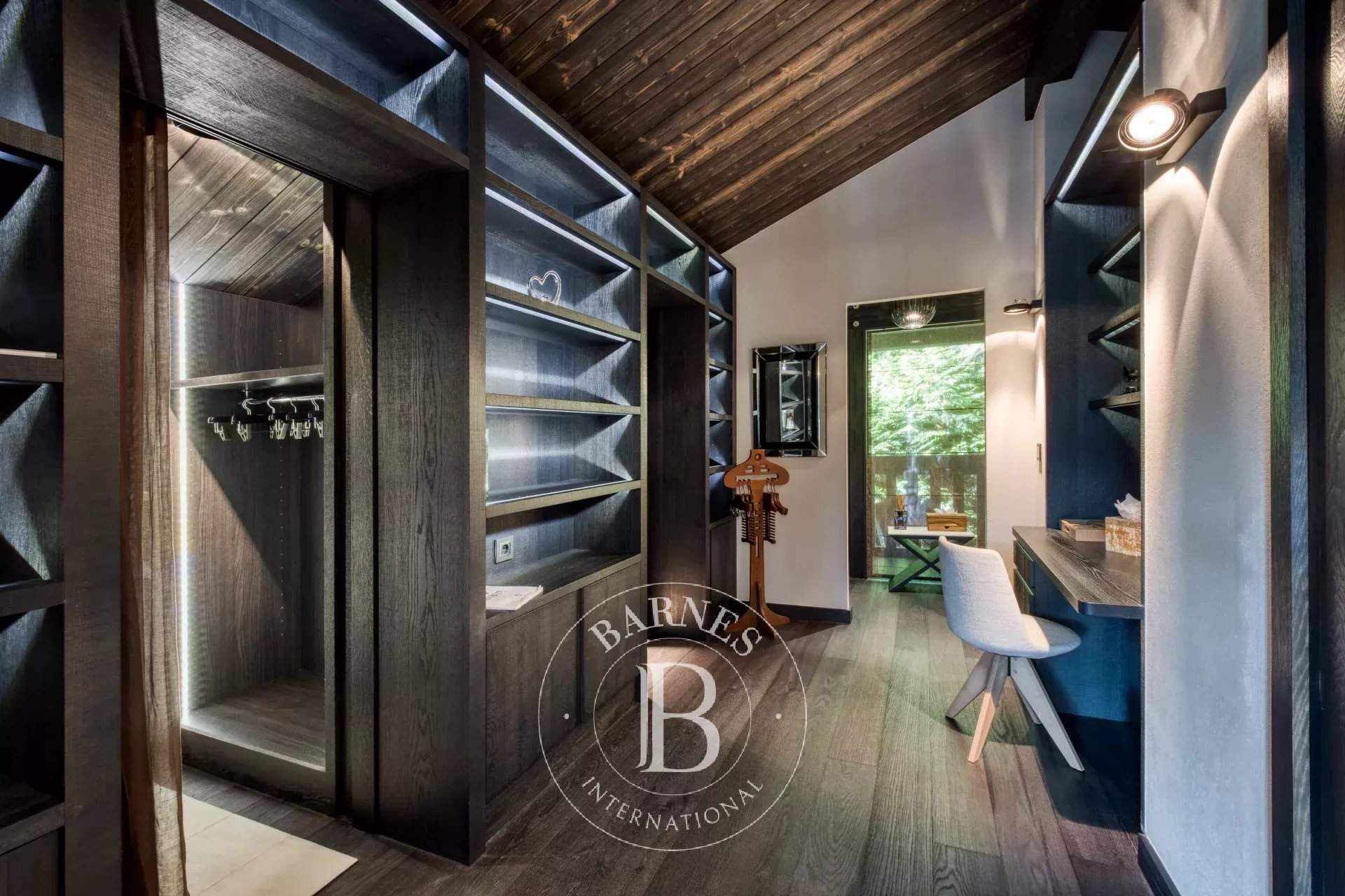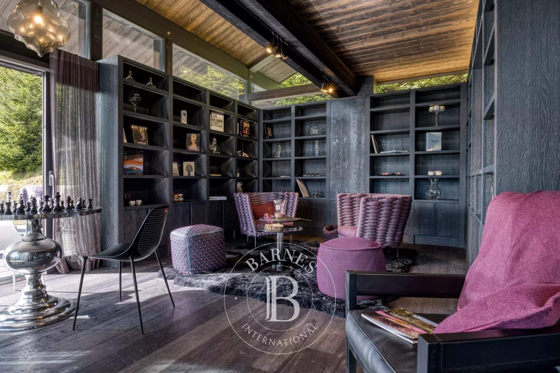 Located on the heights of Le Jaillet, in a preserved natural environment, Chalet Diamant Noir stands among the most emblematic properties in Megève. Comprising two interconnected chalets, it offers generous volumes and features 9 bedrooms, including 7 en-suite bedrooms, providing exceptional comfort for families and friends. South-facing, it enjoys optimal sunlight and breathtaking views of Mont Blanc. The amenities live up to the address, with an indoor swimming pool, a wellness area and a cinema room, completing this exceptional chalet designed for unforgettable mountain stays. Photo credits: studio-bergoend.com / Groupe Dunoyer