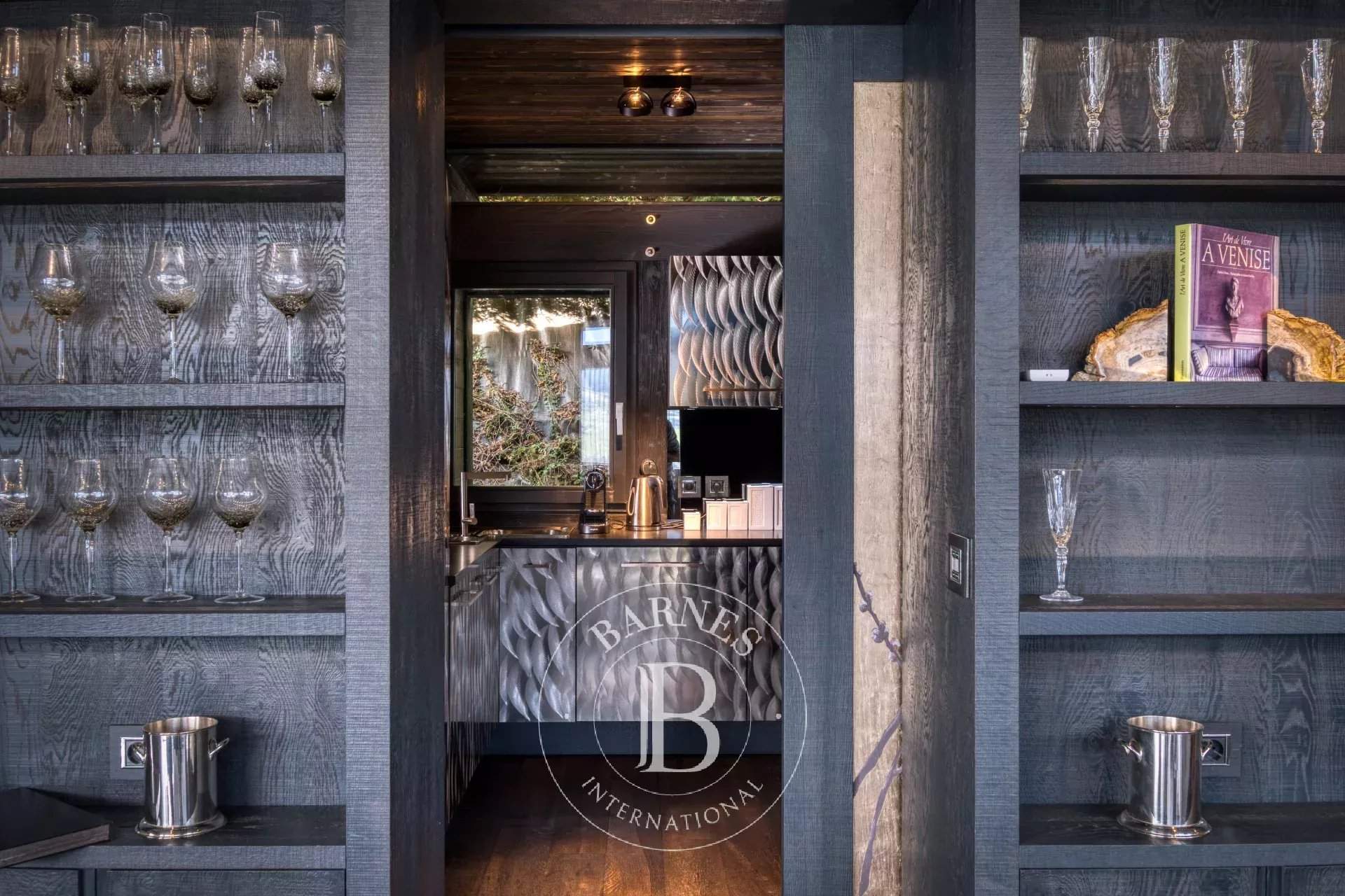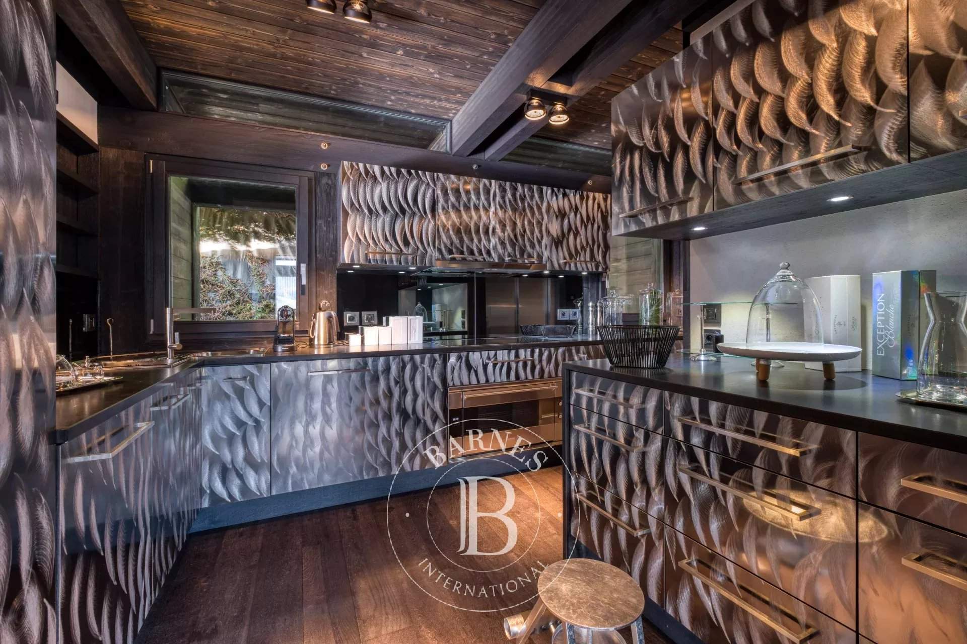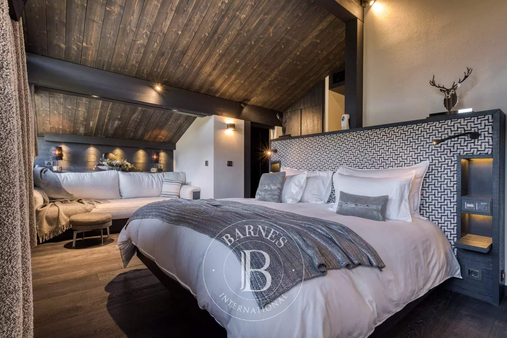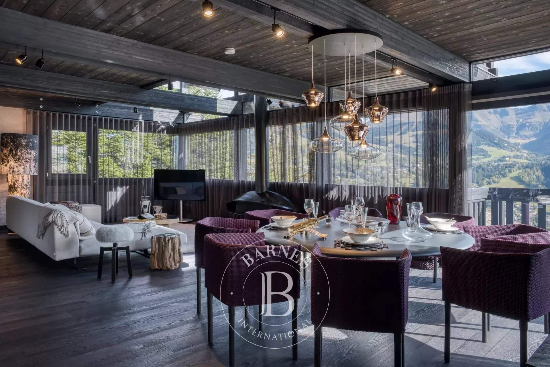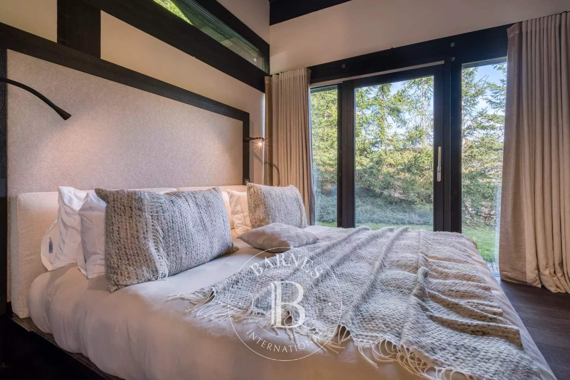 Located on the heights of Le Jaillet, in a preserved natural environment, Chalet Diamant Noir stands among the most emblematic properties in Megève. Comprising two interconnected chalets, it offers generous volumes and features 9 bedrooms, including 7 en-suite bedrooms, providing exceptional comfort for families and friends. South-facing, it enjoys optimal sunlight and breathtaking views of Mont Blanc. The amenities live up to the address, with an indoor swimming pool, a wellness area and a cinema room, completing this exceptional chalet designed for unforgettable mountain stays. Photo credits: studio-bergoend.com / Groupe Dunoyer