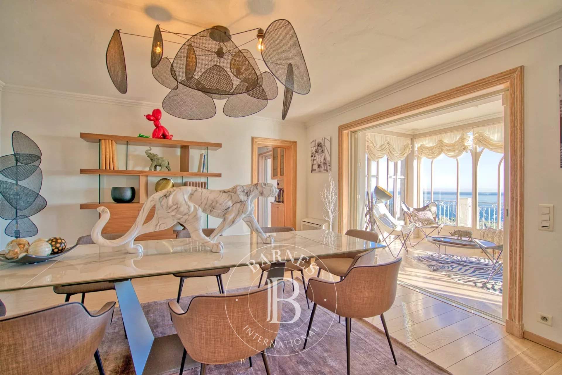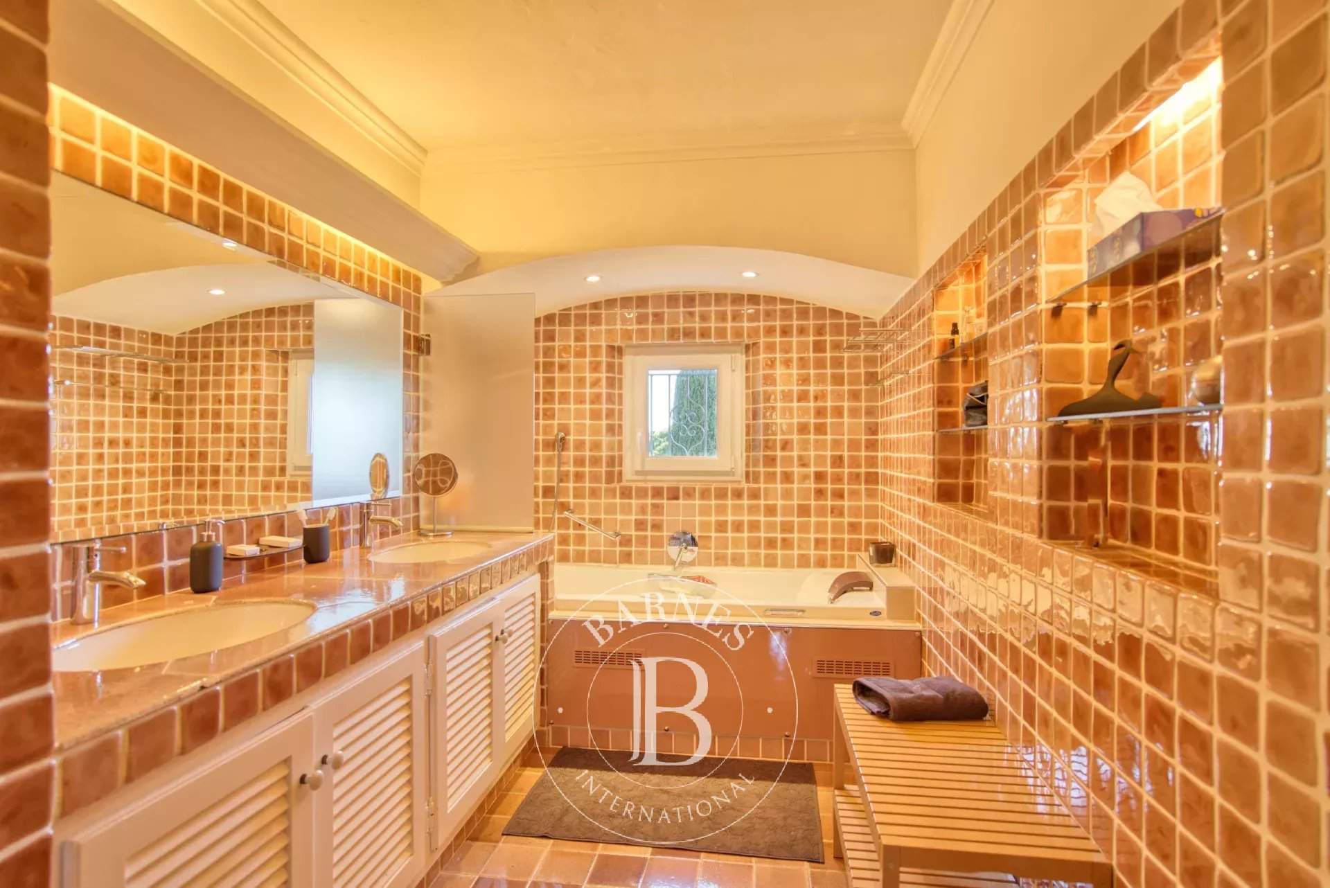 *Villa le Mas* Located in a quiet and secure area, close to the beaches and the city center of Sainte-Maxime, this property of 350 sqm (3767 sq ft) offers a panoramic sea view on the whole Gulf of Saint-Tropez. The property is composed of : A main villa with a fully equipped kitchen, a spacious dining room, a living room offering a sea view and access to the terraces as well as 4 bedrooms en suite with each its bathroom. An apartment with a fully equipped kitchen, a bedroom, a bathroom and a pleasant terrace. A service apartment with a fully equipped kitchen, a bedroom and a shower room. A studio with a bedroom and a shower room. Outside, a landscaped garden with a heated swimming pool (on request and at extra cost), a jacuzzi as well as a summer kitchen and a garage. Equipment: Alarm and video surveillance system, electric gate, car parking. Services included: Linen, pool towels and personalized BARNES concierge service. Registration number 83115003835DP