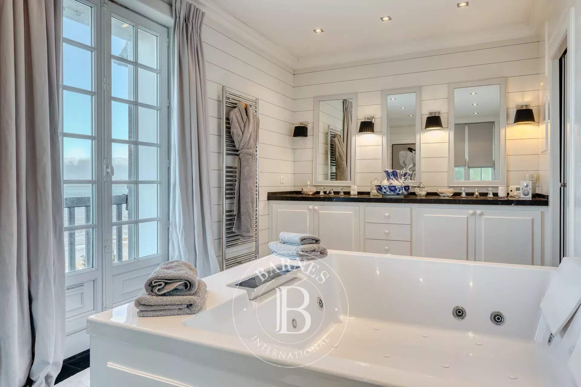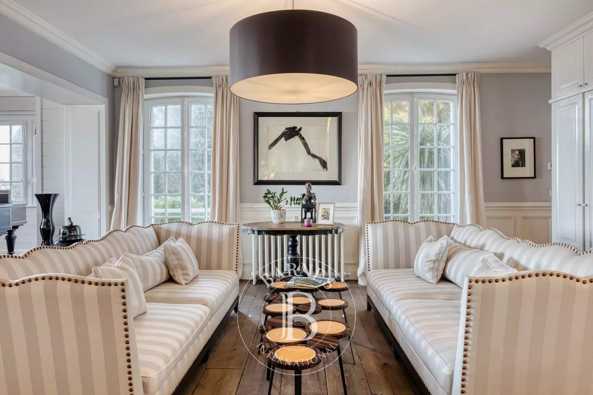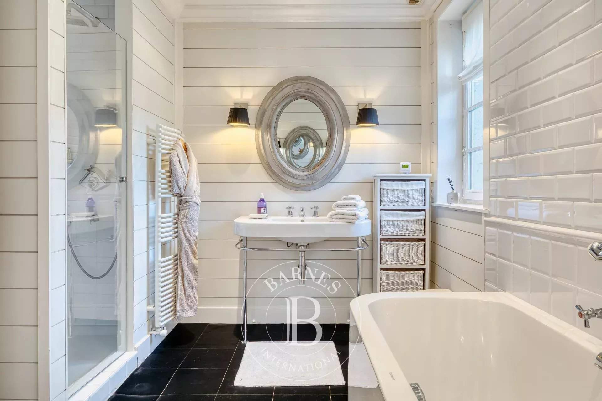 Located close to Deauville, this exceptional 650m² (6,997 sq ft) property dating from 1850 offers a 140m² (1,507 sq ft) reception space: large lounge with sea view and fireplace, TV lounge, dining room, piano room, 45m² (484 sq ft) kitchen with summer dining room and terrace. On the first floor you will find a 50m² (538 sq ft) master suite with walk-in wardrobe, spa bathroom with terrace overlooking the sea and reading room, a double bedroom with bathroom, and a TV lounge. On the second floor are 4 double bedrooms with private bathrooms, and a TV lounge. In the basement: a double bedroom with staff bathroom, a laundry, and a cellar. Magnificent 4,500m² (48,438 sq ft) landscaped park with pool and terrace overlooking the seafront. Private parking. Wifi. High-end fittings. Available to rent on a weekly, fortnightly or monthly basis. Emma SALESSE - Agent commercial - EI - RSAC