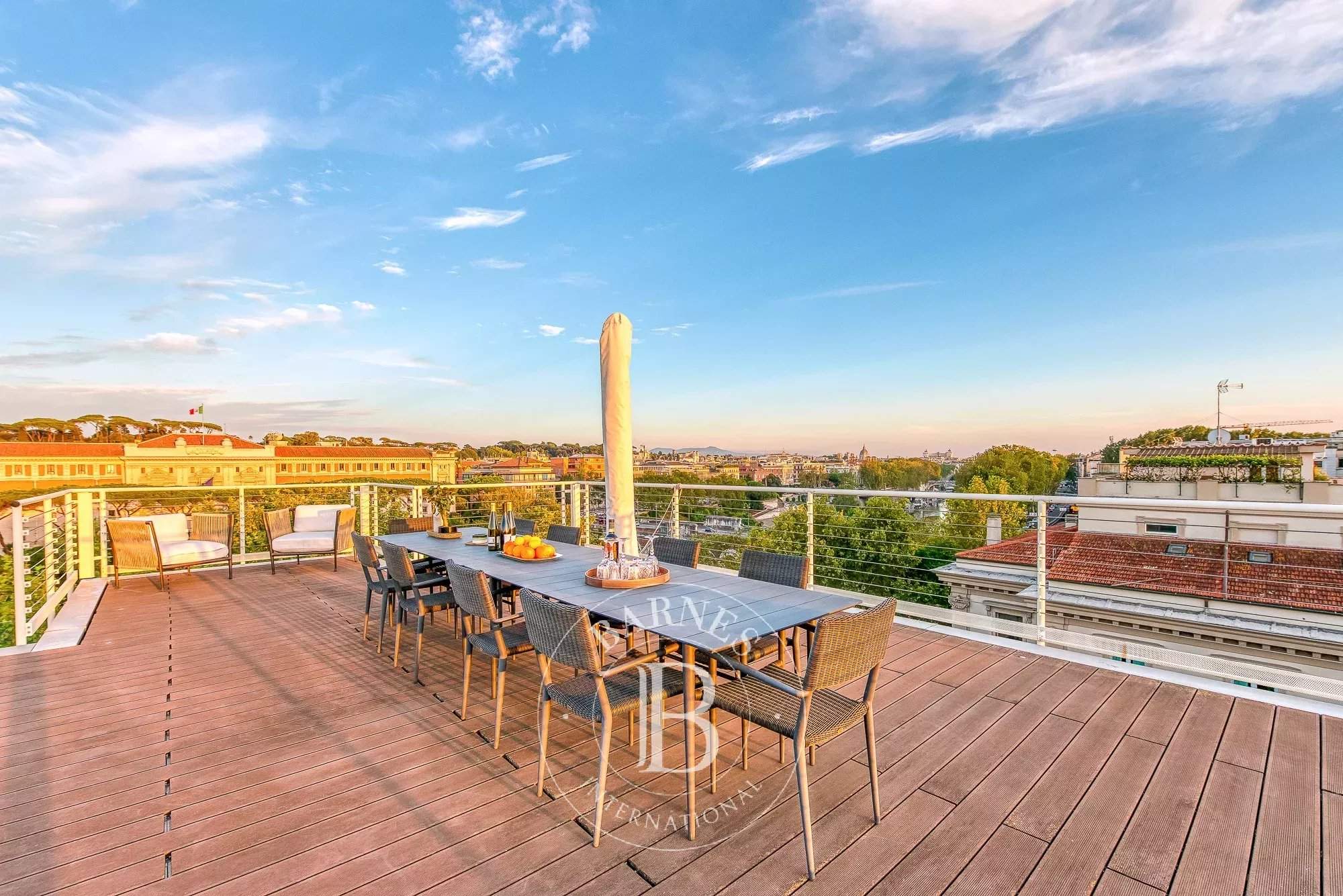 Located on the 5th floor of an elegant building (with elevator access up to the 4th floor, followed by just 8-9 steps), this exclusive 95 m² penthouse offers a truly unique stay in central Rome just 15-20 minute walk from both the Vatican and the Spanish Steps. The property's standout feature is a spectacular 300 m² private terrace with breathtaking 360° panoramic views over the Tiber River and Rome's historic skyline. Inside, the apartment features three elegantly furnished bedrooms equipped with high-quality beds: a king-size bed (180x200 cm), a queen-size bed (160x200 cm), and a double bed (140x200 cm). Two modern bathrooms, a fully equipped open-plan kitchen, and a bright, stylish living area complete the space, offering an ideal setting for both relaxation and entertaining. The penthouse includes a full range of amenities: air conditioning, fast Wi-Fi, private garage, luggage storage, and a baby cot upon request. Guests are welcomed in person with flexible, in-person check-in at any time of day or night, at no extra cost. Two sets of keys are provided for added convenience. This property is the ideal choice for guests seeking a luxurious, serene retreat in Rome, with easy access to all major attractions yet tucked away from the hustle and bustle of the city. A stay defined by comfort, design, and the timeless charm of Roman life.