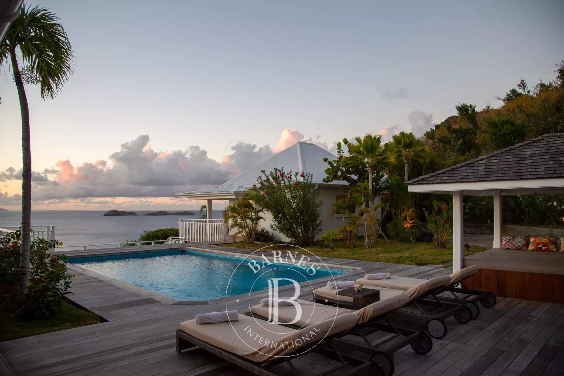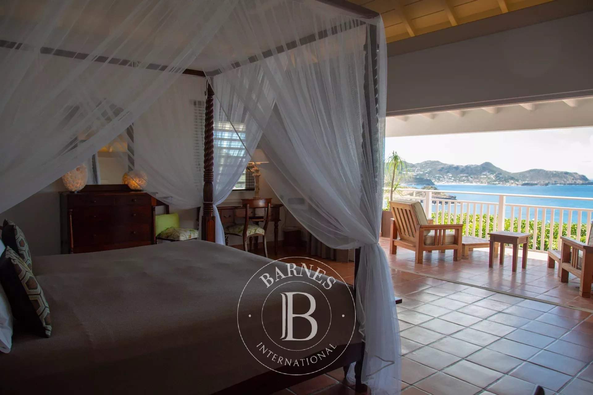Located in Camaruche, La Villa Carette is a charming 2 bedroom villa that offers an exceptional view of the sunrise and sunset, it enjoys a breathtaking panoramic view of Lorient beach and the entire bay, neighboring islands such as St Martin, Anguilla and the smaller islands. With its colonial style the villa offers different outdoor areas in the shade or full sun spaces around the pool. The open plan living space incorporates dining room and the well-equipped kitchen is located in the main building and opens onto the terrace which Al Fresco dining. The two en-suite bedrooms are located in a separate bungalow, each with its own private terrace with sea view. Villa La Carette can be rented individually or combined with Villa Tortue for a total of 3 rooms.