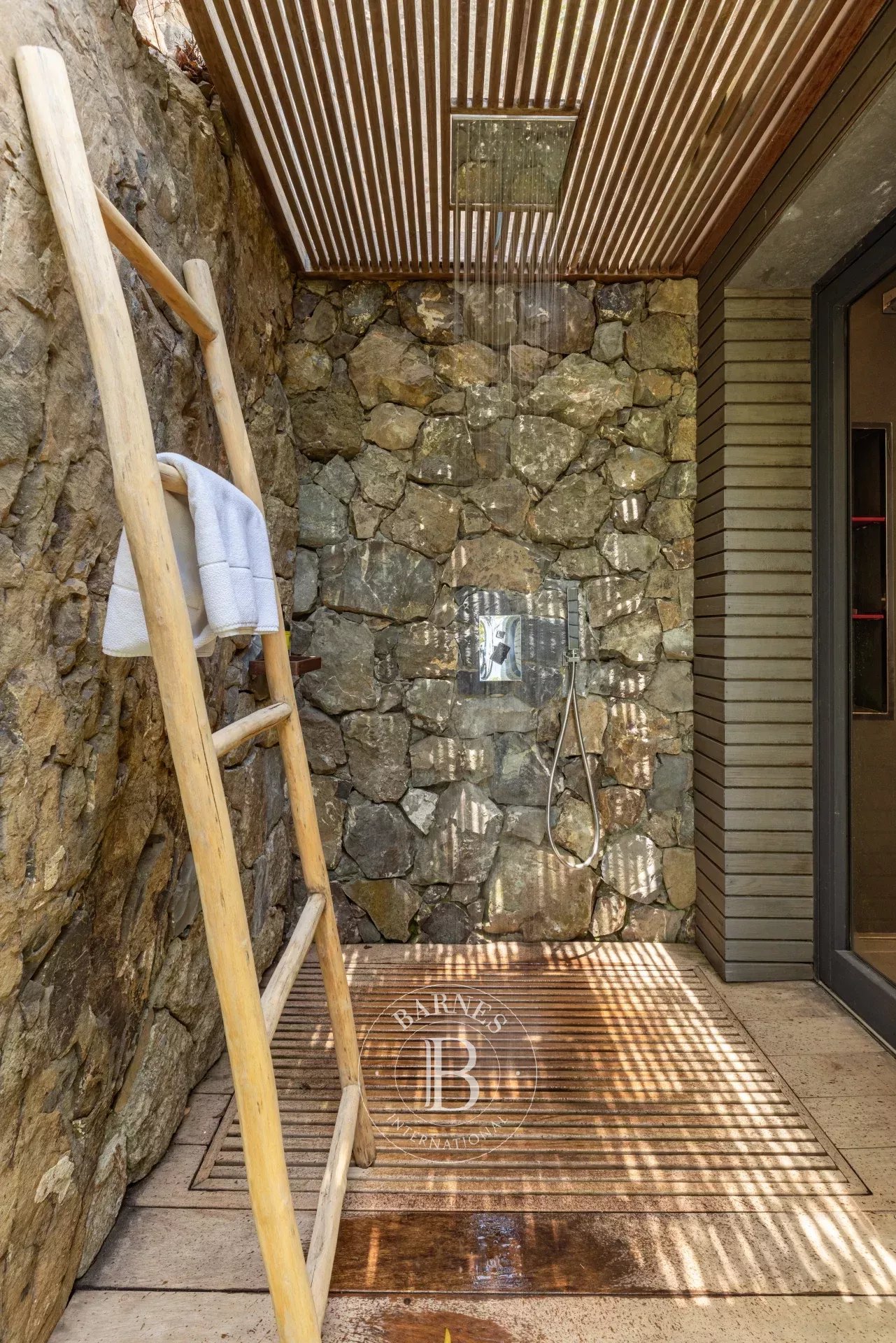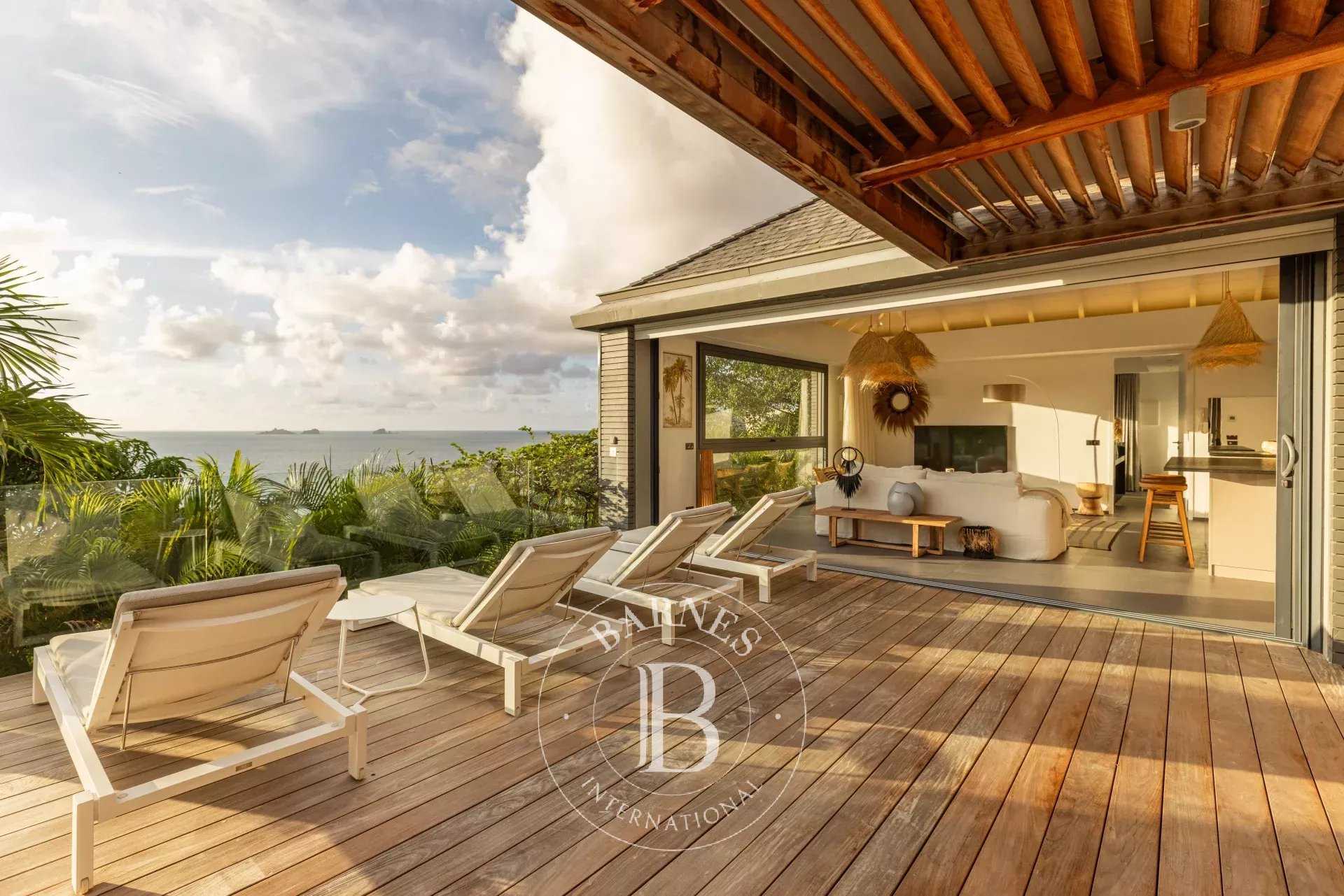 Located on the Flamands hills, Santa Alicia is a beautiful contemporary three bedrooms villa with superb views over Flamands Bay, the ocean and the islands of Saint Martin and Anguilla. Flamands beach is just a few minutes from the house. The villa has three bedrooms and beautiful living spaces that offer complete air conditioning. The modern fully equipped kitchen opens onto the living room, the deck and the covered terrace bordering the heated swimming pool. The master bedroom is connected to the living room and includes a private bathroom with an outdoor shower. The second bedroom is at the end of the deck and the pool. It also has a very nice view of the ocean. The third bedroom is on the lower level. Santa Alicia project was conceived to respect the environment: use of the solar energy as a supplement to the electrical energy and a recycling of calories on the air conditioning to warm the sanitary water and the swimming pool. The listed price is inclusive of agency fees, at the seller's cost.
