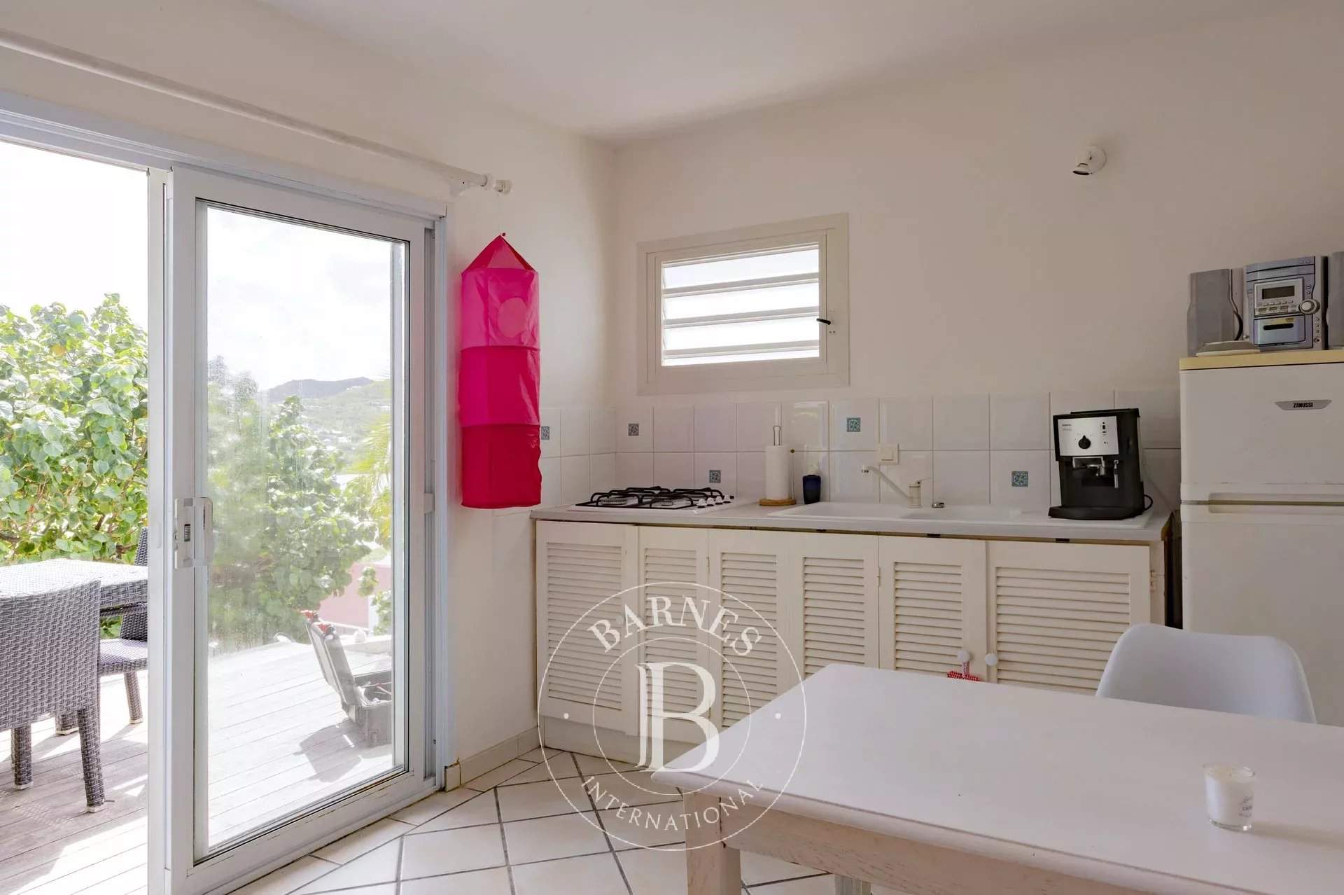 Villa Minou is located in the heights of Grand Cul-de-Sac, just a short walk away from the beach. The villa overlooks the lagoon of Grand Cul-de-Sac and the ocean. It is composed of two beautiful bedrooms with en-suite bathrooms. The master suite is located in a separate bungalow. The living area, composed of the living room, the equipped-kitchen, and the dining room, opens up onto the large deck and the infinity pool. A studio, located on the lower level, completes this property. You will be just a few minutes away from lagoon's nautical activities but also from hotels & spas such as the Sereno and Le Barthélemy.