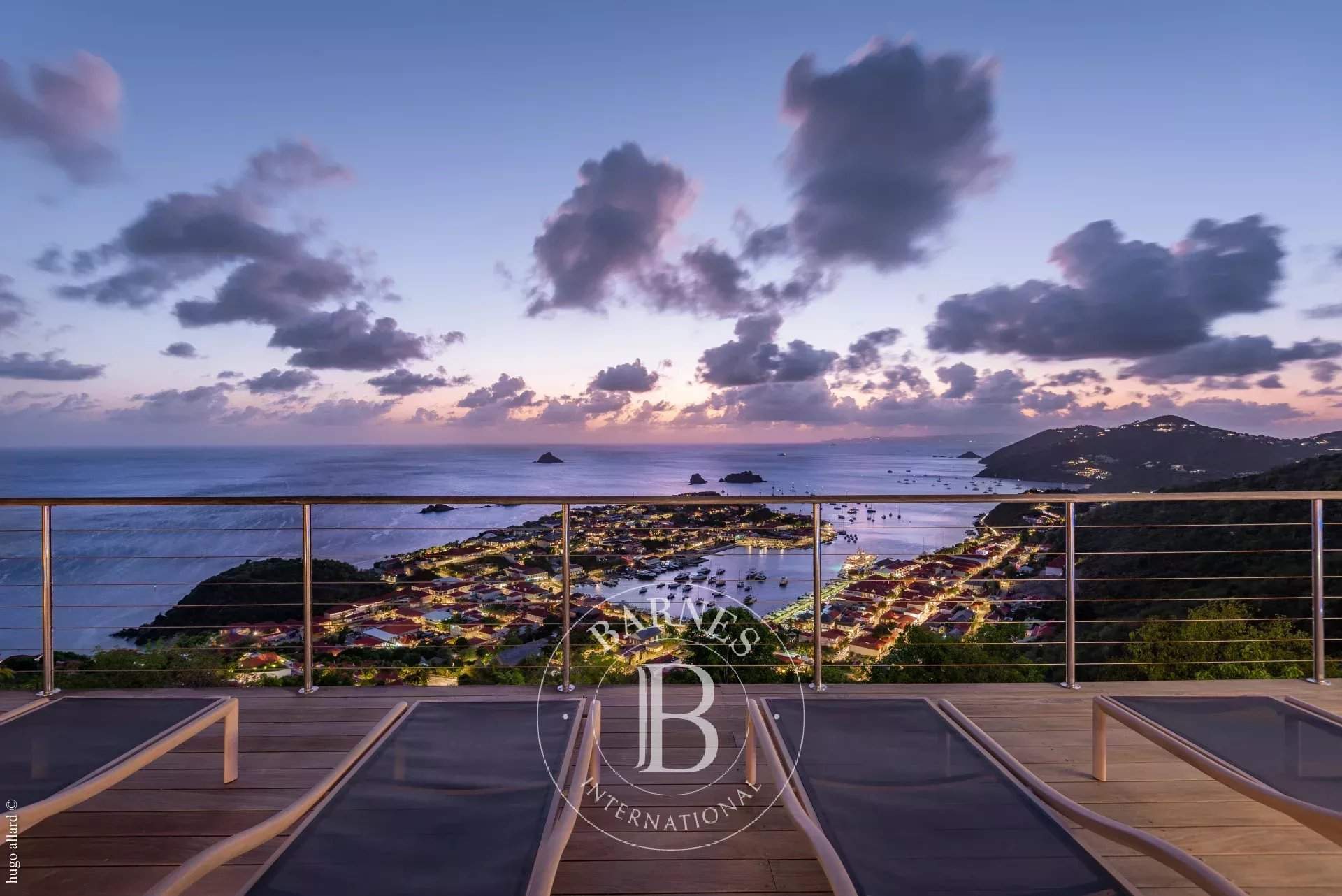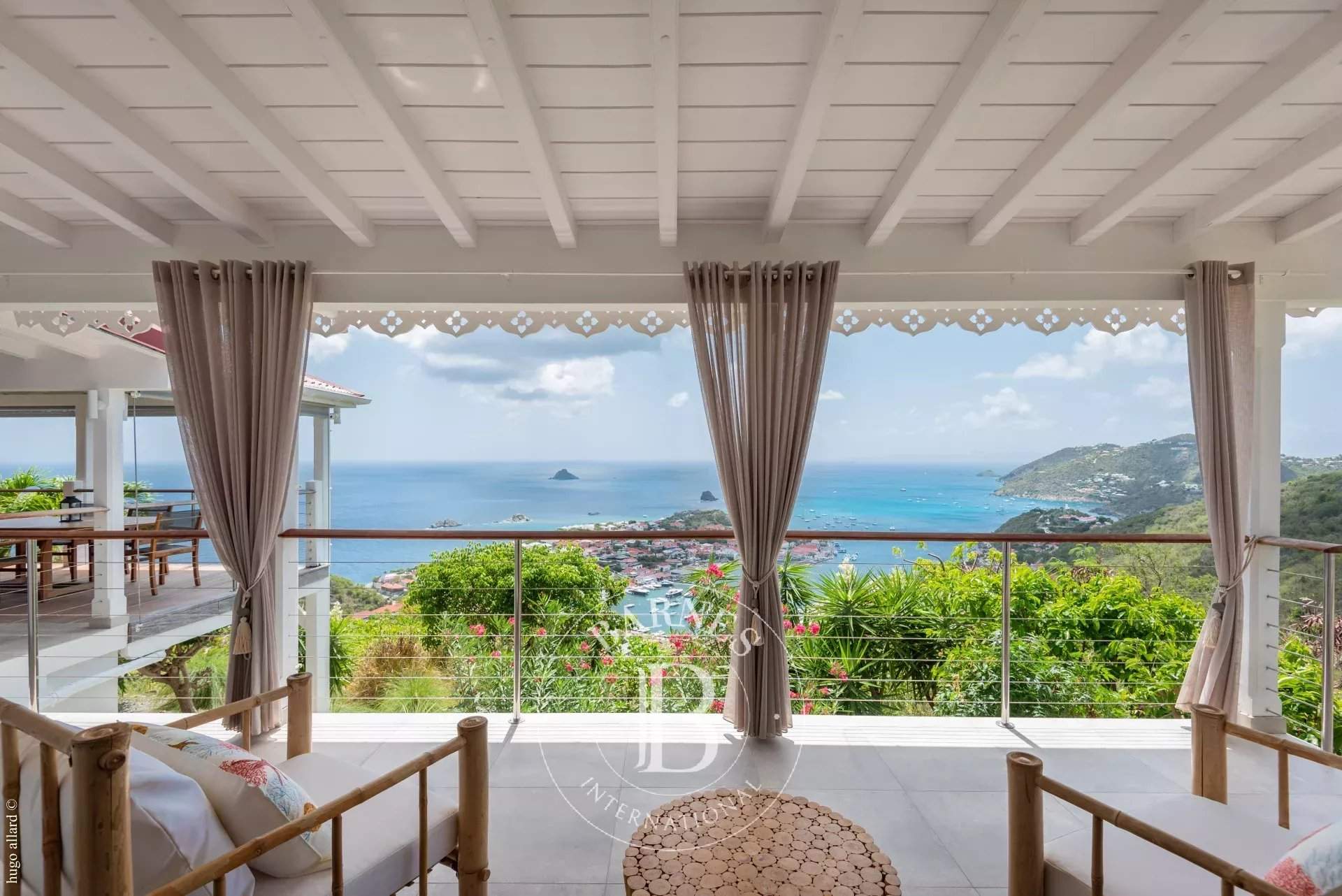 Located on the heights of Gustavia in a private estate in the highly sought-after Lurin district, villa Ti Moun offers one of the most beautiful views on the island. This beautiful Caribbean-style property overlooks the town of Gustavia, the harbor and a breathtaking sunset. The villa has 3 en-suite bedrooms, 2 on the main level and 1 on the lower level with private terrace. The fully-equipped kitchen is an extension of the large living room, which opens onto the terrace and its covered dining area, as well as the heated swimming pool. Just 2 minutes from Gustavia and the beaches, the Ti Moun villa is ideally placed for an unforgettable vacation, with an exceptional view that will leave no one indifferent.