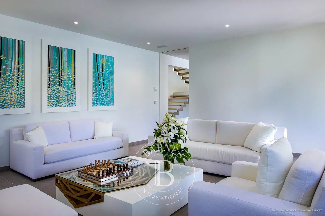 The Javacanou villa is located in Marigot Bay and enjoys an exceptional location. You can enjoy direct access to the beach as well as the equipment that Javacanou offers: Paddle board, canoe as well as masks, snorkels and fins for diving. This modern villa has a heated infinity pool facing the sea as well as a large terrace fully equipped with deckchairs, outdoor lounge, also a private beach. The living room and the kitchen are located at the pool level. Upstairs are the 3 beautiful sea view bedrooms, each with its own bathroom. Javacanou is a luxurious villa, decorated with care, perfect for an unforgettable vacation by the water.