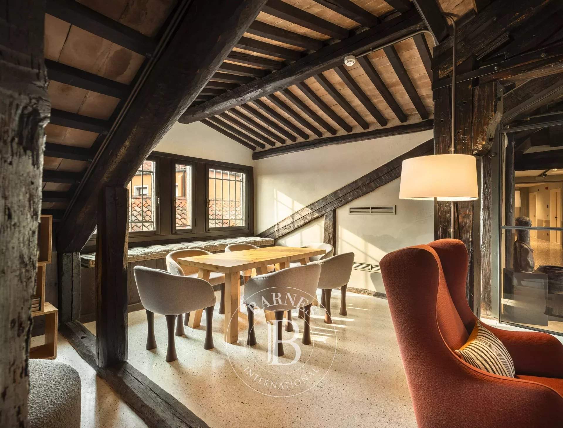Este magnífico palacio con vistas al Gran Canal. en el corazón del exclusivo barrio de San Polo. encarna la elegancia atemporal de Venecia. Consta de cuatro elegantes suites con acogedoras habitaciones. dos terrazas privadas y un encantador salón ideal para disfrutar de momentos de convivencia en una auténtica atmósfera veneciana. Es el lugar perfecto para una estancia única e inolvidable. La cocina abierta. de estilo profesional. se abre directamente a una de las terrazas. creando el espacio ideal para desayunos al aire libre o cenas mágicas con vistas a los tejados y canales de la ciudad. Cada detalle ha sido cuidadosamente pensado para ofrecer confort. encanto y una experiencia exclusiva en uno de los rincones más fascinantes de Venecia.