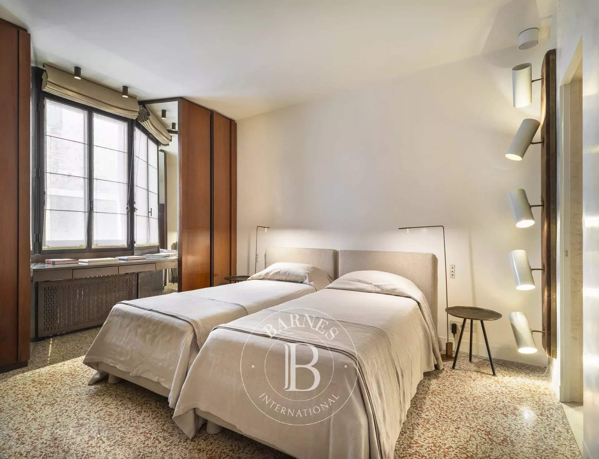Esta refinada residencia se encuentra en el piano noble de un elegante palacete con vista directa al Canal Grande, con vistas espectaculares a la Iglesia de la Salute, al Guggenheim y a la laguna. Es un apartamento que sorprende en cada rincón: la luz cambiante del Canal Grande entra por las grandes ventanas enmarcadas en bronce y se refleja en los suelos de terrazo pulido, en las paredes de marmorino y en los marcos de yeso, creando una atmósfera única. ¿Los muebles? Una colección icónica de diseño italiano de los años 50 y 60 que parece salida de una revista. Una vez dentro, es realmente difícil querer irse. Único en su género, este apartamento de 3 habitaciones se encuentra a pocos minutos de la Plaza San Marcos y de las elegantes boutiques de Via XXII Marzo. Ubicado en un callejón tranquilo con acceso privado por agua, el Palazzetto Salute Grand Canal recibe con salones elegantes amueblados con piezas seleccionadas del mejor diseño italiano del siglo XX. Encontrarás nombres legendarios como Gio Ponti, Gardella, Franco Albini, Caccia Dominioni, Mangiarotti, Ico Parisi, Fontana Arte, Bruno Gambone y Marcello Fantoni. El resultado es una casa que une refinamiento y comodidad de manera increíblemente natural. Es el lugar ideal para parejas o familias que quieren vivir Venecia con estilo, sin renunciar al relax. El proyecto nació de la colaboración entre el propietario, un conocido arquitecto veneciano y uno de los mejores diseñadores de interiores franceses. ¿La inspiración? La elegancia racional de Carlo Scarpa, que se encuentra en los materiales elegidos cuidadosamente: suelos de terrazo pulido, paredes de marmorino color crema, carpintería y detalles en bronce. Los baños son verdaderas obras de arte, con placas de mármol espectaculares que van desde el suelo hasta el techo como si estuvieran esculpidas en un único bloque. Con la Salud, el Guggenheim y el Gran Canal justo frente a casa, todo está al alcance de la mano. Puedes ir a pie o en barco hacia las galerías de la Academia, la Basílica de San Marcos o el Palacio Ducal, perderte en las iglesias del barrio que guardan verdaderas obras maestras, o detenerte por un café o un spritz y observar el mundo que pasa. Venecia, aquí, la vives realmente.