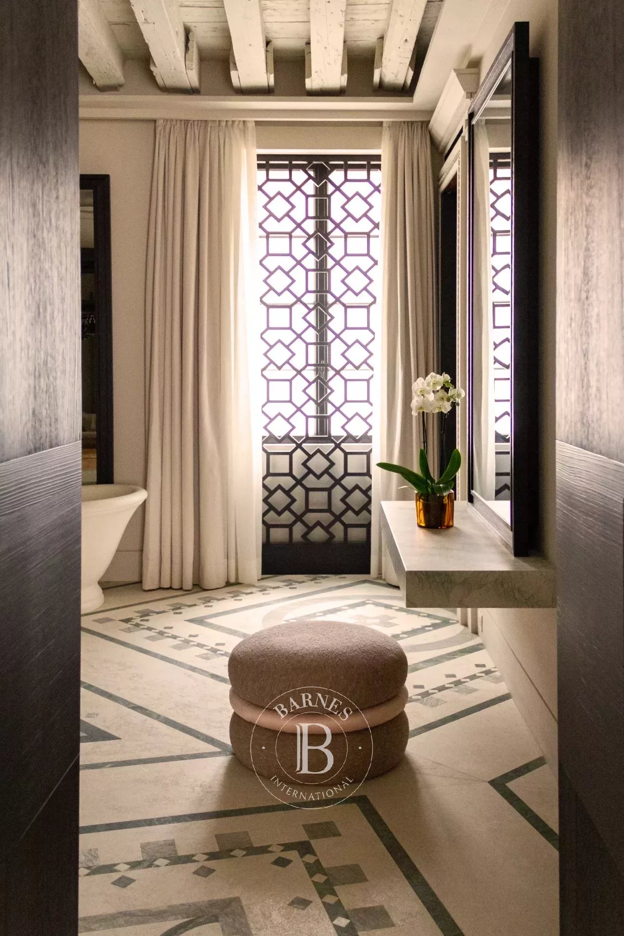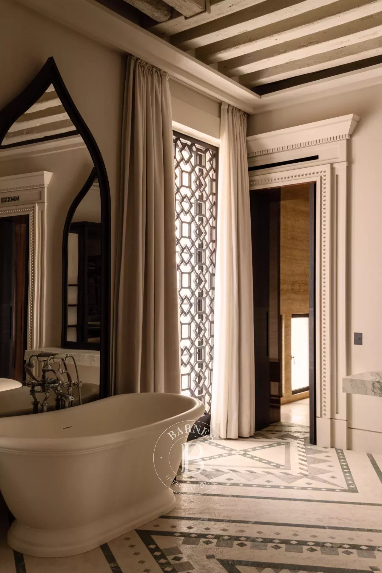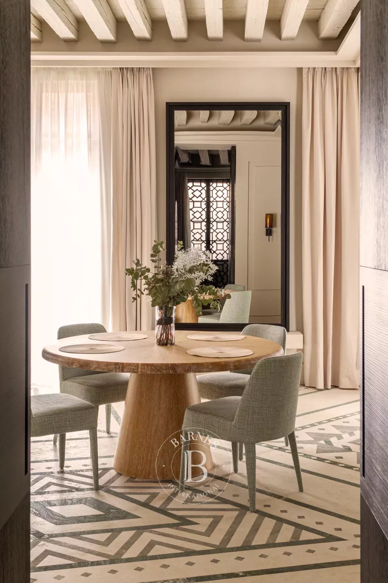 Magnífico palacio en el corazón de Venecia, ubicado en el prestigioso barrio de San Marcos, a pocos pasos de los lugares más emblemáticos de la ciudad. Un auténtico rincón de paz, rodeado de belleza y tranquilidad, que se distingue por su elegancia arquitectónica y la rara presencia de un jardín privado, un verdadero privilegio en el centro histórico. La propiedad tiene una superficie total de 750 m² y está dividida en cuatro apartamentos independientes y dos elegantes junior suites, con un total de seis dormitorios, ofreciendo privacidad y confort total para familias o grupos. Ideal para estancias exclusivas, está disponible para alquiler a partir de un mínimo de tres noches. Una opción perfecta para quienes buscan una experiencia veneciana auténtica, con todas las comodidades y la intimidad de una residencia privada de alto nivel.