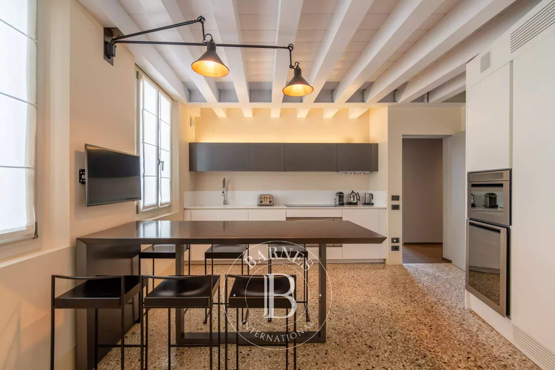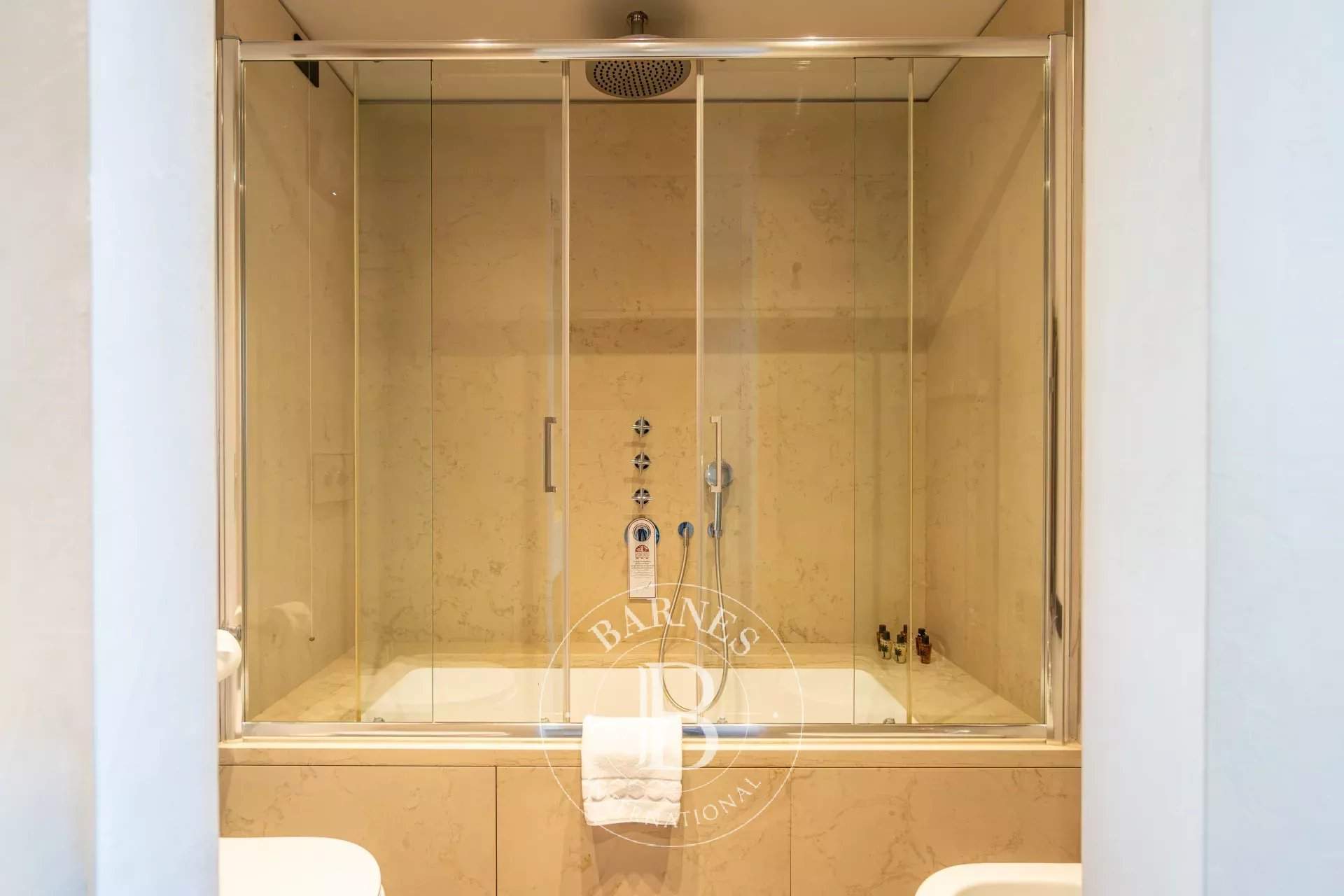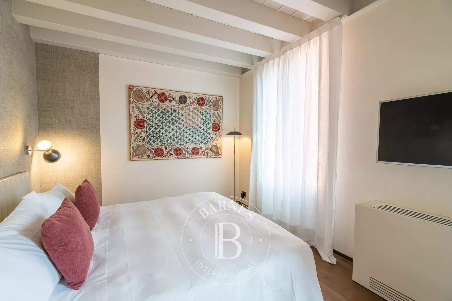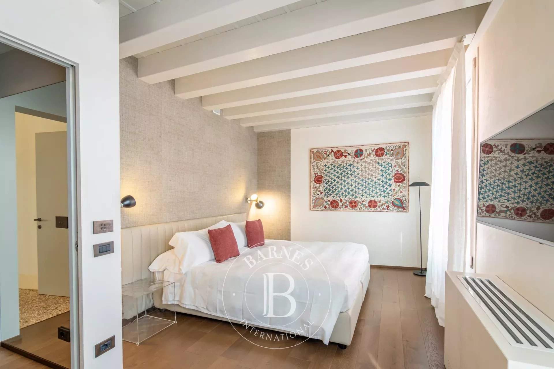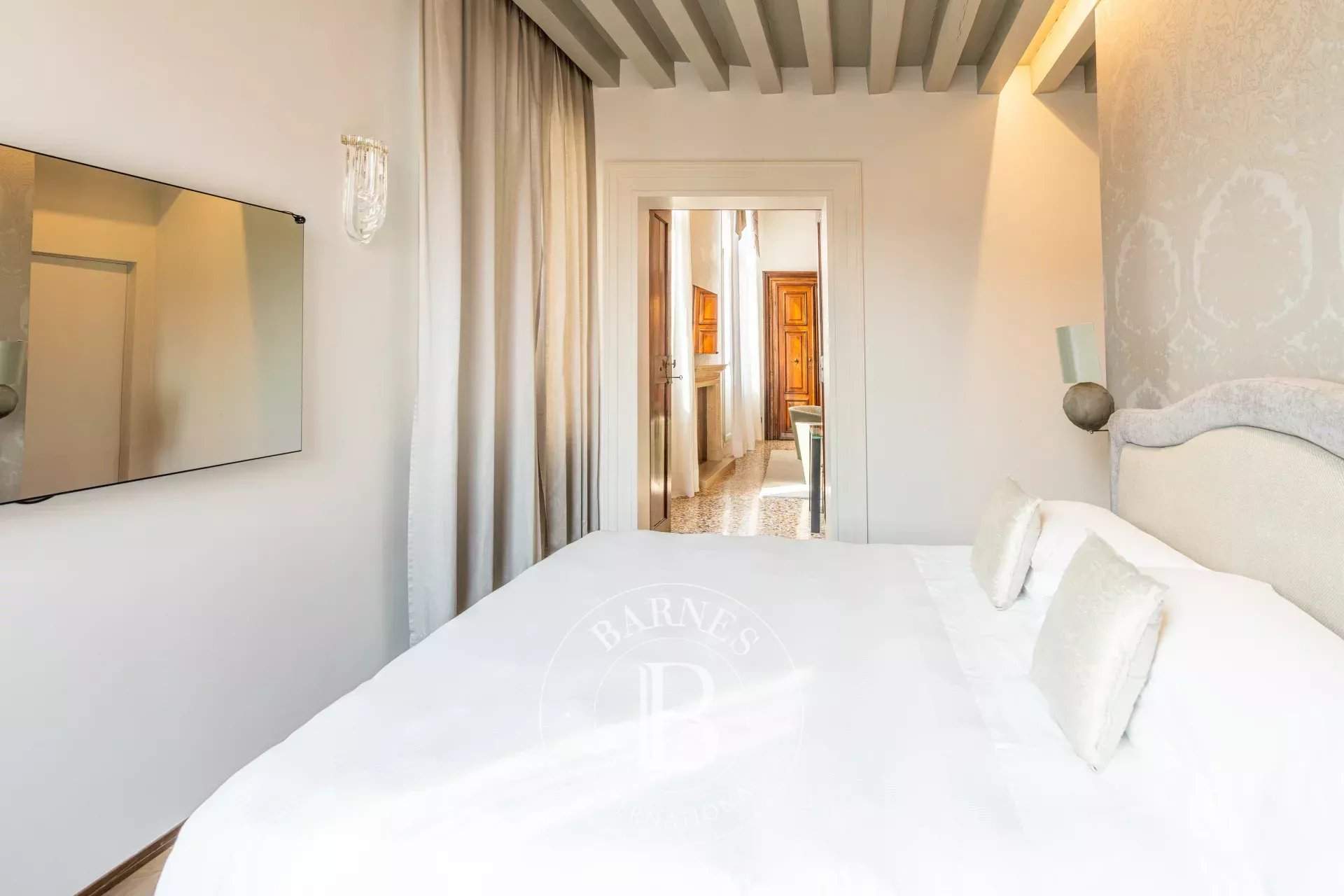 Anice, ubicado en el segundo piso de un prestigioso palacio renacentista con jardín privado, es un apartamento de gran encanto y amplios espacios. Cuenta con un luminoso salón, tres dormitorios, tres baños y una cocina totalmente equipada con dos hornos y una bodega. Los interiores destacan por sus altos techos con vigas a la vista y acabados en tonos suaves, en perfecta armonía con un mobiliario cuidadosamente seleccionado. Los dormitorios, decorados con elegantes papeles pintados, ofrecen vistas panorámicas evocadoras, mientras que los baños están revestidos con piedra istriana de alta calidad. Anice es la elección perfecta para quienes buscan confort exclusivo y detalles de alto nivel.