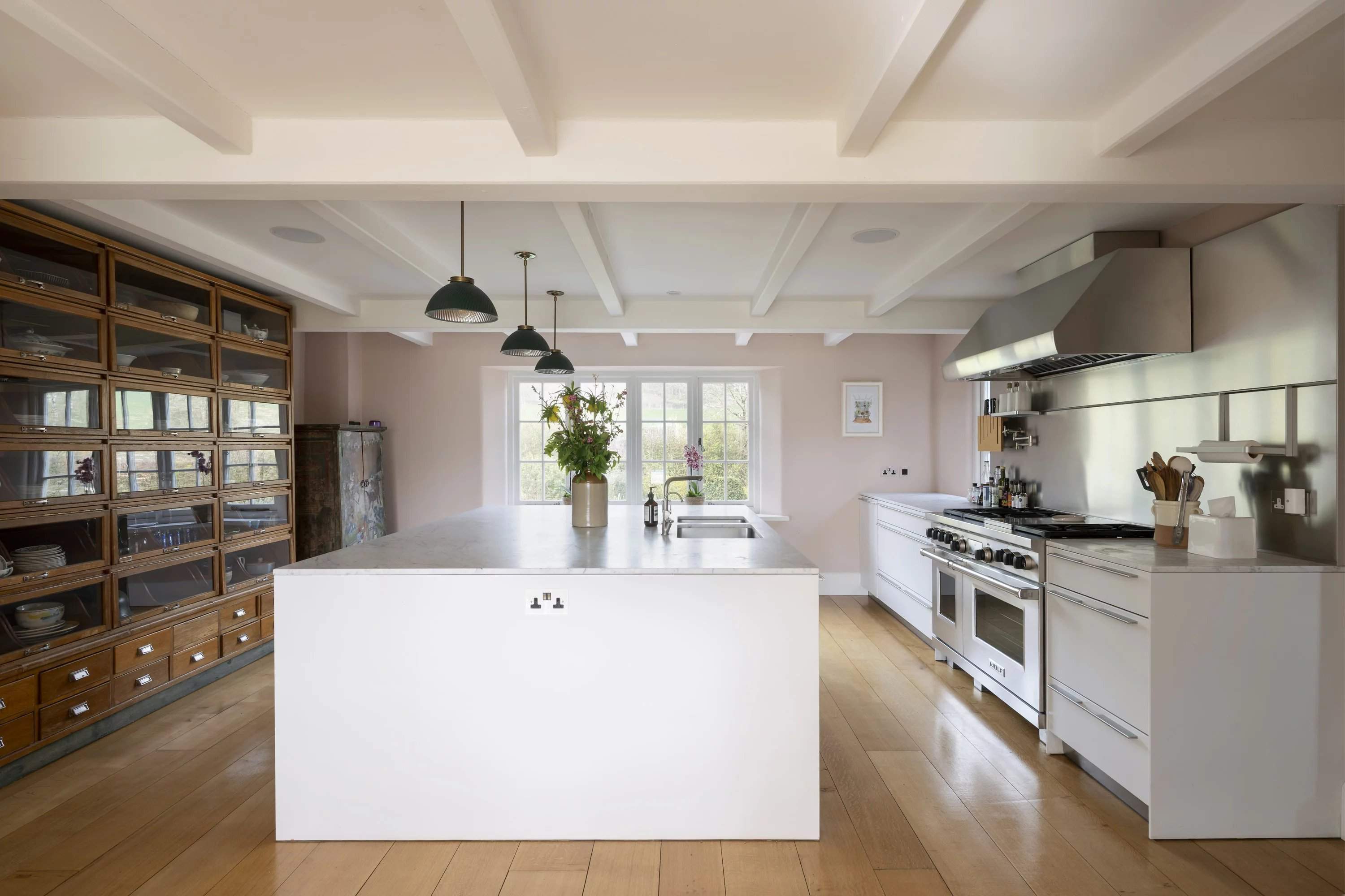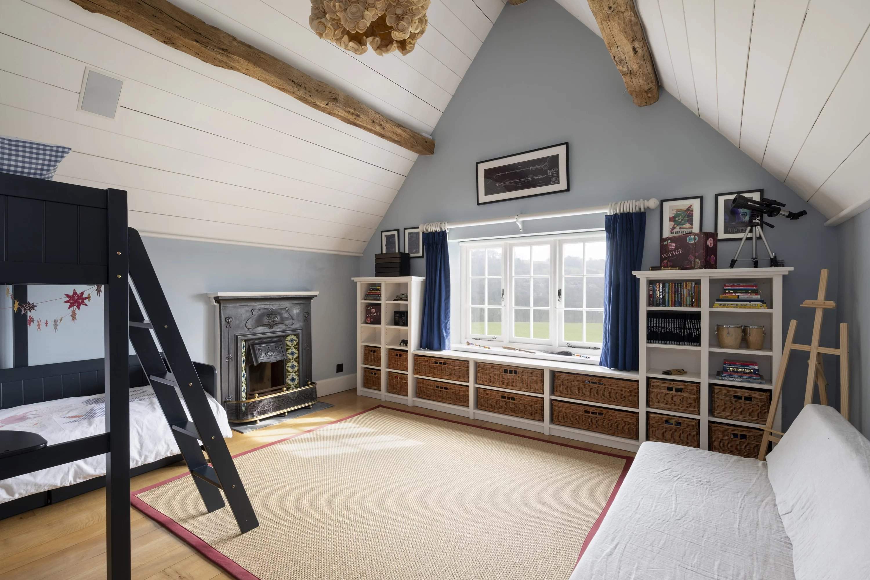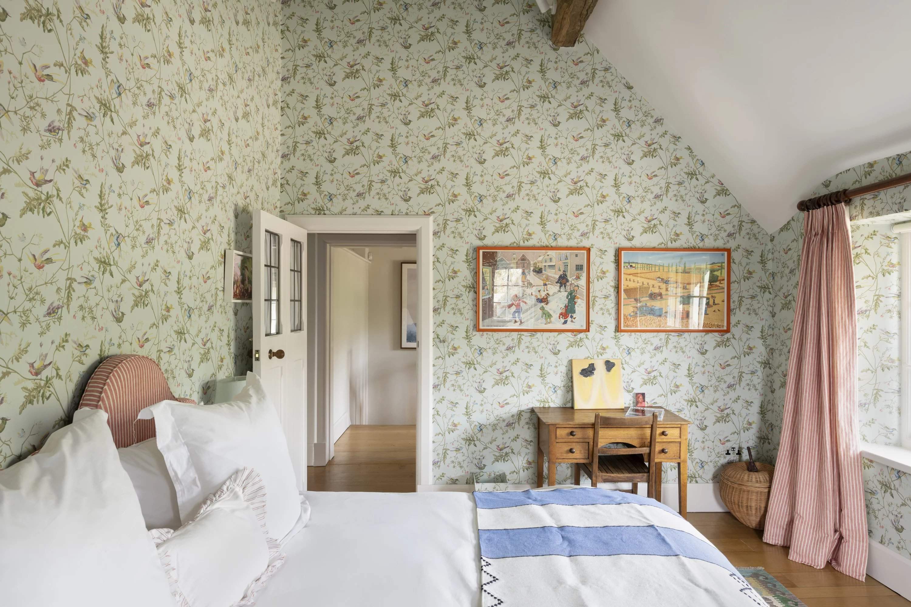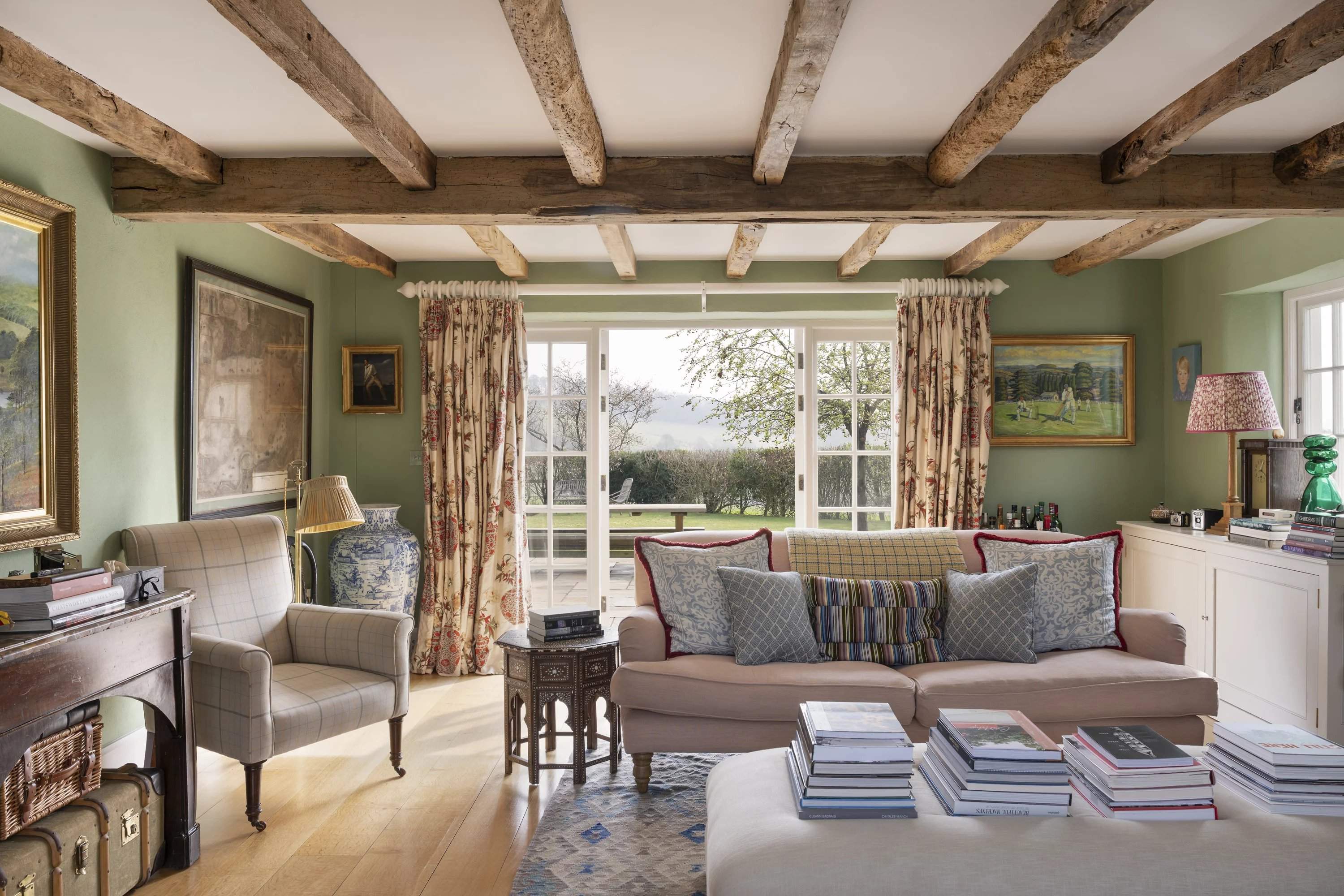 Une maison en chaume de quatre chambres située dans un jardin paysager avec vue sur la campagne ouverte. À l'intérieur, des poutres apparentes et des intérieurs aux tons doux équilibrent le caractère avec une ambiance plus détendue et contemporaine. La salle principale s'ouvre sur la terrasse, tandis qu'une deuxième salle de séjour offre un refuge plus calme. Une cuisine spacieuse et une salle à manger attenante constituent le coeur social, avec des portes françaises prolongeant la fluidité vers l'extérieur. À l'étage, trois chambres sont individuellement décorées, dominées par une suite principale généreuse offrant une vue étendue. Par ailleurs, un studio indépendant complète l'ensemble. Extérieurs, des pelouses et des espaces de terrasse sont encadrés par une plantation établie, avec une vue rurale ininterrompue au-delà.