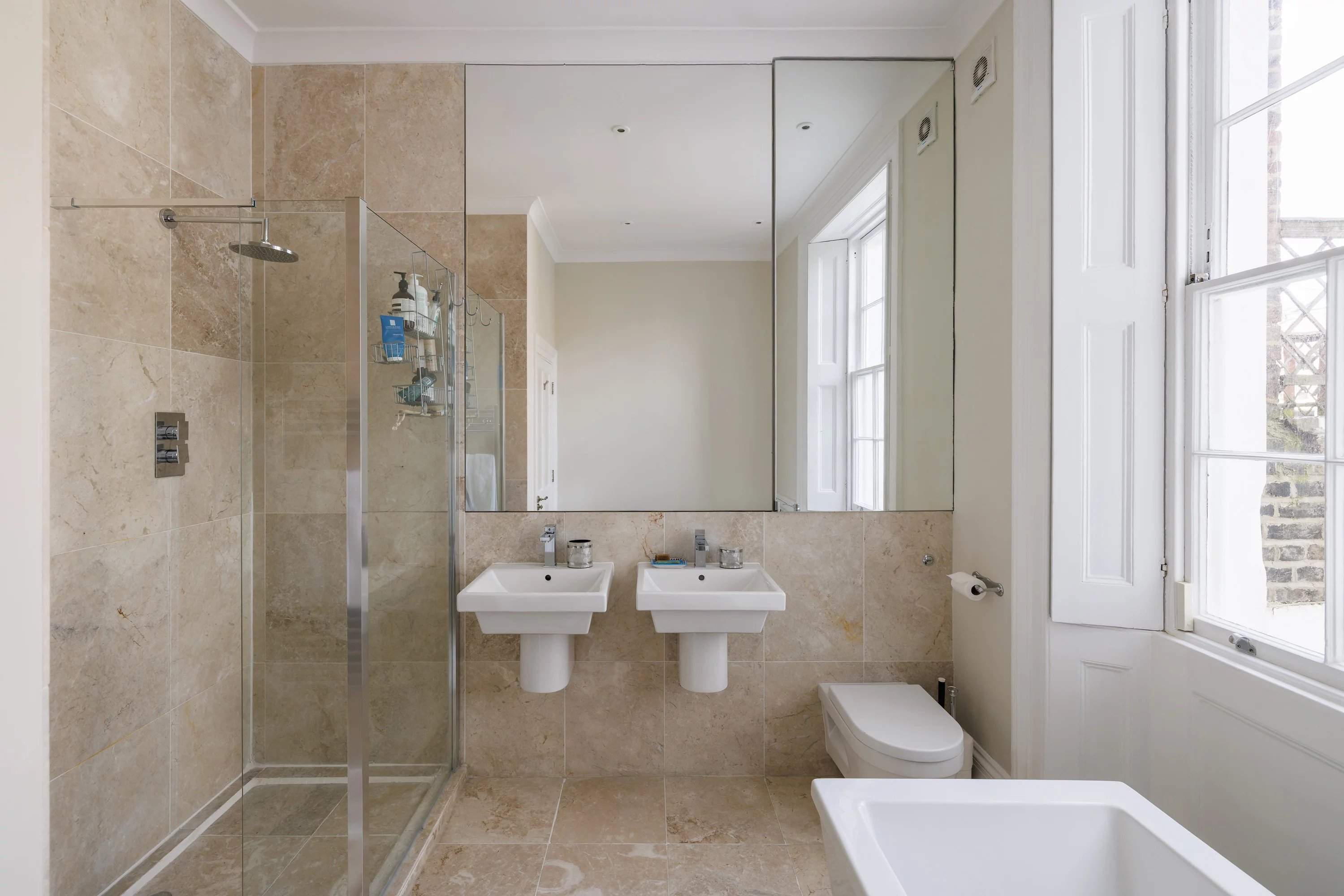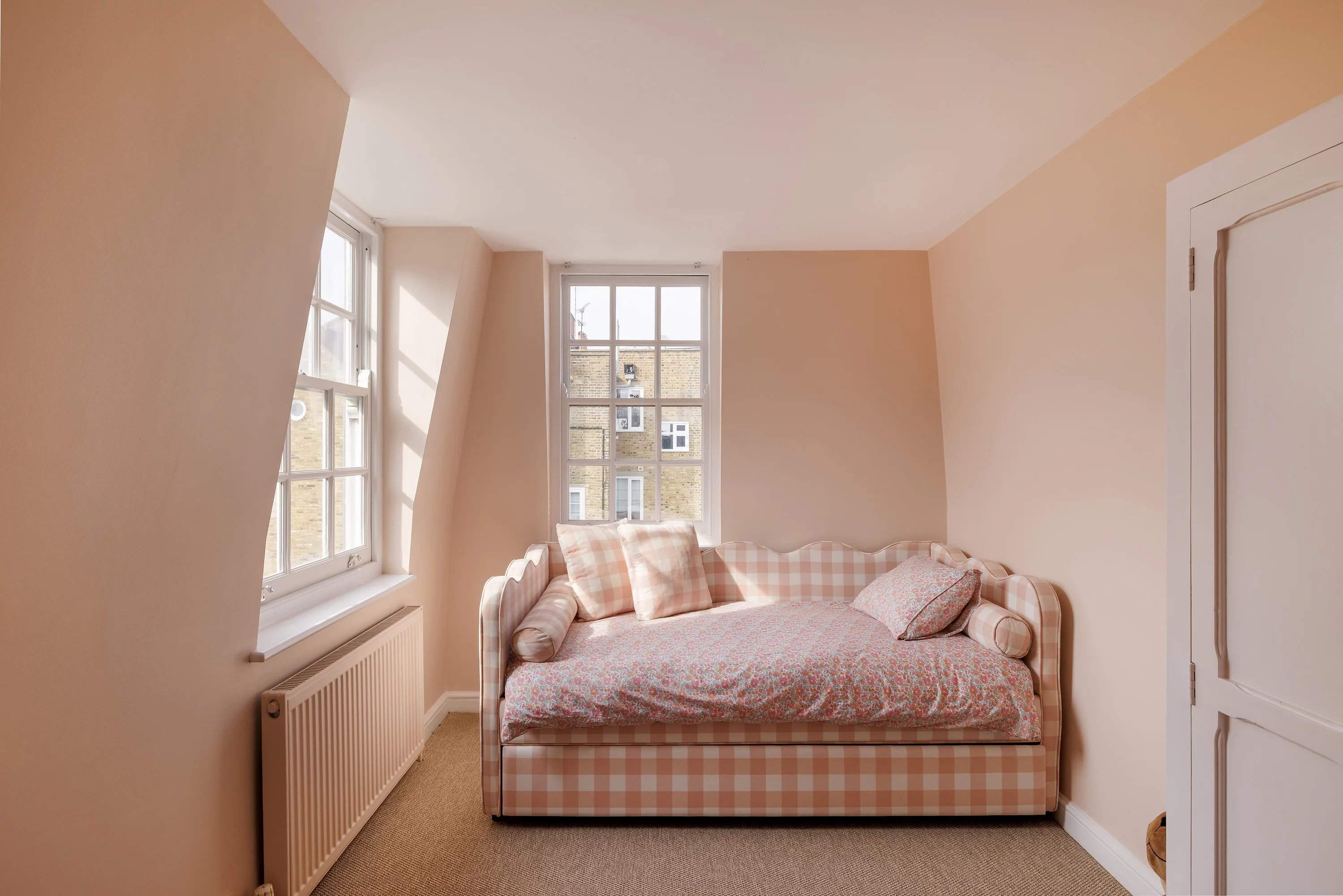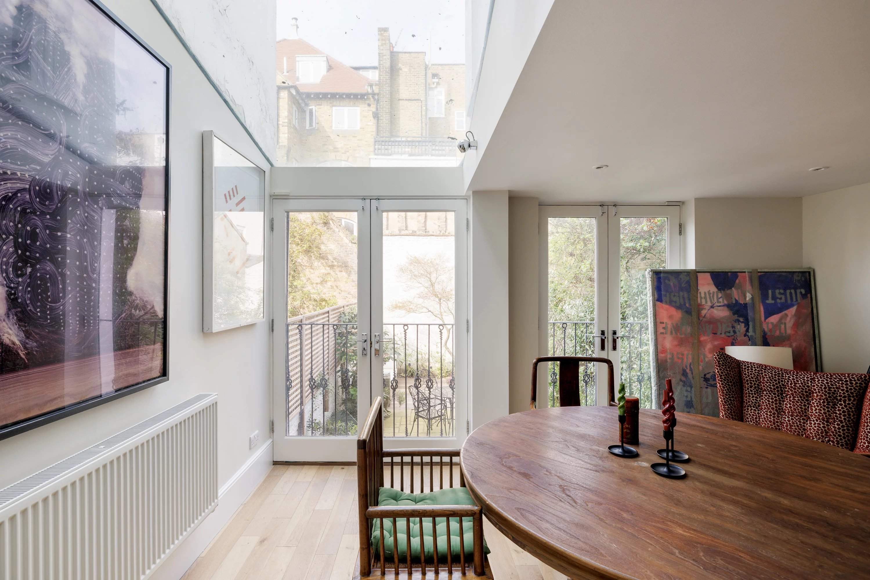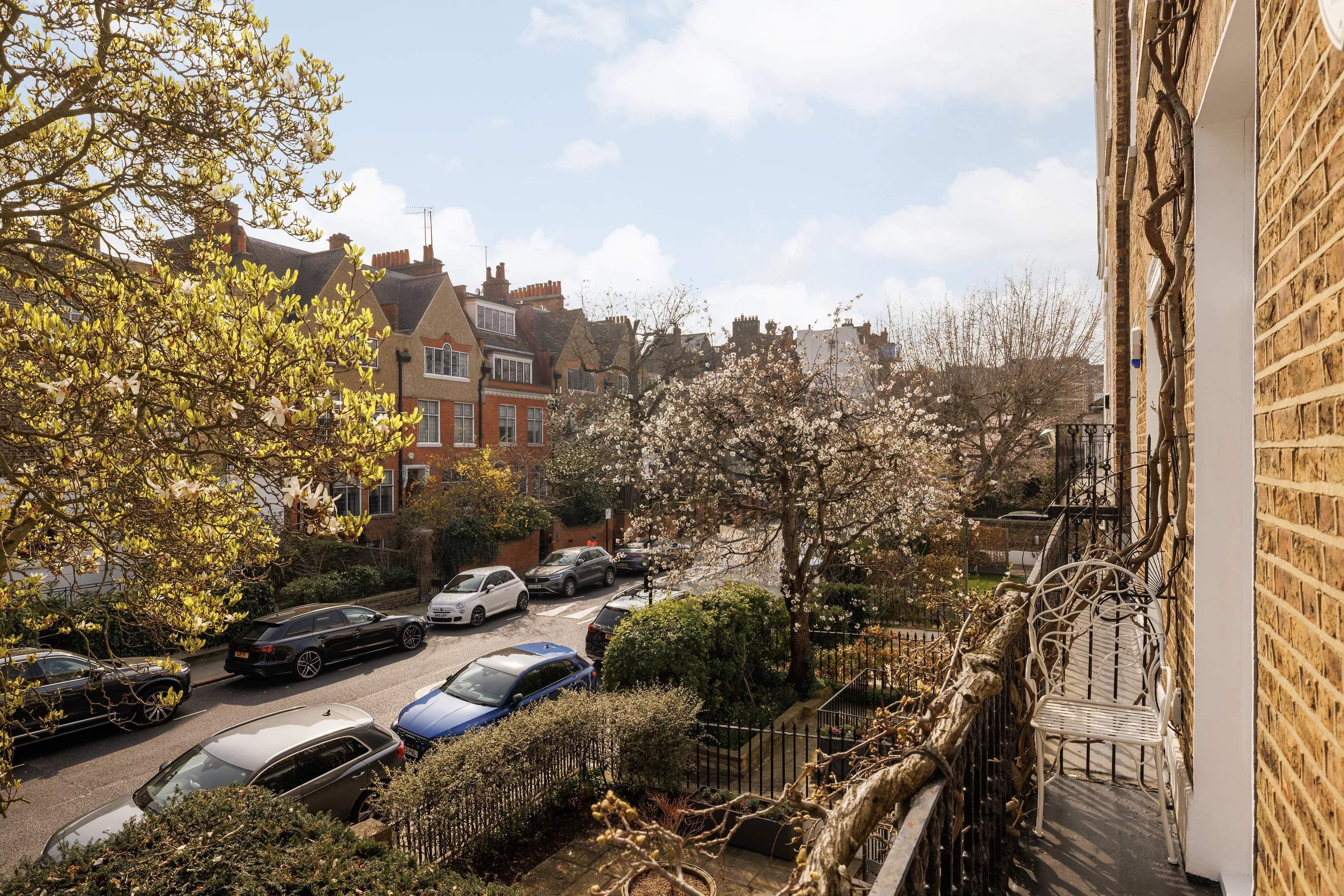 Positionnée le long d'une section paisible bordée d'arbres de Bedford Gardens, cette maison familiale offre une rare sensation de tranquillité. Une façade en briques classiques, encadrée par des détails en fer forgé et une végétation grimpante, se trouve derrière un jardin privé à l'avant, donnant le ton pour des intérieurs confiants et pleins de caractère. À l'intérieur, une succession d'espaces de réception se déploie avec un sens de l'échelle sans effort - de la salle de réception formelle, où des textures superposées, des tapis vintage et des oeuvres d'art frappantes créent un arrière-plan expressif, à un deuxième espace, plus semblable à une galerie. À l'arrière, un espace de repas se situe sous un toit en verre expansif, inondé de lumière naturelle et donnant sur le jardin, tandis qu'un bureau séparé offre un cadre apaisant pour le travail à domicile. La cuisine équilibre la ludicité avec le raffinement. Des armoires blanchies à la chaux sont associées à du papier peint à motif de palmiers et à des tons verts doux, réunis par la lumière qui filtre à travers le vitrage en hauteur. Les appareils Siemens sont intégrés de façon transparente, tandis qu'une île en cascade sert également de bar à petit-déjeuner détendu sous un éclairage suspendu sculptural. Au-delà, une salle de télévision introduit une palette plus sombre, avec des murs foncés et un canapé bas créant un refuge accueillant. Des portes françaises s'ouvrent directement sur le jardin, où un barbecue haut de gamme et des zones de repas et de détente définies sont encadrés par de la brique blanchie et une végétation grimpante - conçus pour recevoir facilement. À l'étage, la principale suite s'étend sur le premier étage, alliant élégance et design audacieux. Un lit à baldaquin ancre l'espace contre un fond de neutres doux, tandis que la verrière à toute hauteur laisse entrer la lumière naturelle et s'ouvre sur un balcon privé. La salle de bains attenante est composée de manière classique, avec de la pierre pâle, une double vasque, une douche à effet pluie et une baignoire autoportante. Les autres chambres poursuivent le langage de conception réfléchi de la maison - l'une avec des armoires encadrées à tout le mur, les autres animées par des motifs ludiques - toutes desservies par une salle de bain familiale finie dans des tons blush, des surfaces en marbre et une double vasque.