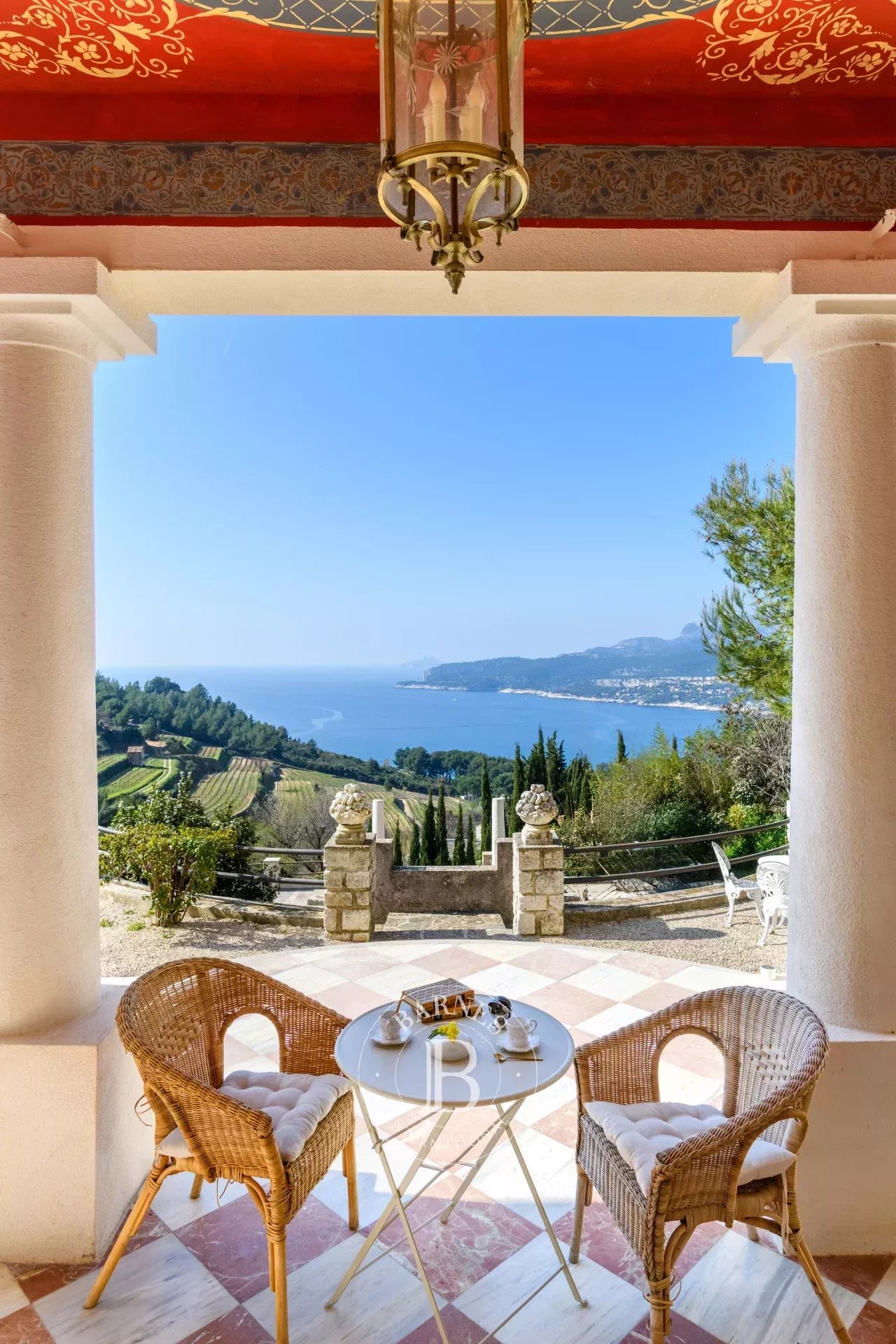 Nichée dans un écrin de verdure à moins de cinq minutes du centre du village de Cassis, cette propriété d'exception offre un cadre unique entre mer, vignes et falaises. Depuis ses terrasses, la vue panoramique embrasse le village, les vignobles, les majestueuses falaises du Cap Canaille et la Méditerranée. Déployant plus de 600 m² habitables, la villa propose de vastes espaces de réception : double séjour, salon musique avec piano, salon TV, salle à manger et cuisine de chef entièrement équipée, idéale pour recevoir ou accueillir un chef privé. La propriété dispose de 5 chambres en suites, dont quatre avec vue mer, chacune avec salle de bain et WC privatifs, garantissant confort et intimité à ses hôtes. Le domaine s'étend sur 2,5 hectares de nature préservée, offrant une expérience rare où l'on profite du potager, du vin de la propriété et d'un parcours de santé au milieu des chênes. Prestations : - Piscine extérieure avec vue panoramique - Piscine intérieure chauffée - Hammam - Parking pour 10 véhicules - Service quotidien inclus : 7h de ménage et entretien des extérieurs - Chef privé sur demande Une propriété rare, où l'élégance intemporelle, la nature et l'art de vivre méditerranéen se rencontrent pour offrir une expérience exclusive sur les hauteurs de Cassis. Les informations sur les risques auxquels ce bien est exposé sont disponibles sur le site Géorisques : www.georisques.gouv.fr Contact - Cléa LEDUC: 06 64 33 97 05 Mail : c.leduc@barnes-international.com Agent commerciale EI - RSAC 984 862 979