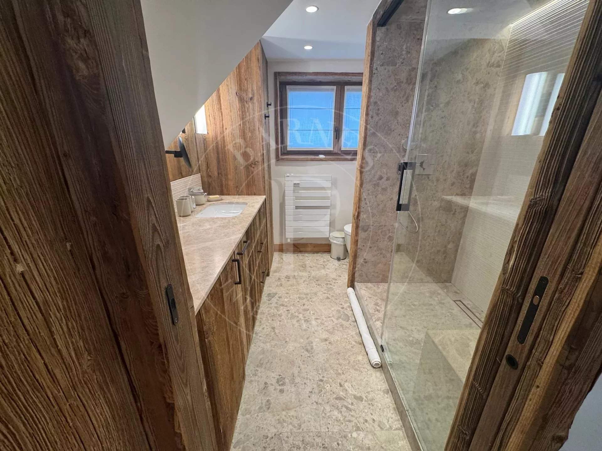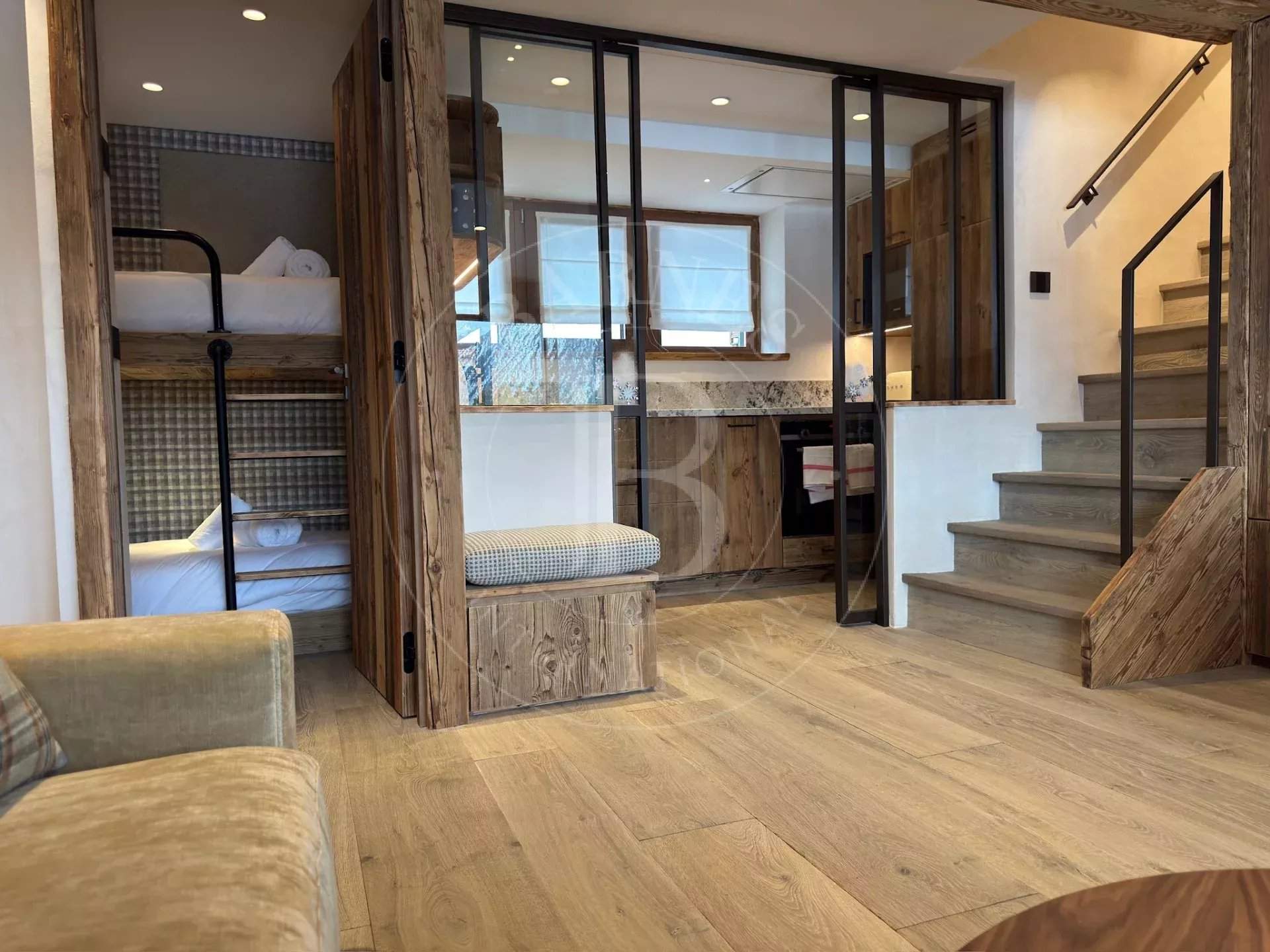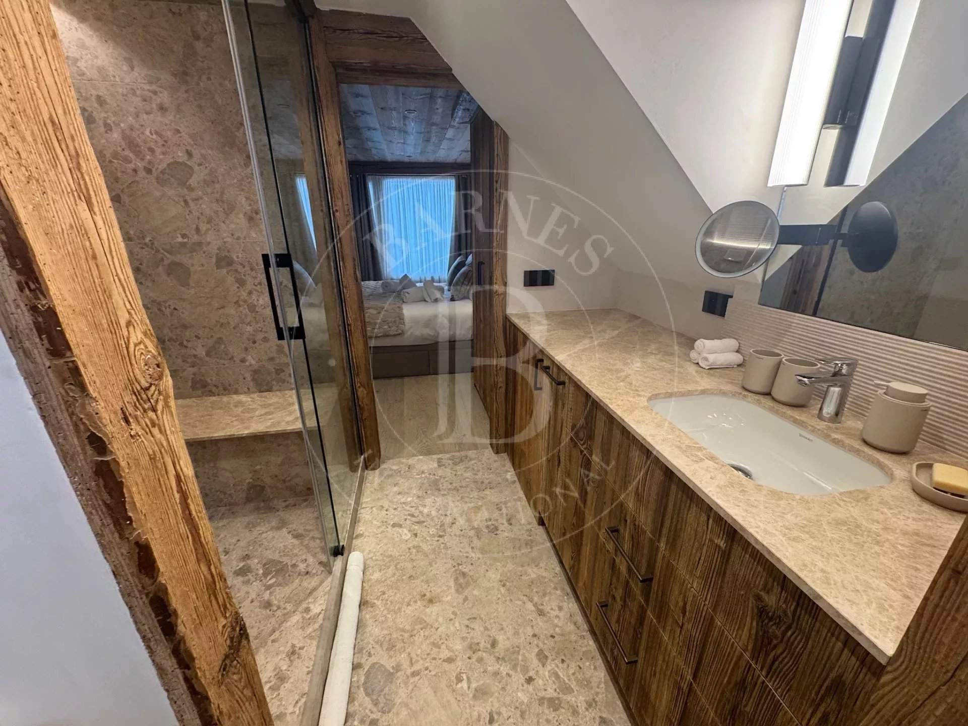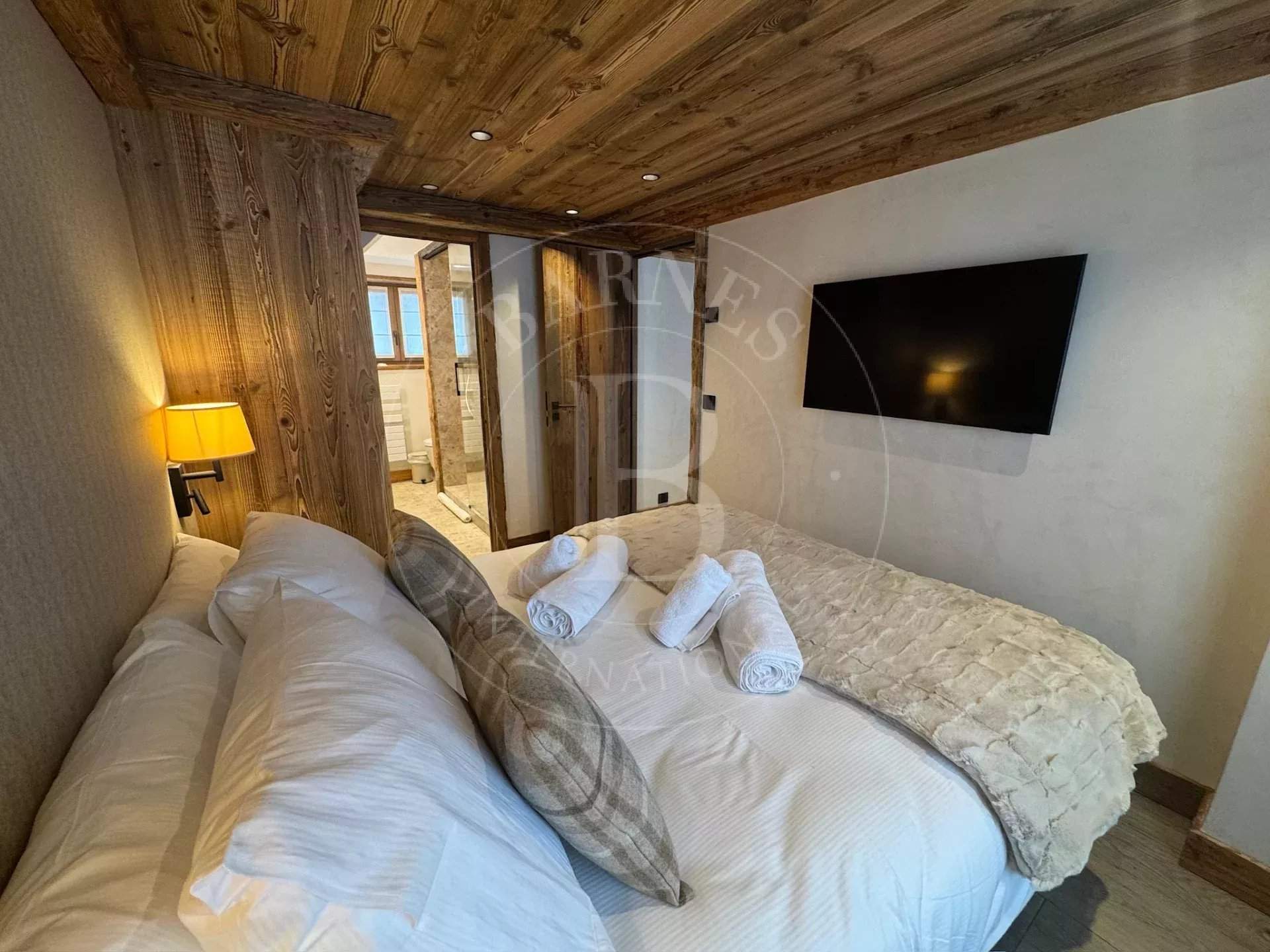 Spacieux, lumineux et rénové pour l'hiver 2025-2026 par un architecte de renom à Courchevel - La maison Chiche. Idéalement situé rue du Plantret à Courchevel 1850, à deux pas des pistes de ski et des écoles, l'appartement Vanoise 2 vous accueille dans un cadre élégant et chaleureux. D'une superficie de 63 m², ce bien rénové avec soin se trouve au 2? étage d'une résidence de standing. Depuis le balcon, profitez d'une vue imprenable sur les sommets enneigés, un spectacle saisissant à tout moment de la journée. Un lieu idéal pour des vacances inoubliables à la montagne, entre confort, emplacement d'exception et prestations haut de gamme. Les plus de cet hébergement : - Accès à la piste de Plantret à 130m - À seulement 3 minutes à pied des commerces du Forum et la Croisette - Vue imprenable sur les sommets depuis le salon et les chambres - Douche Hammam dans la suite parentale - Appartement entièrement rénové pour la saison 2025-2026 L'appartement est composé comme suit : - Salle de séjour et salle à manger - accès balcon - Cuisine tout équipée - Chambre de Maître 1 : 1 lit double (160x190) - 1 salle de douche/ hammam avec 1 vasque et 1 WC- balcon - TV - - Chambre 2 : 1 lit double (160x190) - balcon - TV - Chambre 3 : 2 lits simples superposés pour 2 enfants (80x200) - Salle de bain avec 1 vasque et 1 WC Les prestations incluses : - Remise des clés à l'arrivée - Linge fourni en début de séjour - Ménage de fin de séjour Services optionnels proposés par Barnes (hors location du logement) - Accueil à la propriété - Conciergerie Barnes 5? - Lits faits à l'arrivée - Produits d'accueil Résidence la Vanoise, située en plein de coeur de Courchevel 1850 - l'entrée de l'appartement est située au 3ème étage, des escaliers permettent de rejoindre la pièce principale au 2ème étage, Il est donc inaccessible pour les personnes à mobilités réduites. Depuis l'appartement, vous aurez accès à la piste en 1 minute à pieds, aux commerces en 3 minutes. C'est un véritable point de convergence de nombreuses pistes, vous êtes aussi à quelques pas du rassemblement ESF et jardin d'enfants « Piou-Piou ». L'appartement Vanoise 2 est actuellement en cours de rénovation complète par La Maison Chiche, un cabinet d'architecture d'intérieur de renom basé à Courchevel. Implantée depuis de nombreuses années dans la station, leur équipe est reconnue pour son savoir-faire et son goût du détail. Le projet promet des aménagements élégants, chaleureux et colorés, mariant matériaux nobles, confort moderne et esprit montagnard contemporain. Chaque espace a été repensé pour offrir une ambiance raffinée et accueillante, à la hauteur des standards de la station. Ce soin apporté à la rénovation garantit à nos futurs hôtes une expérience unique, alliant esthétique, confort et qualité haut de gamme. Les animaux de compagnie ne sont pas autorisés et cet hébergement est non-fumeur. Taxe de séjour en supplément au tarif en vigueur (pour toute personne de plus de 18 ans) Montant du dépôt de garantie non encaissé : 2000€