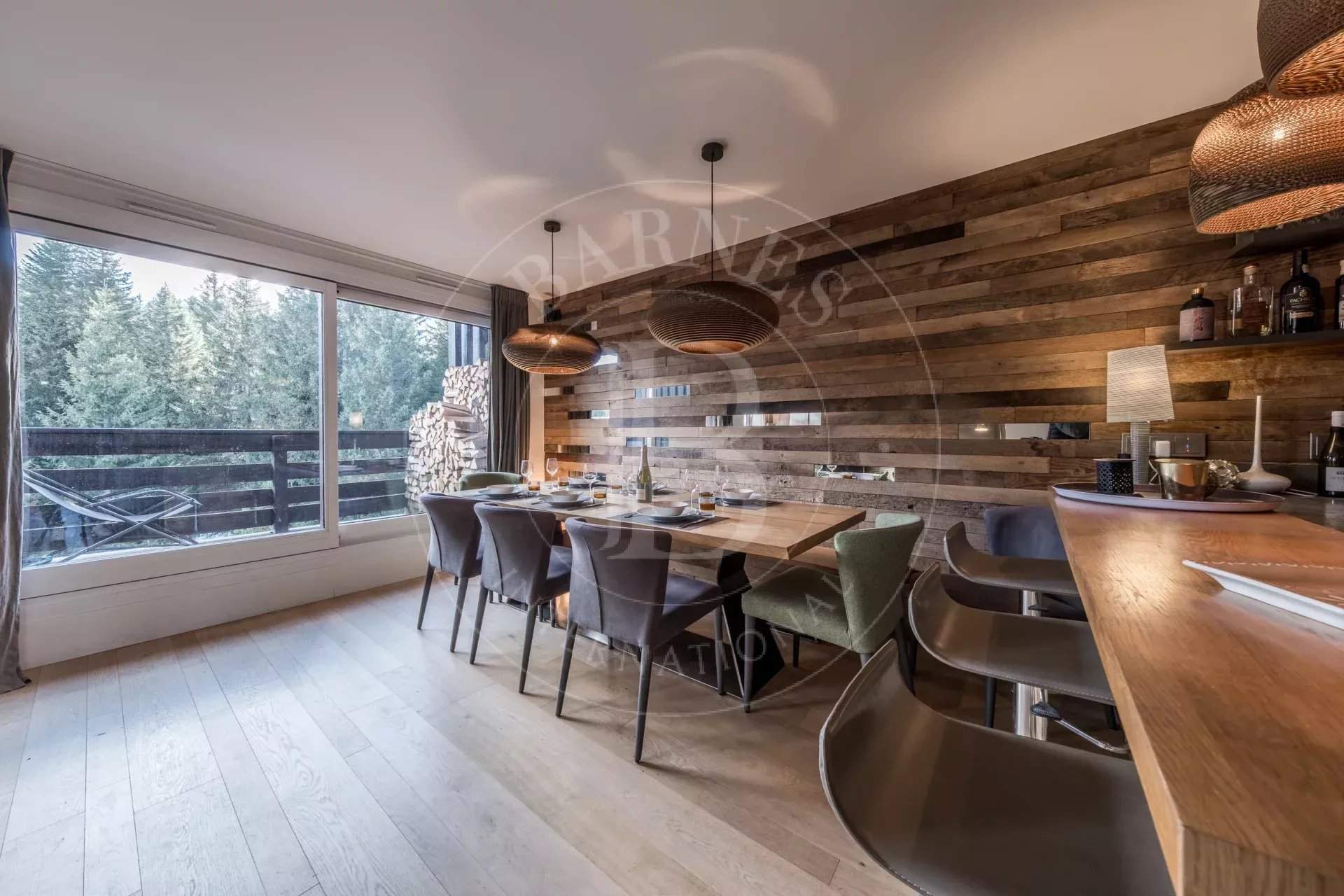 Au coeur du prestigieux quartier du Jardin Alpin, découvrez ce spacieux appartement de 115 m², idéalement situé skis aux pieds et parfaitement équipé pour accueillir jusqu'à 8 personnes. Avec ses 4 chambres confortables, ses espaces de vie généreux et son emplacement privilégié, il est le lieu idéal pour des vacances en famille ou entre amis à Courchevel 1850. Les atouts du bien : - Grande pièce à vivre conviviale avec cheminée (bois fourni) - Résidence skis aux pieds, accès direct aux pistes par un chemin plat - 1 place de parking privative - Emplacement d'exception au coeur du Jardin Alpin Composition de ce bien : - Cuisine entièrement équipée : réfrigérateur, four, plaques vitrocéramiques, machine Nespresso, bouilloire, grille-pain et lave-vaisselle - Salle à manger avec grande table pour 6 convives - Salon lumineux avec canapé, fauteuils et cheminée - Balcon avec vue dégagée - Chambre 1 : lit Queen Size, balcon, salle de douche attenante avec vasque - Chambre 2 : lit Queen Size, salle de douche attenante avec vasque et WC - TV - Chambre 3 (cabine) : un lit superposé - Entrée avec rangements - Toilette indépendante - Buanderie avec lave-linge et sèche-linge Etage +1 : - Chambre Master 4 : lit double - salle de bain avec baignoire et douche avec 1 vasque - TV avec balcon Prestations incluses : - Cadeaux de bienvenue - Produits d'accueil - Lits faits à l'arrivée - Linge de toilette fourni - Ménage de fin de séjour - Service de conciergerie