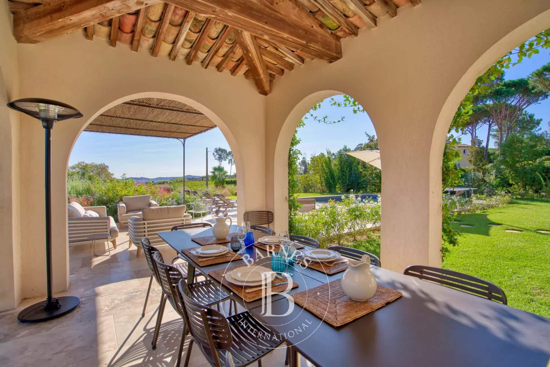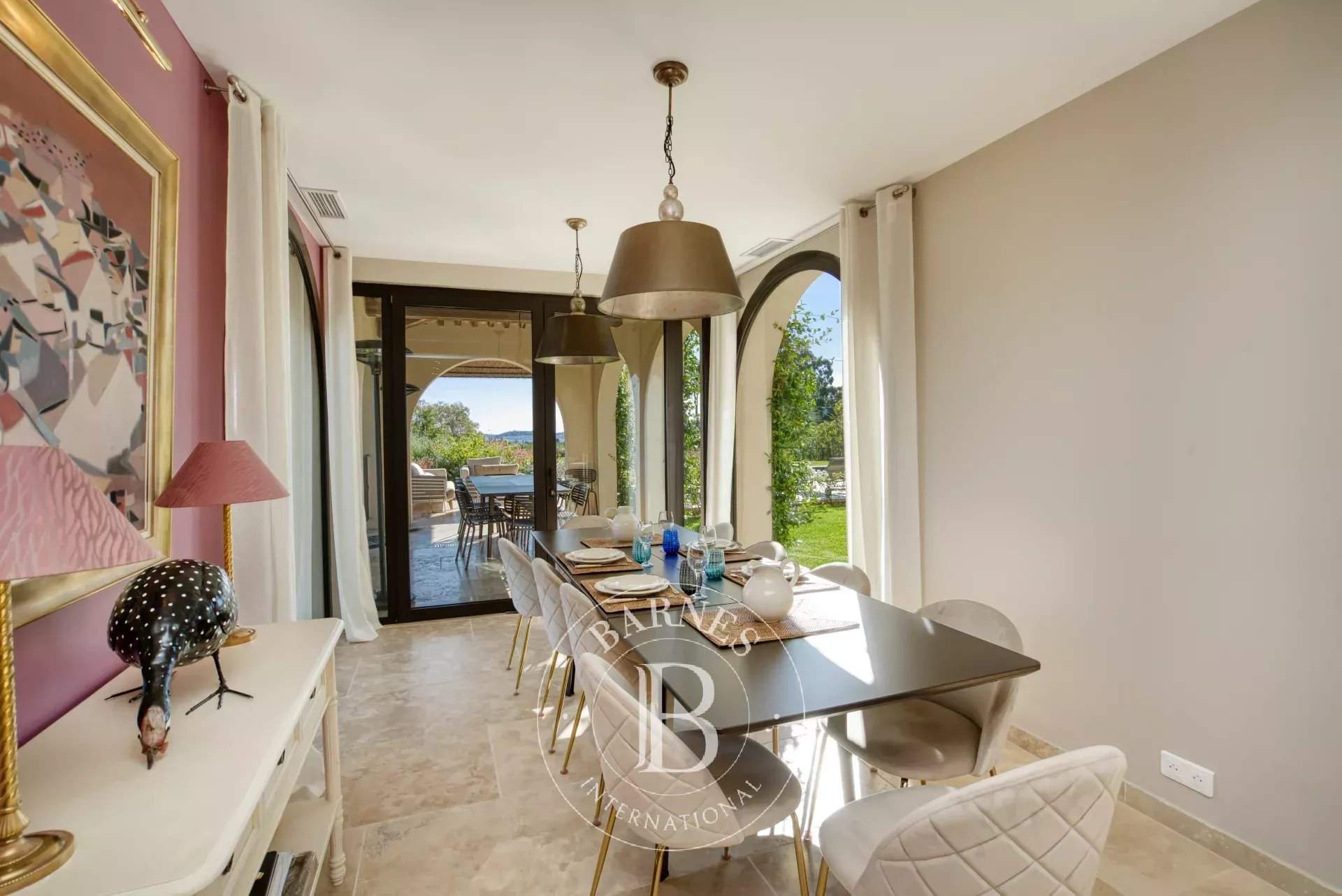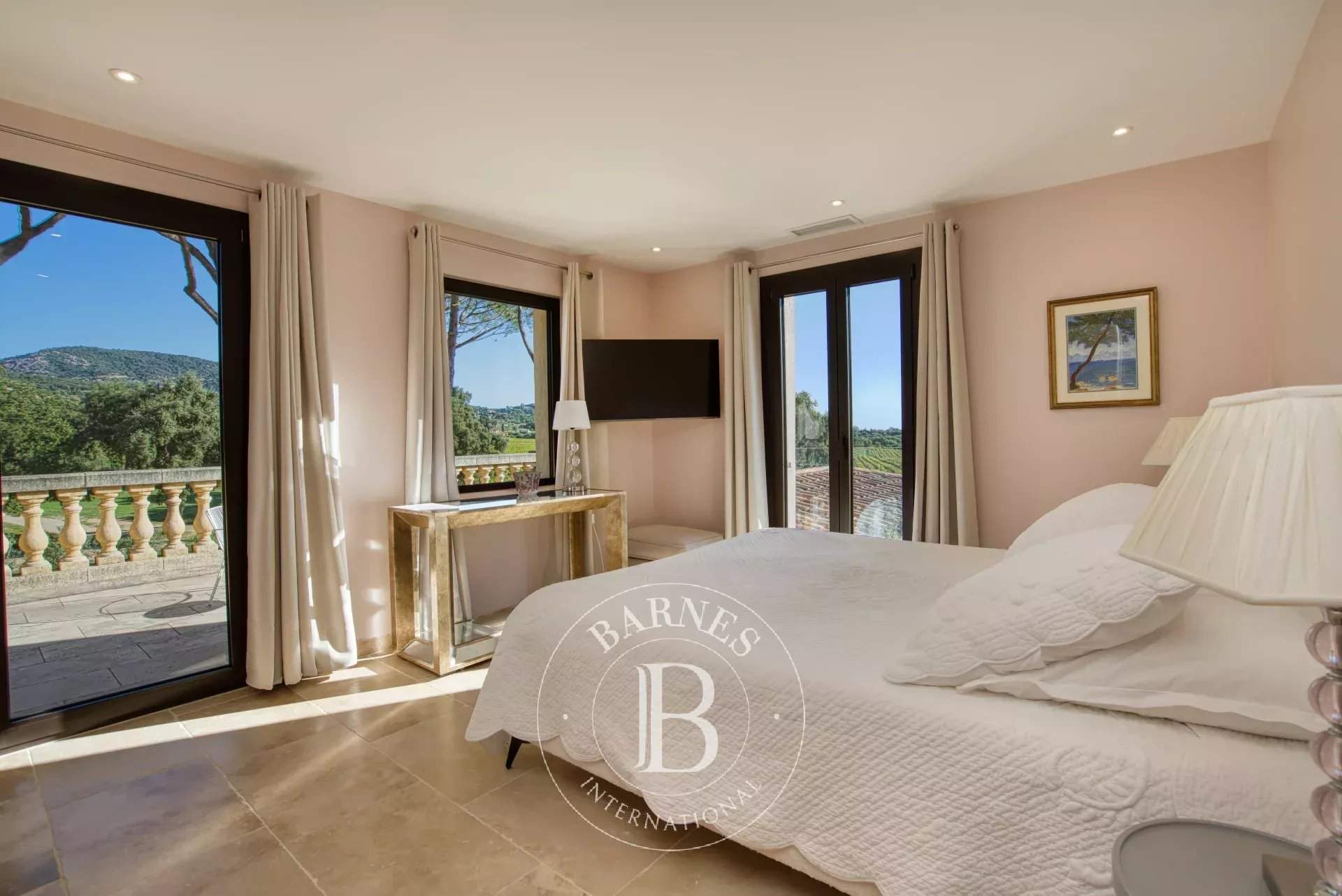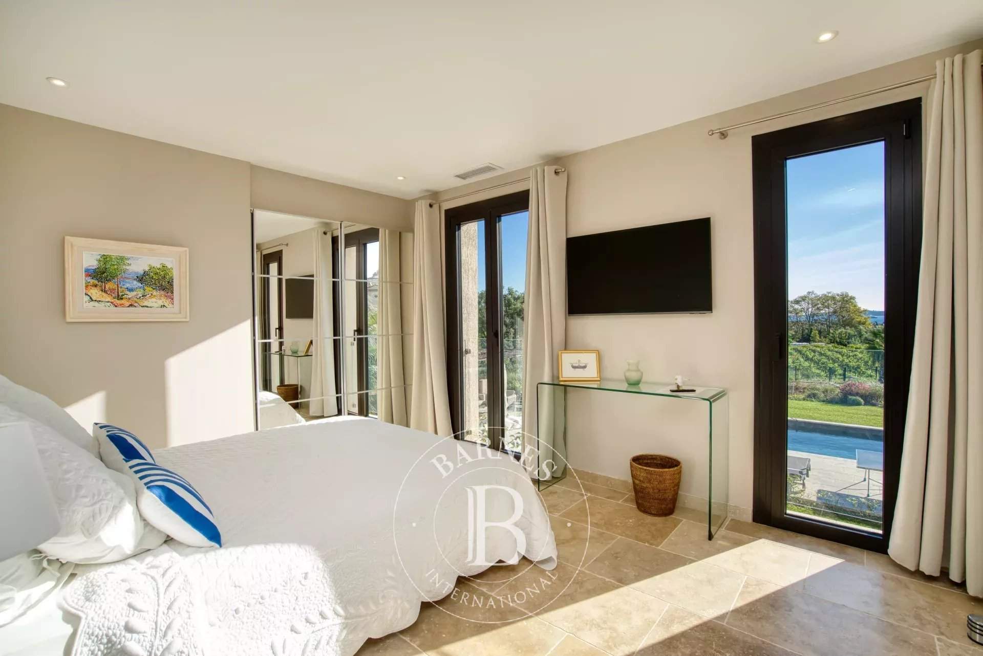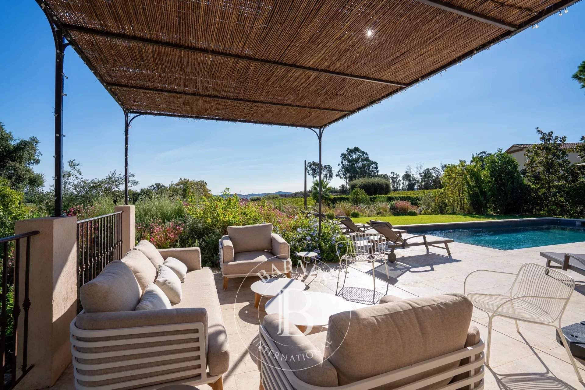 Cette villa d'environ 380 m² située dans un domaine prisé de Grimaud offre une expérience de vie luxueuse. Entièrement rénovée avec des finitions haut de gamme, elle se compose d'un salon spacieux ainsi que d'une cuisine équipée ouverte sur une salle à manger. La villa compte six chambres en suite dans la maison. Le terrain offre de nombreux espaces de détente, de plusieurs terrasses d'extérieures, un terrain de pétanque ainsi qu'une piscine. Services inclus : ménage régulier, linge de maison, linge de piscine et service conciergerie BARNES personnalisé Les informations sur les risques auxquels ce bien est exposé sont disponibles sur le site Géorisques : www.georisques.gouv.fr