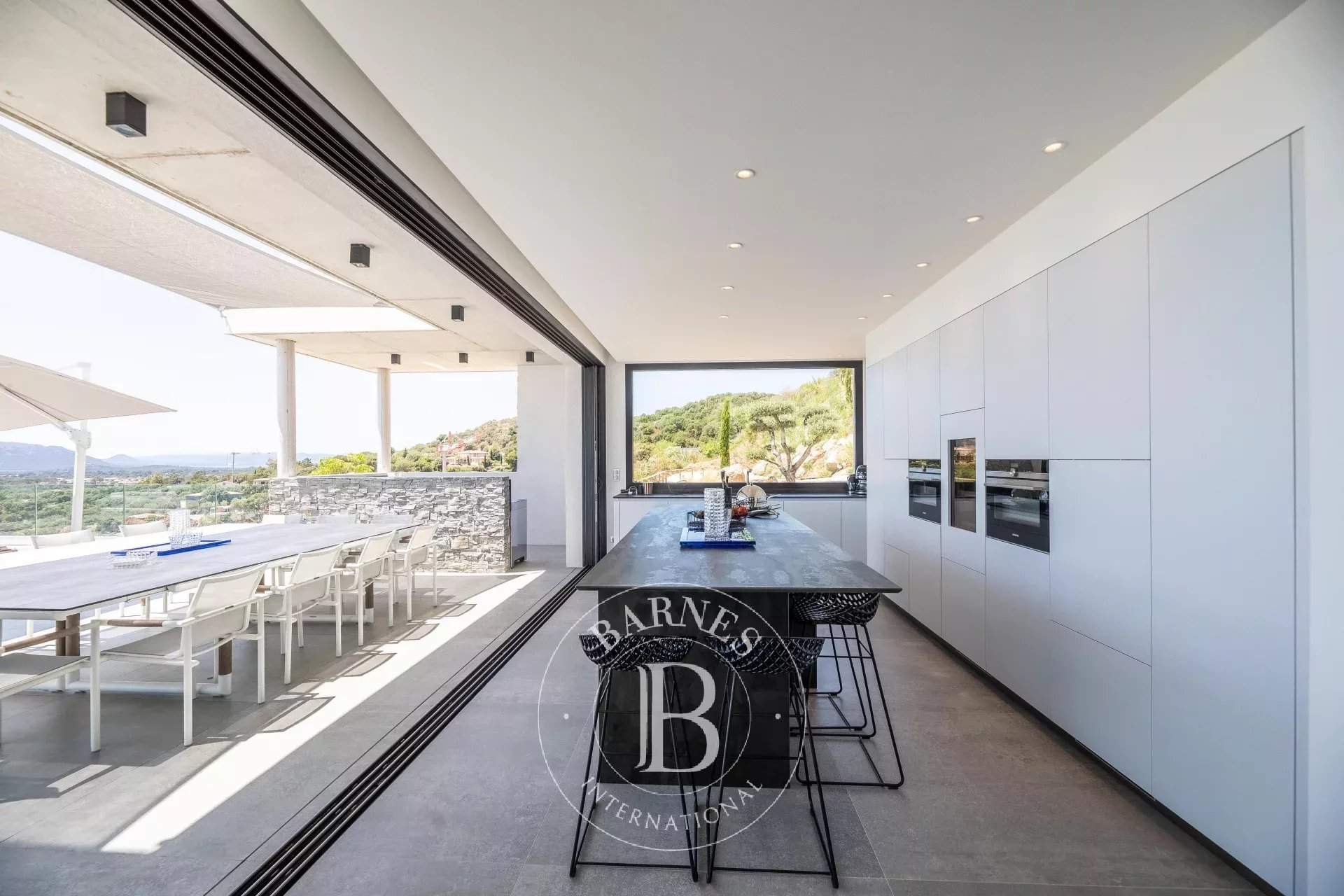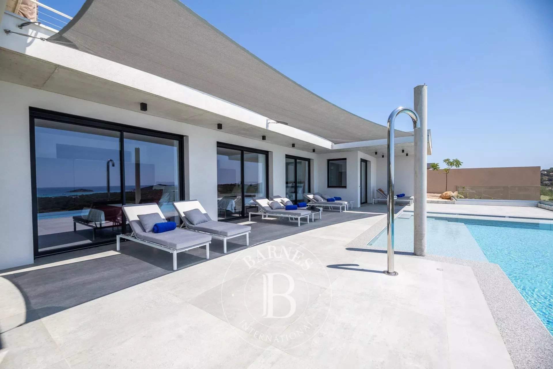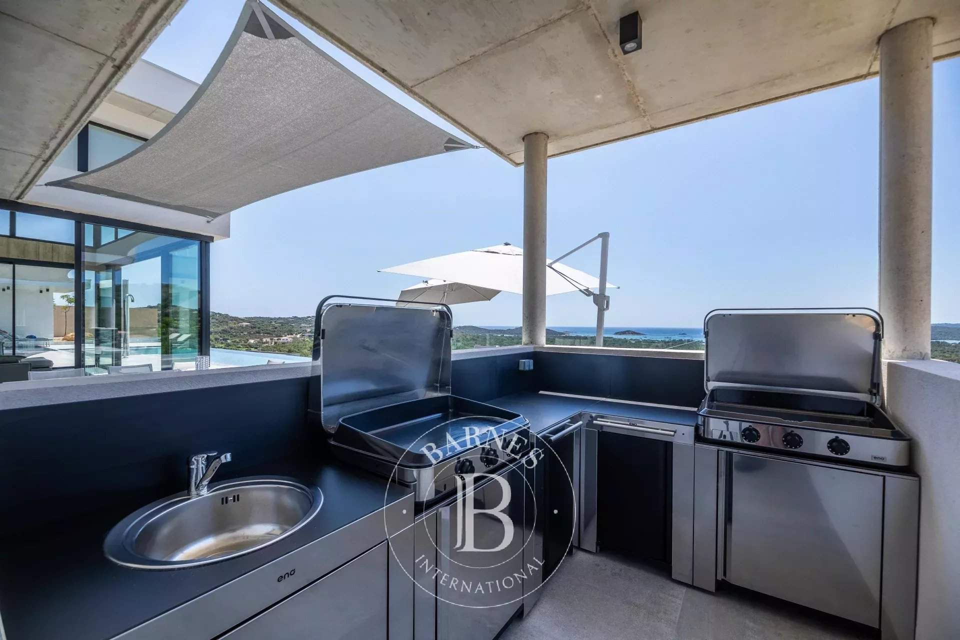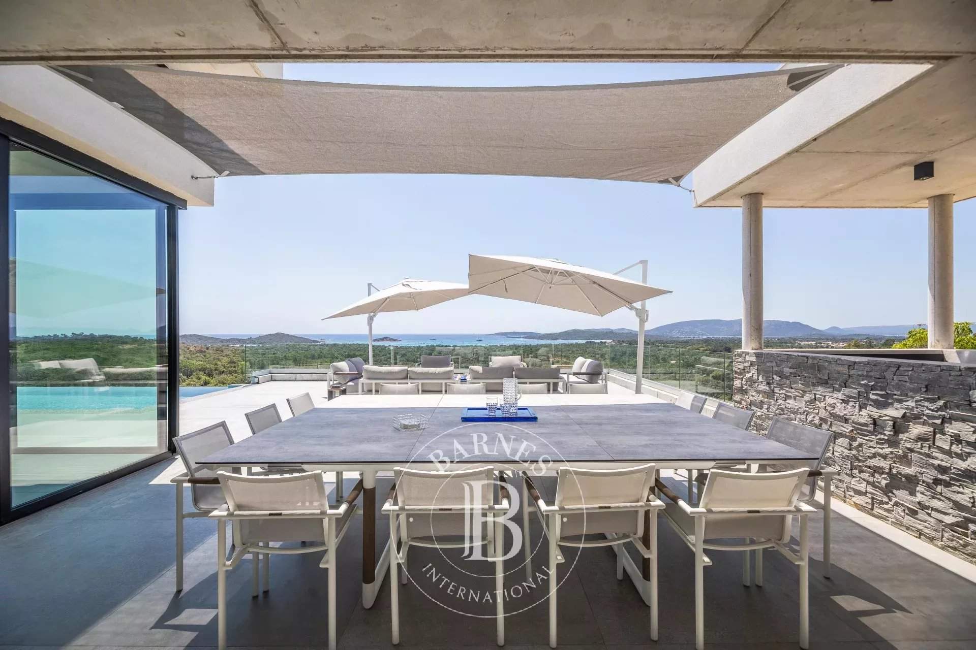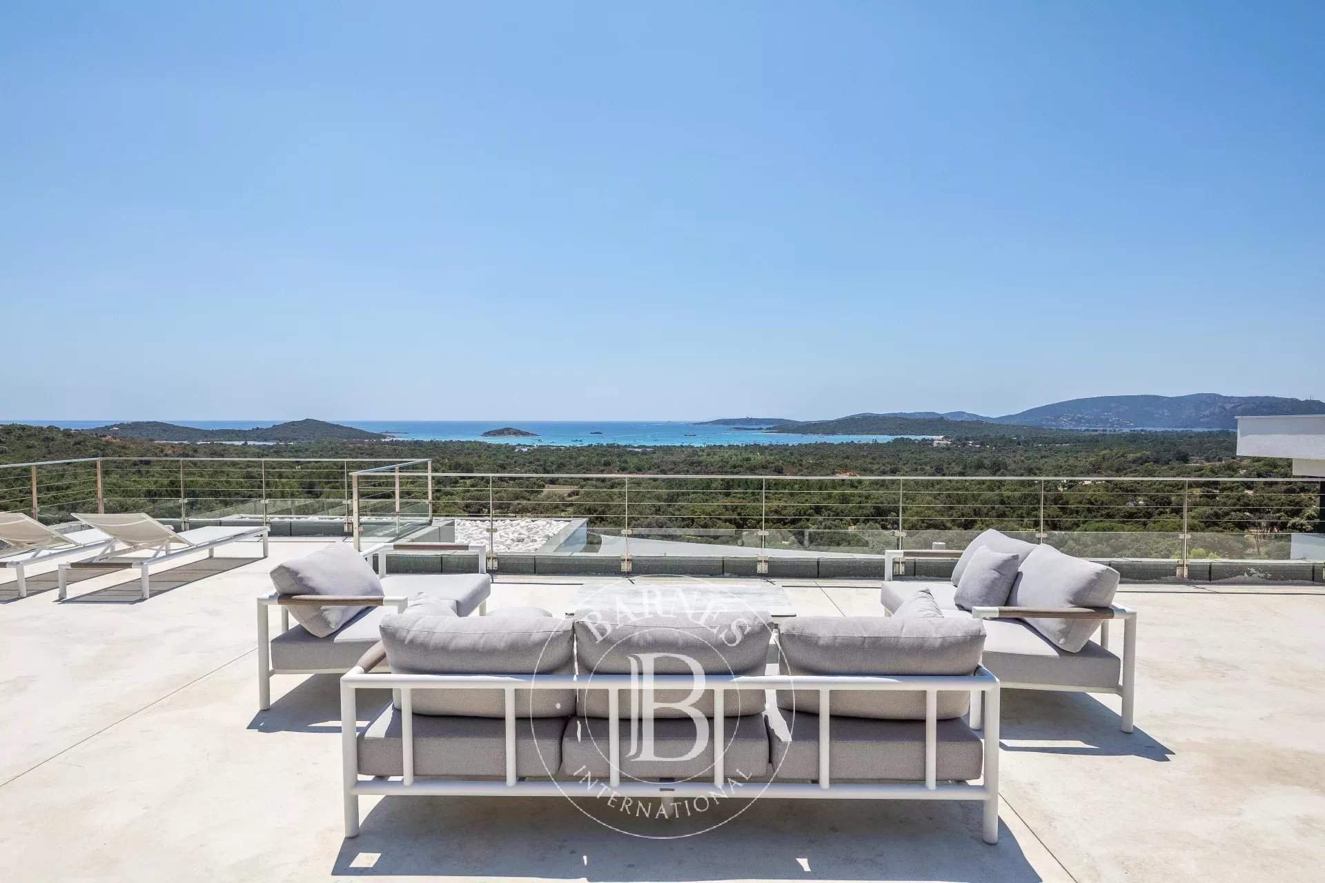 RL289 - Villa Alba À proximité du village de Saint-Cyprien et de ses plages prisées, cette propriété bénéficie d'une vue panoramique sur l'ensemble de la baie. La villa d'environ 400 m² offre une vaste pièce de vie réunissant 2 salons, un espace repas et une cuisine américaine entièrement équipée avec cellier, le tout ouvert sur une large terrasse face à la mer. L'espace nuit se compose de 7 chambres avec salles de douche complètes et vue mer, dont 2 suites parentales, un dortoir enfants et une chambre de service. Une salle de sport complète les prestations. Les extérieurs accueillent une piscine à débordement, une cuisine d'été et un toit-terrasse aménagé avec une imprenable sur la mer. Réputée pour ses plages aux eaux cristallines et sa proximité avec Porto-Vecchio, Saint-Cyprien offre un cadre idéal pour votre séjour en Corse. Services inclus : ménage régulier, linge de maison et de piscine, service de conciergerie personnalisé. Les informations sur les risques auxquels ce bien est exposé sont disponibles sur le site Géorisques : www.georisques.gouv.fr