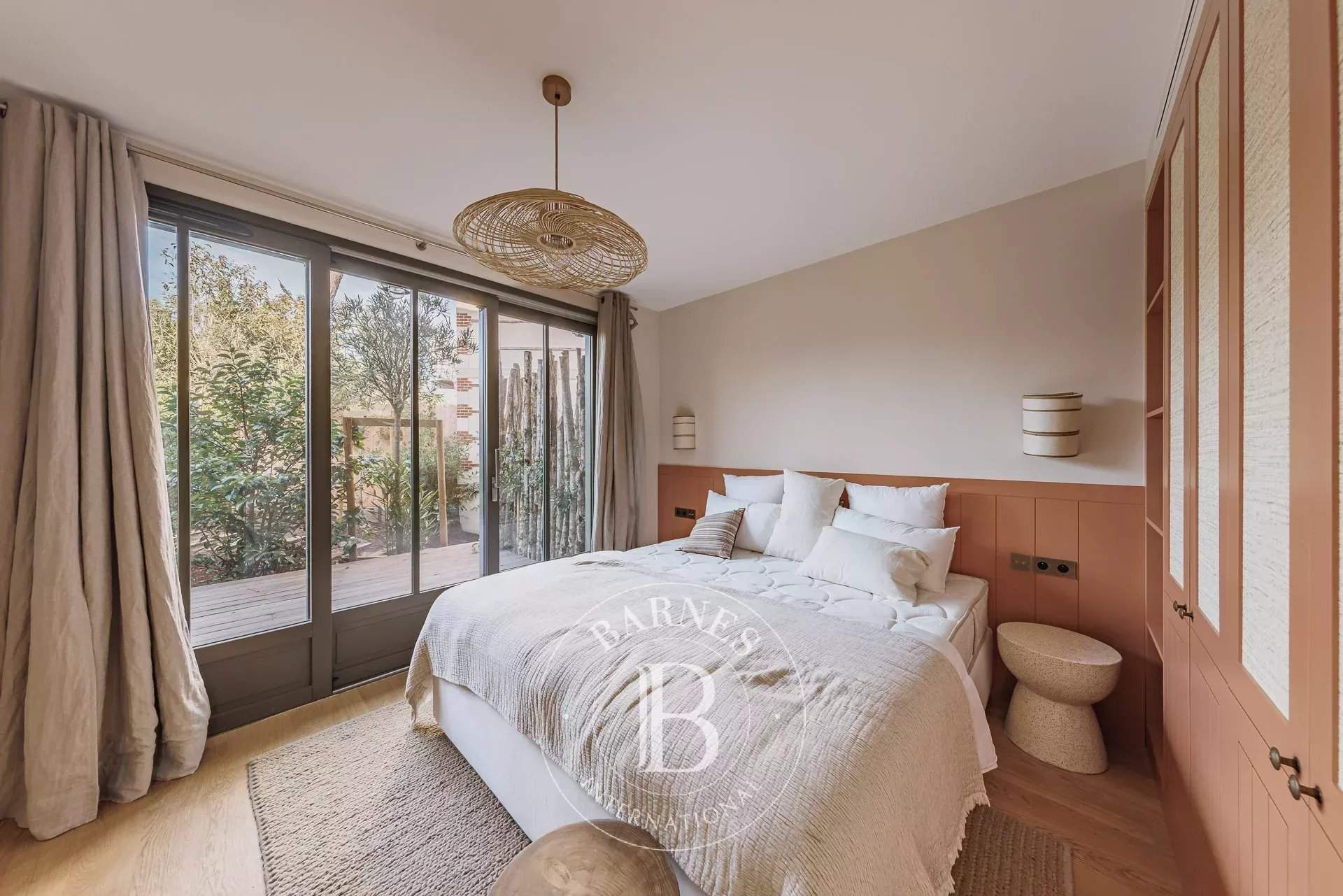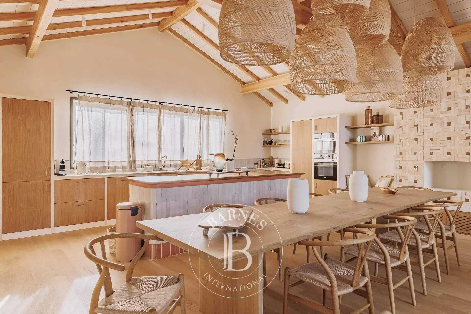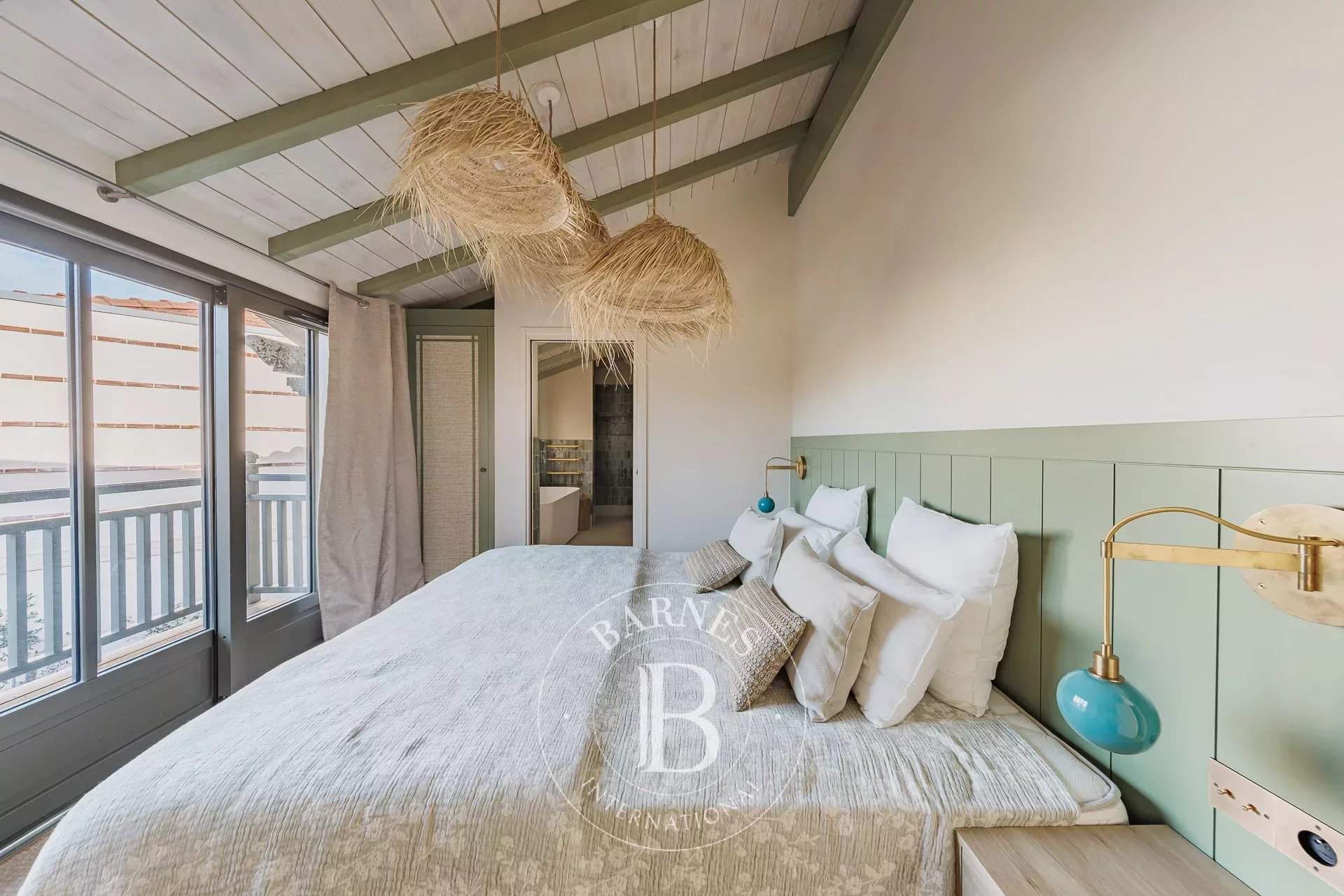 L'agence BARNES Cap Ferret vous présente la « Villa du Marché », une adresse rare au coeur du Cap Ferret, pensée pour des vacances où tout se fait à pied. À quelques mètres du marché, des commerces et des plages, cette villa neuve bénéficie d'un emplacement central tout en offrant des volumes confortables et une organisation parfaitement adaptée à la vie de villégiature au Cap Ferret. La pièce de vie principale se distingue par sa belle hauteur sous plafond et sa luminosité. Elle réunit un vaste salon, un salon TV et une cuisine ouverte entièrement équipée, formant un espace convivial et fonctionnel. L'ensemble permet d'organiser facilement des déjeuners et dîners sur la terrasse, dans un cadre agréable et convivial. La villa principale accueille quatre chambres, chacune disposant de sa propre salle d'eau, garantissant un excellent niveau de confort. Une seconde habitation indépendante complète la propriété : elle comprend deux chambres avec salles d'eau privatives ainsi qu'une cuisine équipée, idéale pour loger famille ou amis en toute autonomie. À l'extérieur, les aménagements ont été conçus pour profiter pleinement des beaux jours : piscine chauffée et sécurisée, cuisine d'été avec plancha, solarium et boulodrome. Une villa récente, entièrement climatisée et soigneusement décorée, offrant une capacité d'accueil de 12 personnes, idéale pour profiter du Cap Ferret.