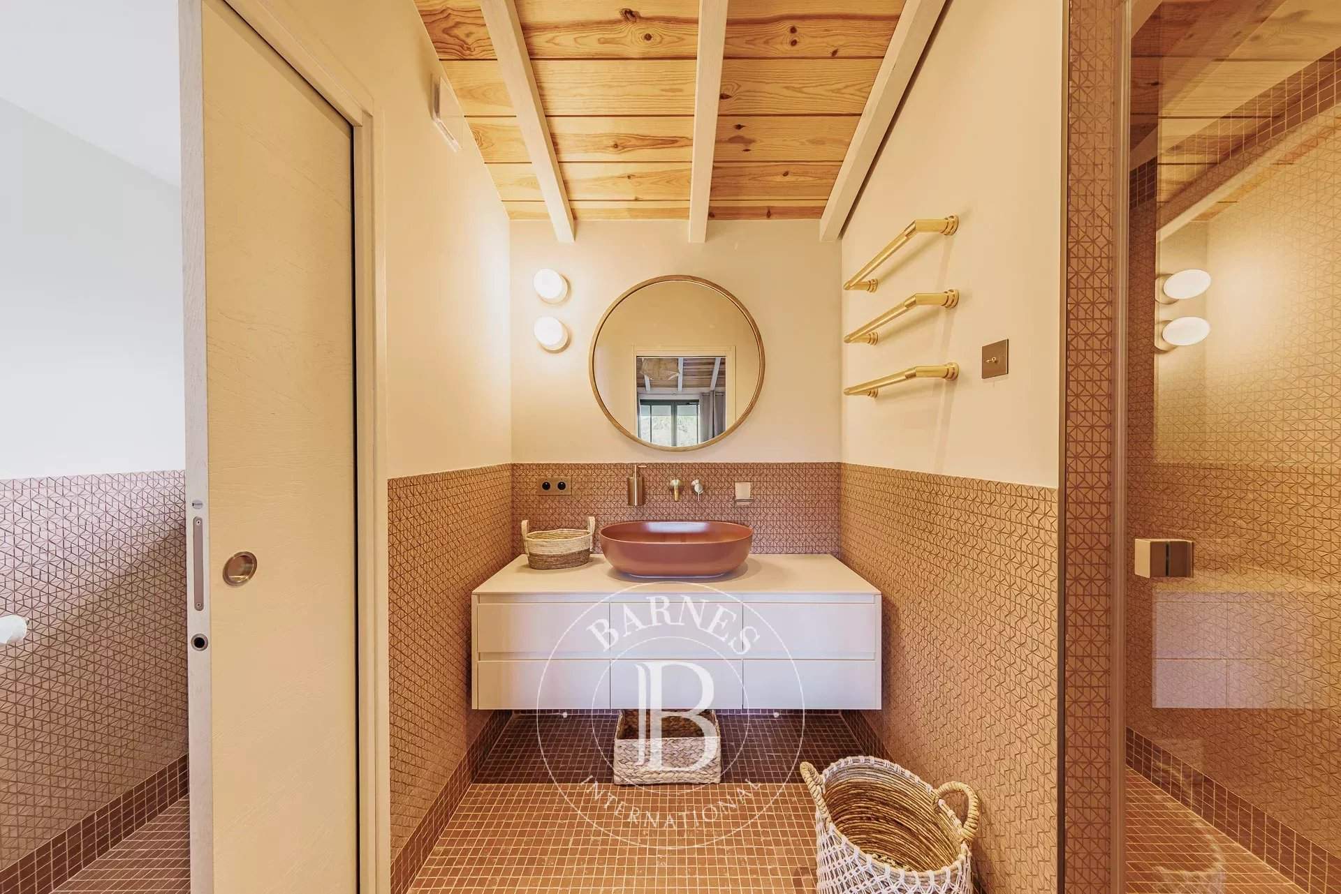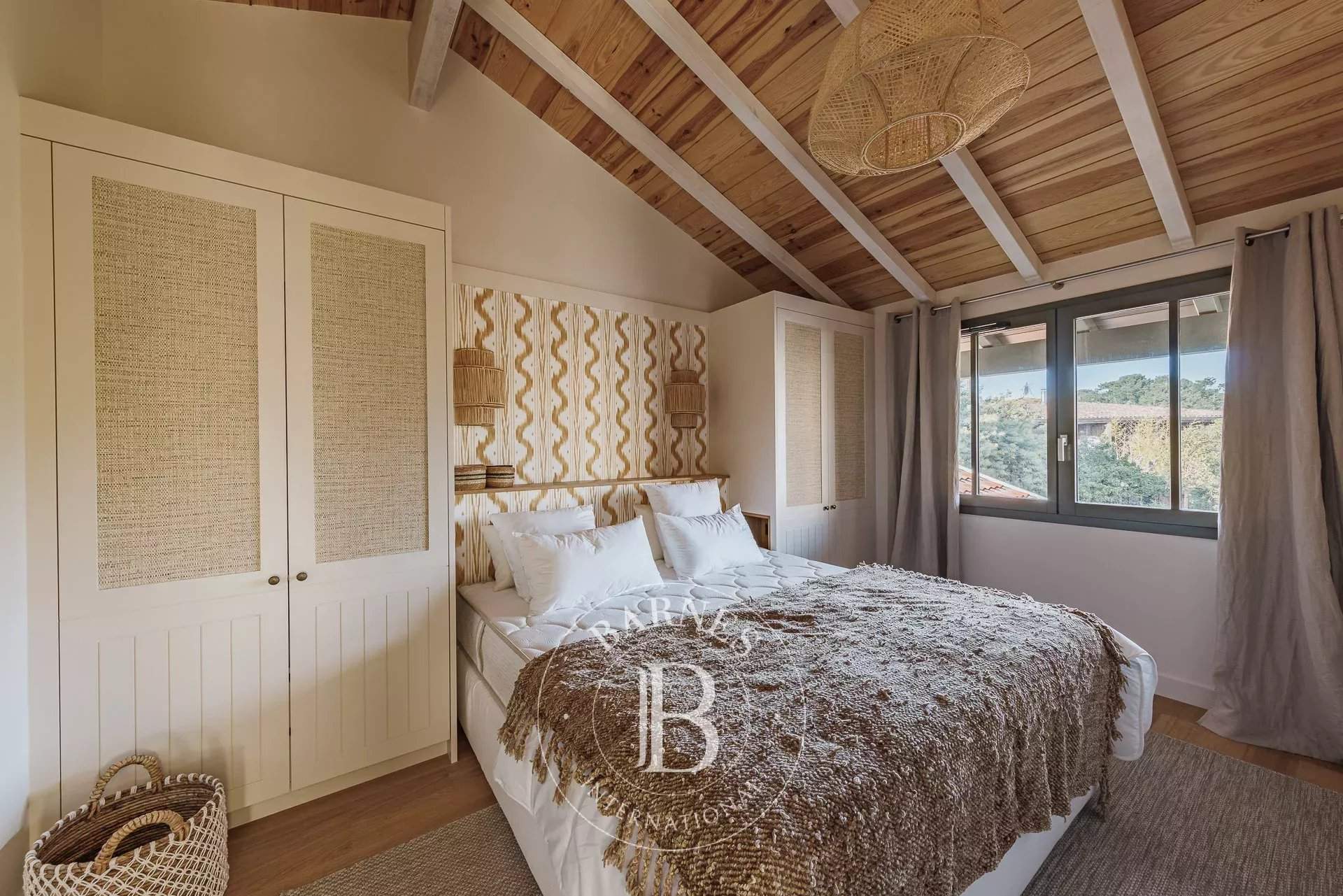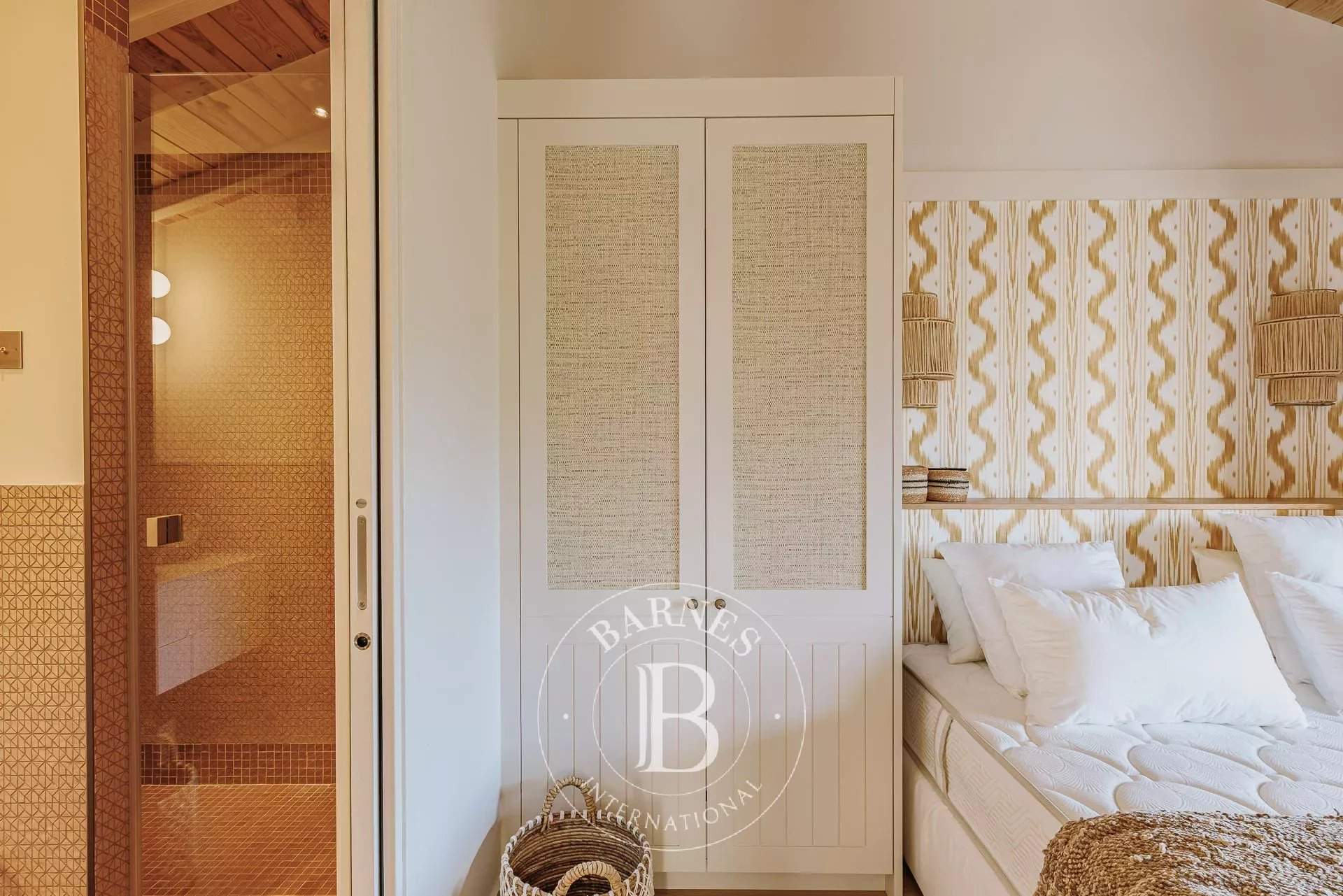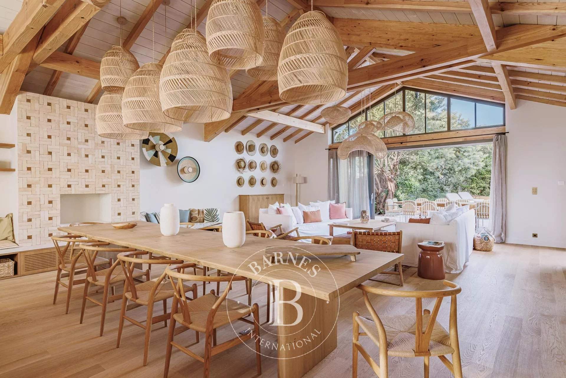 L'agence BARNES Cap Ferret vous présente la « Villa du Marché », une adresse rare au coeur du Cap Ferret, pensée pour des vacances où tout se fait à pied. À quelques mètres du marché, des commerces et des plages, cette villa neuve bénéficie d'un emplacement central tout en offrant des volumes confortables et une organisation parfaitement adaptée à la vie de villégiature au Cap Ferret. La pièce de vie principale se distingue par sa belle hauteur sous plafond et sa luminosité. Elle réunit un vaste salon, un salon TV et une cuisine ouverte entièrement équipée, formant un espace convivial et fonctionnel. L'ensemble permet d'organiser facilement des déjeuners et dîners sur la terrasse, dans un cadre agréable et convivial. La villa principale accueille quatre chambres, chacune disposant de sa propre salle d'eau, garantissant un excellent niveau de confort. Une seconde habitation indépendante complète la propriété : elle comprend deux chambres avec salles d'eau privatives ainsi qu'une cuisine équipée, idéale pour loger famille ou amis en toute autonomie. À l'extérieur, les aménagements ont été conçus pour profiter pleinement des beaux jours : piscine chauffée et sécurisée, cuisine d'été avec plancha, solarium et boulodrome. Une villa récente, entièrement climatisée et soigneusement décorée, offrant une capacité d'accueil de 12 personnes, idéale pour profiter du Cap Ferret.