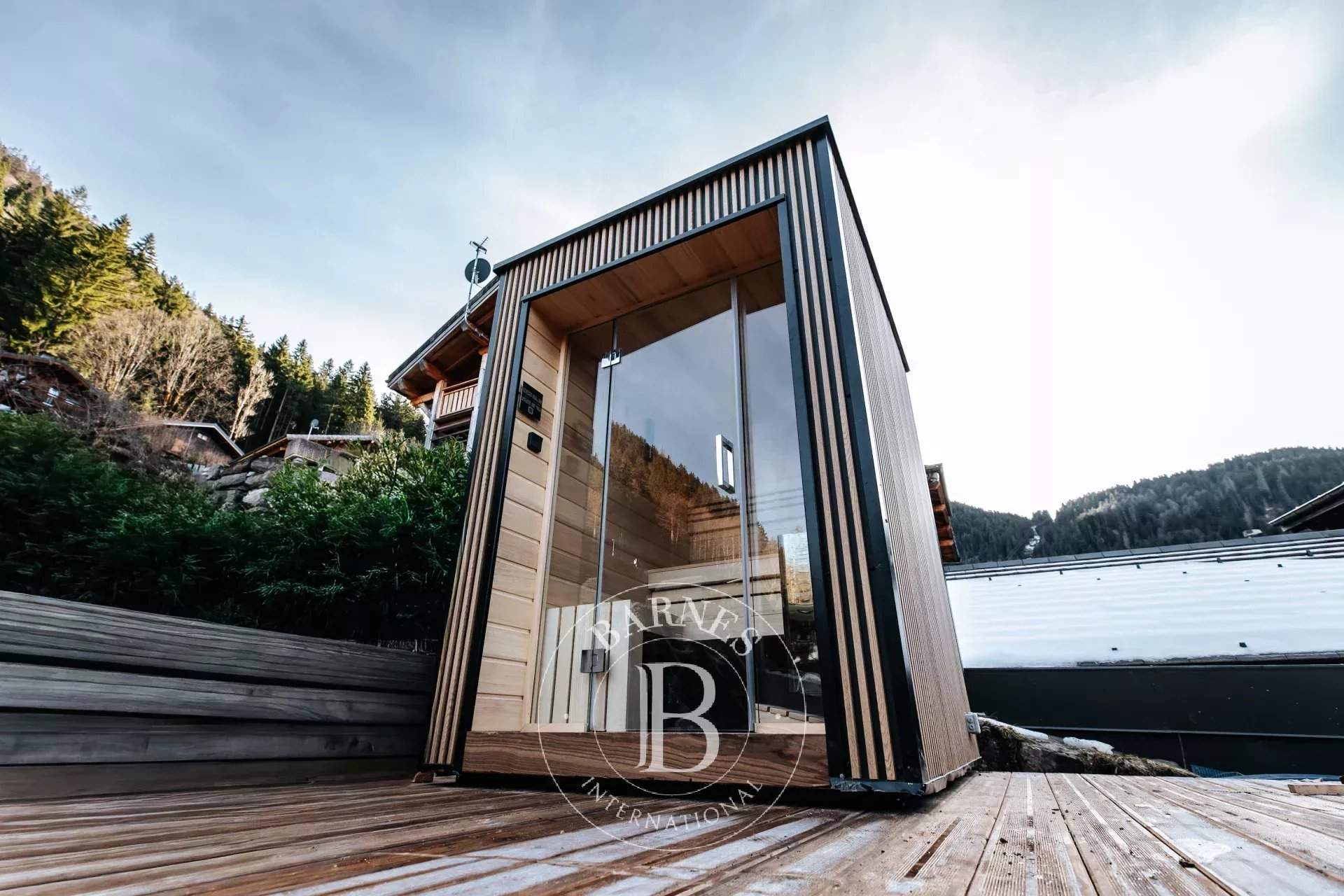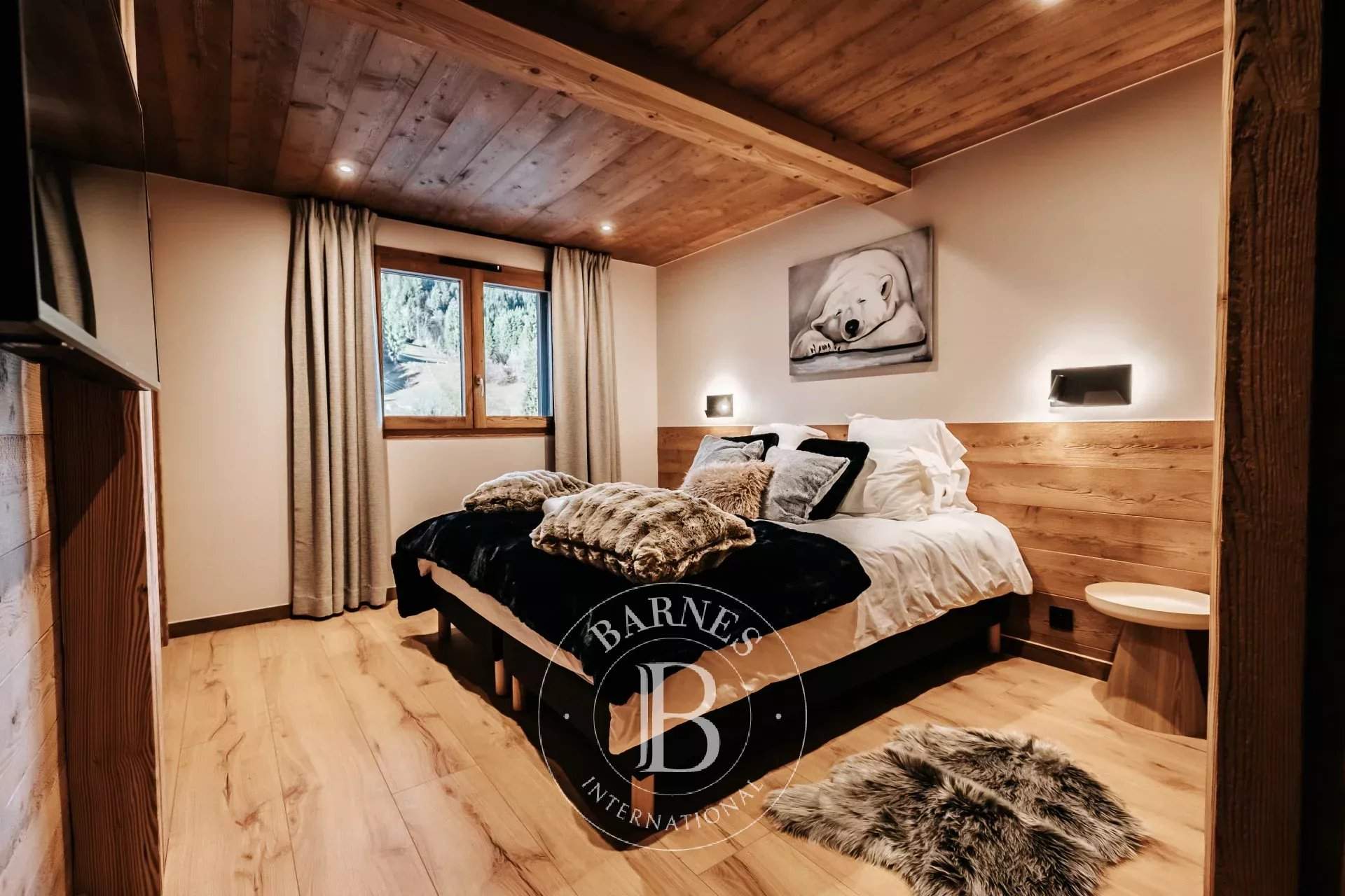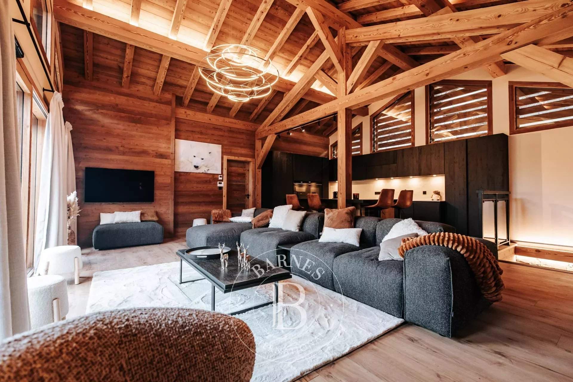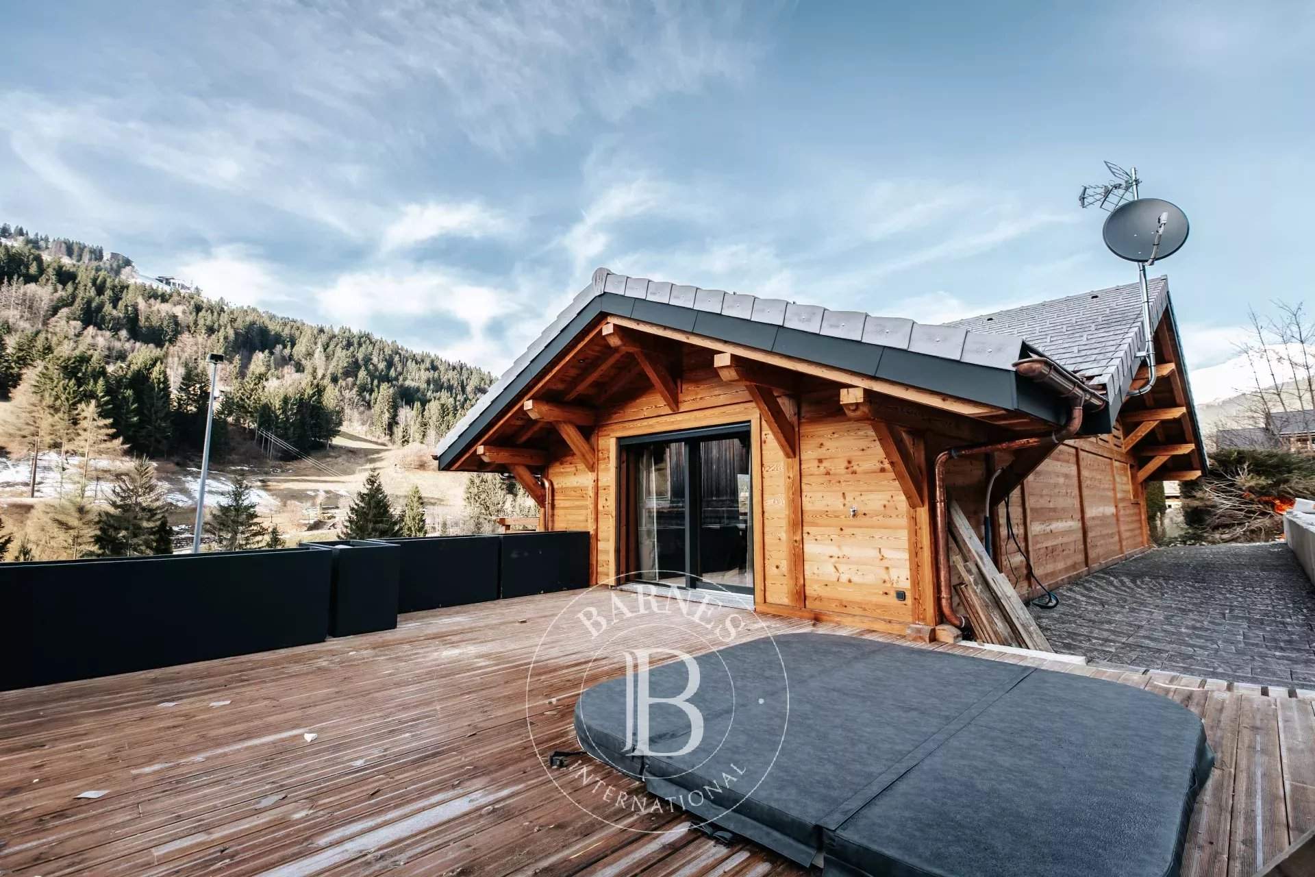 Chalet neuf à Morzine - Secteur de la Mernaz 270 m² - 5 chambres en suite - Capacité 10 personnes Situé dans le secteur recherché de la Mernaz à Morzine, ce chalet neuf, construit et finalisé fin 2025, développe environ 270 m² répartis sur trois niveaux. Conçu pour la location saisonnière, il offre des volumes généreux et une organisation particulièrement adaptée aux séjours en famille ou entre amis. Le chalet peut accueillir jusqu'à 10 personnes grâce à ses cinq chambres en suite, dont quatre situées au premier étage et une au dernier niveau, à proximité des espaces de vie. Le dernier étage accueille une pièce de vie lumineuse réunissant salon, salle à manger et cuisine équipée. Le salon est doté d'une cheminée à insert, apportant une atmosphère chaleureuse après une journée en montagne, et s'ouvre sur une terrasse extérieure aménagée avec un jacuzzi professionnel à débordement et un sauna, pensés pour les moments de détente. Dès l'entrée, le chalet dispose d'un casier à skis avec sèche-chaussures, facilitant le retour des pistes. Un garage fermé pour une voiture, complété par un garage couvert permettant d'accueillir jusqu'à trois motos, vient parfaire les prestations pratiques du bien. La localisation offre un réel confort de séjour, avec l'arrêt de la navette gratuite situé juste en face du chalet et le téléphérique de Nyon accessible à environ 500 mètres, permettant de rejoindre rapidement le domaine skiable des Portes du Soleil. Le centre du village et ses commerces restent facilement accessibles. Dans le cadre de la gestion locative BARNES, le séjour inclut le ménage ainsi que le changement de serviettes en milieu de séjour, garantissant un niveau de confort constant. De nombreux services à la carte sont également proposés : mise à disposition de matériel de puériculture (lit bébé, chaise haute), remises sur les forfaits de ski et la location de matériel de glisse, ainsi que l'organisation de cours de ski avec l'ESF de Morzine. L'équipe BARNES accompagne également les hôtes dans l'organisation de prestations complémentaires afin de personnaliser chaque séjour. Un chalet récent, bien situé et fonctionnel, pensé pour profiter pleinement de Morzine et du domaine des Portes du Soleil, en toute saison.