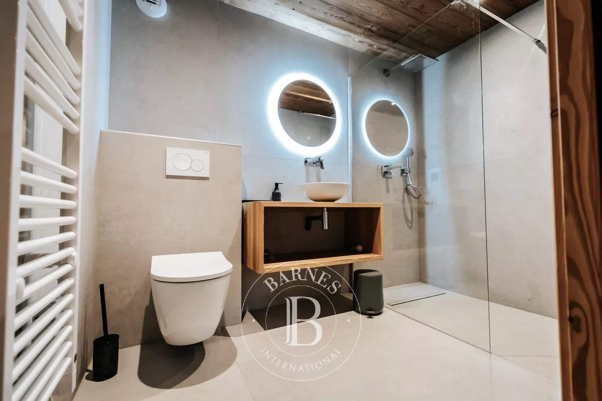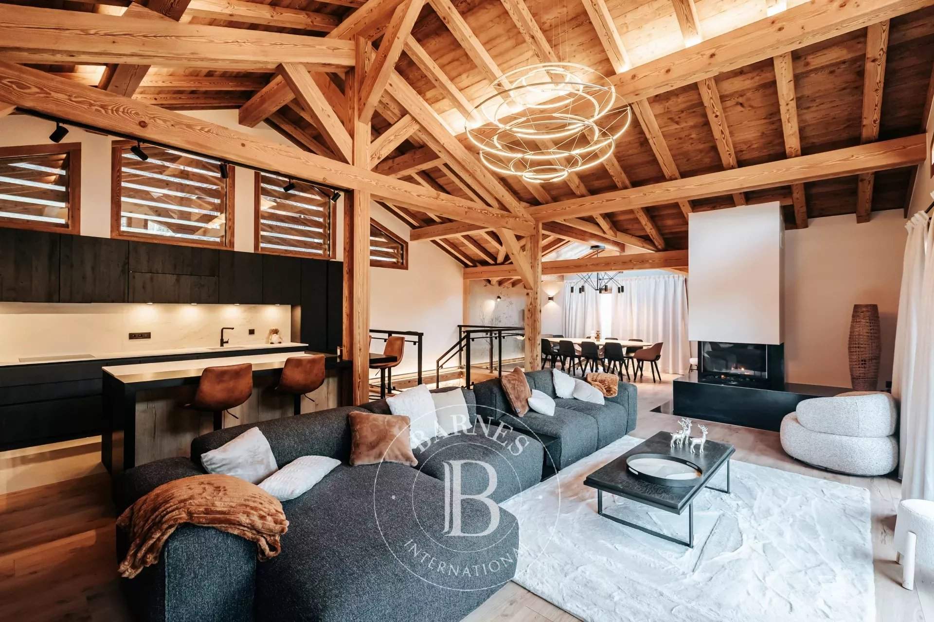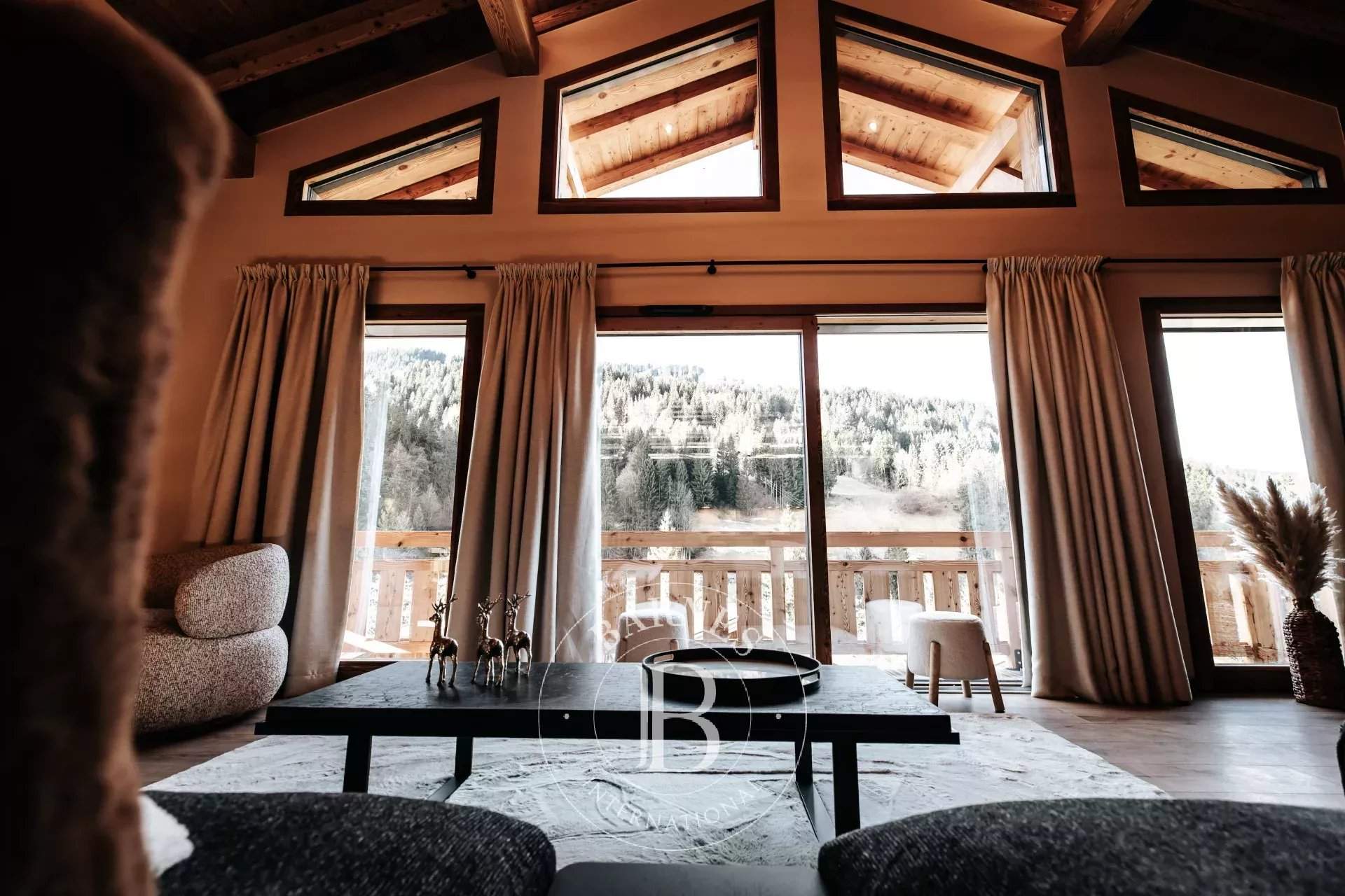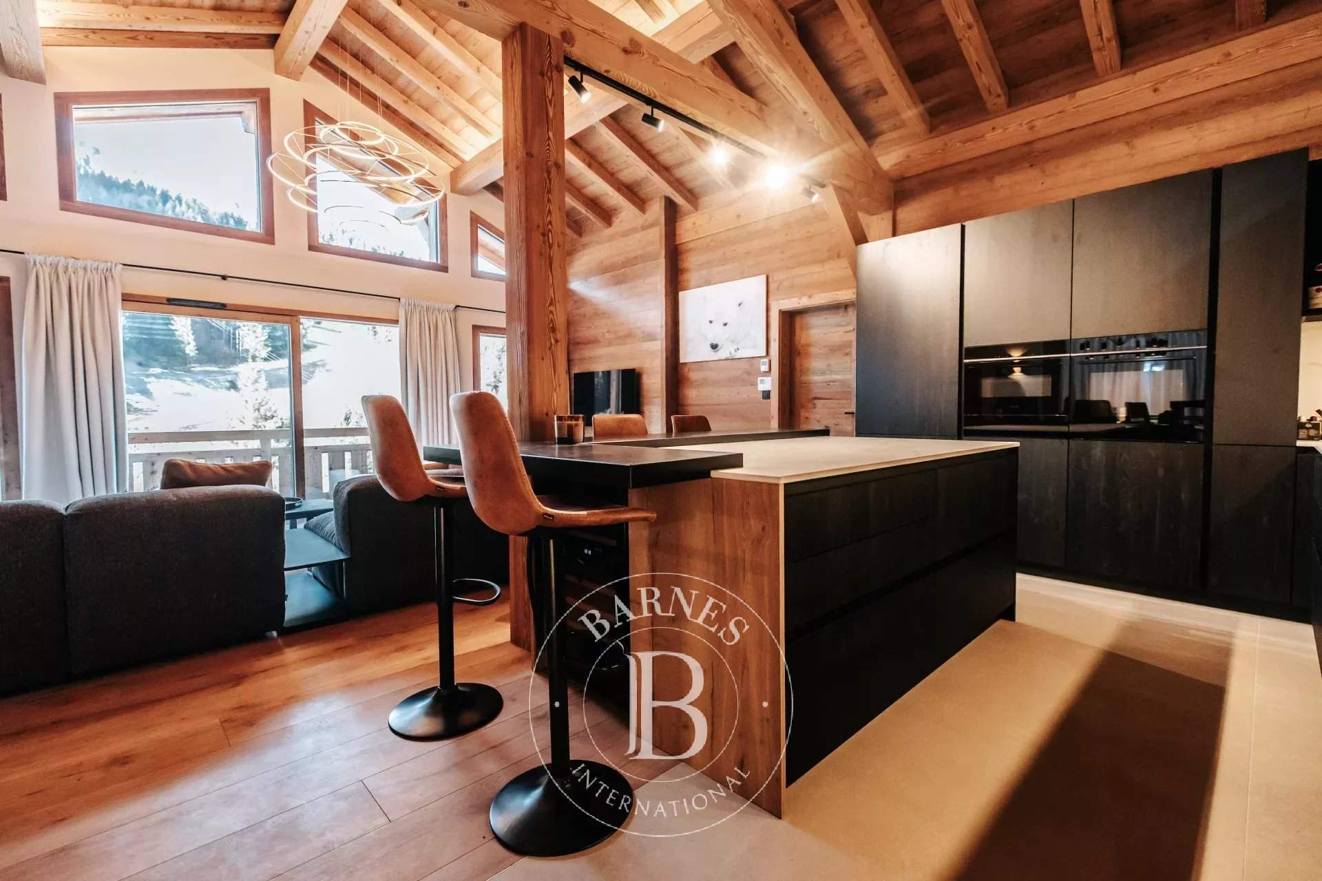 Chalet neuf à Morzine - Secteur de la Mernaz 270 m² - 5 chambres en suite - Capacité 10 personnes Situé dans le secteur recherché de la Mernaz à Morzine, ce chalet neuf, construit et finalisé fin 2025, développe environ 270 m² répartis sur trois niveaux. Conçu pour la location saisonnière, il offre des volumes généreux et une organisation particulièrement adaptée aux séjours en famille ou entre amis. Le chalet peut accueillir jusqu'à 10 personnes grâce à ses cinq chambres en suite, dont quatre situées au premier étage et une au dernier niveau, à proximité des espaces de vie. Le dernier étage accueille une pièce de vie lumineuse réunissant salon, salle à manger et cuisine équipée. Le salon est doté d'une cheminée à insert, apportant une atmosphère chaleureuse après une journée en montagne, et s'ouvre sur une terrasse extérieure aménagée avec un jacuzzi professionnel à débordement et un sauna, pensés pour les moments de détente. Dès l'entrée, le chalet dispose d'un casier à skis avec sèche-chaussures, facilitant le retour des pistes. Un garage fermé pour une voiture, complété par un garage couvert permettant d'accueillir jusqu'à trois motos, vient parfaire les prestations pratiques du bien. La localisation offre un réel confort de séjour, avec l'arrêt de la navette gratuite situé juste en face du chalet et le téléphérique de Nyon accessible à environ 500 mètres, permettant de rejoindre rapidement le domaine skiable des Portes du Soleil. Le centre du village et ses commerces restent facilement accessibles. Dans le cadre de la gestion locative BARNES, le séjour inclut le ménage ainsi que le changement de serviettes en milieu de séjour, garantissant un niveau de confort constant. De nombreux services à la carte sont également proposés : mise à disposition de matériel de puériculture (lit bébé, chaise haute), remises sur les forfaits de ski et la location de matériel de glisse, ainsi que l'organisation de cours de ski avec l'ESF de Morzine. L'équipe BARNES accompagne également les hôtes dans l'organisation de prestations complémentaires afin de personnaliser chaque séjour. Un chalet récent, bien situé et fonctionnel, pensé pour profiter pleinement de Morzine et du domaine des Portes du Soleil, en toute saison.
