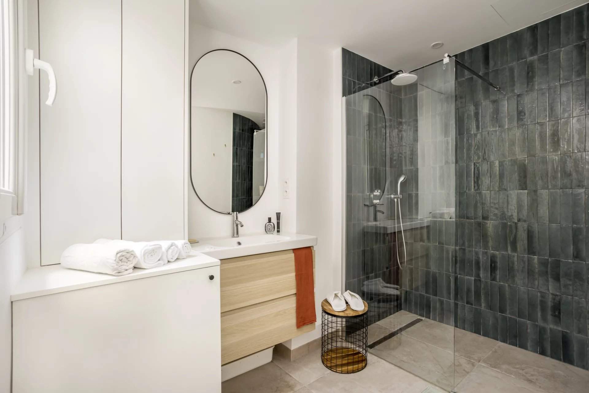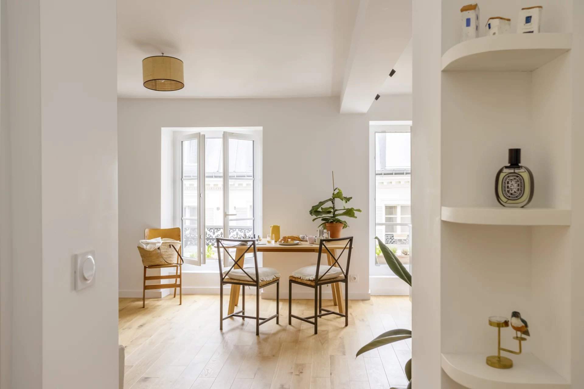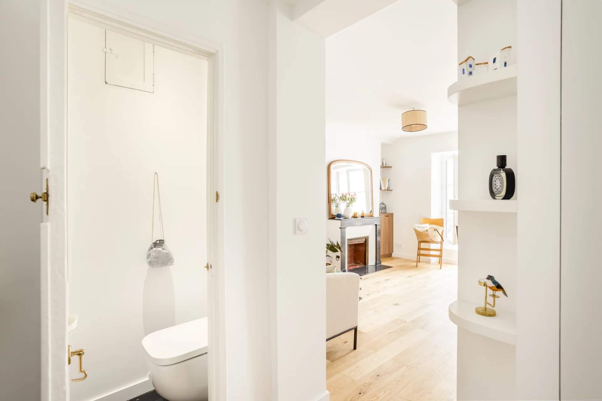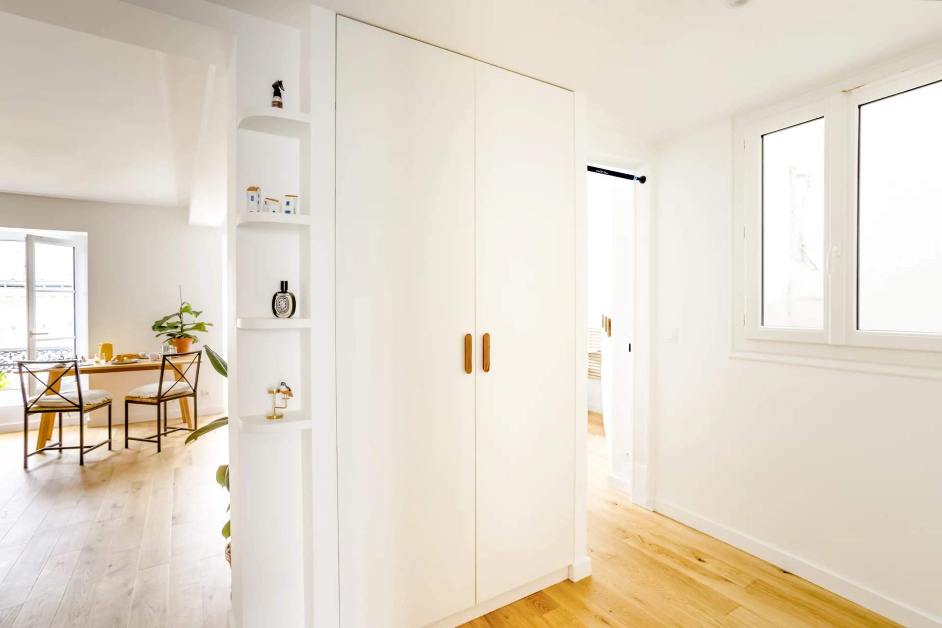 Entre le Canal Saint Martin et la Place de la République, ce magnifique appartement entièrement rénové par architecte se situe au 5ème étage par escalier d'un immeuble du XIXème siècle. Il se compose d'une entrée desservant une belle pièce de vie lumineuse avec une cuisine ouverte, une belle chambre avec rangements, une salle de douche ainsi qu'un WC séparé. Idéal pied à terre au coeur d'un quartier dynamique et très prisé. Location de 30 jours minimum. Toutes les réservations doivent être préalablement validées par notre équipe. Nous vous invitons à nous communiquer vos dates, critères et le nombre de personnes afin que nous puissions vous faire une proposition adaptée. Un acompte de 25 % du montant total de la réservation sera exigé pour chaque réservation. Honoraires à la charge du locataire : 12% HT du montant de la location HC, incluant les états des lieux d'entrée et de sortie.