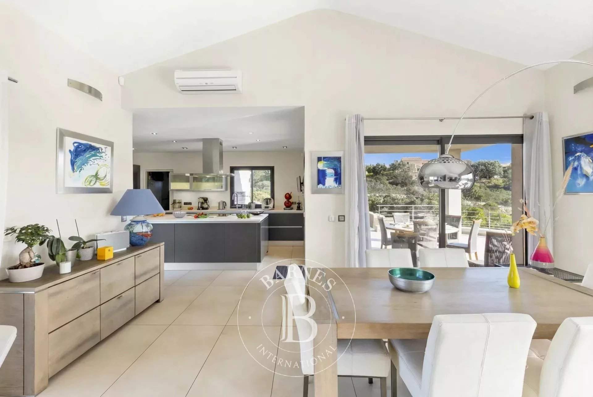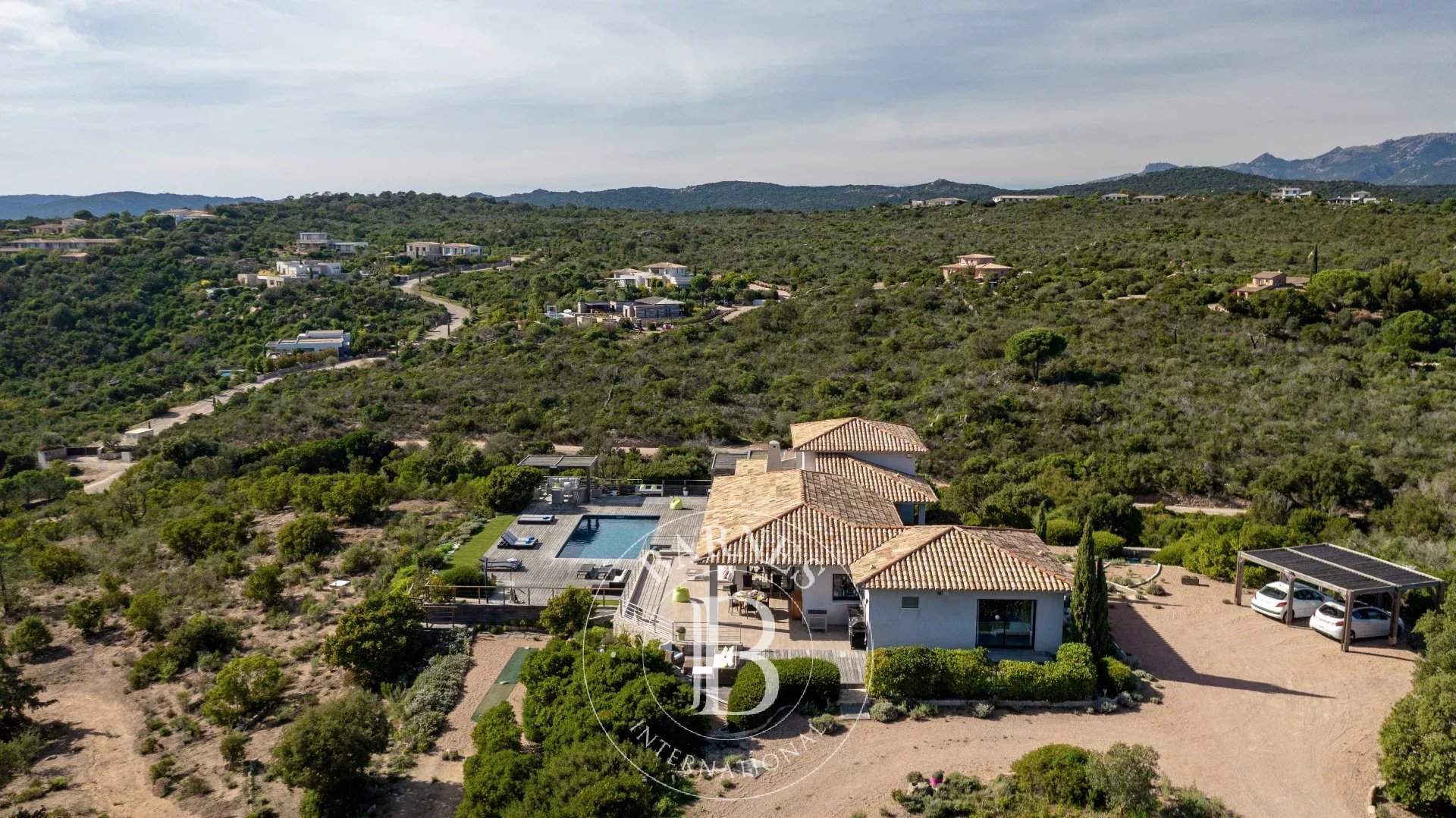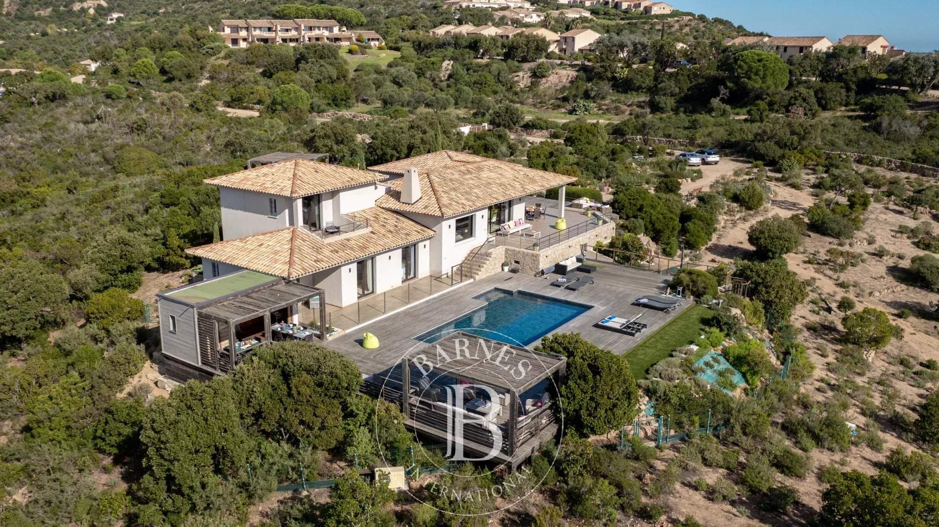 RL207 - Casa di l'Oru À quelques minutes à pied de la plage de Palombaggia, cette villa offre une vue sur la baie dans un cadre préservé. D'environ 270 m² sur deux niveaux, elle dispose d'une vaste pièce à vivre lumineuse s'ouvrant sur la terrasse, d'une salle à manger et d'une cuisine américaine parfaitement équipée. La partie nuit comprend 5 chambres, dont une suite parentale avec salle de douche et une chambre indépendante, alliant confort et intimité. Le vaste terrain, planté d'essences locales et agrémenté d'enrochements naturels, se découvre à travers un parcours naturel invitant à la détente. La villa dispose d'une piscine chauffée hors période estivale et le jacuzzi n'est pas accessible. Alliant environnement préservé et proximité du centre de Porto-Vecchio, cette propriété offre un cadre parfait pour des vacances d'exception. Services inclus : ménage régulier, linge de maison et de piscine, ainsi qu'un service de conciergerie personnalisé. Les informations sur les risques auxquels ce bien est exposé sont disponibles sur le site Géorisques : www.georisques.gouv.fr