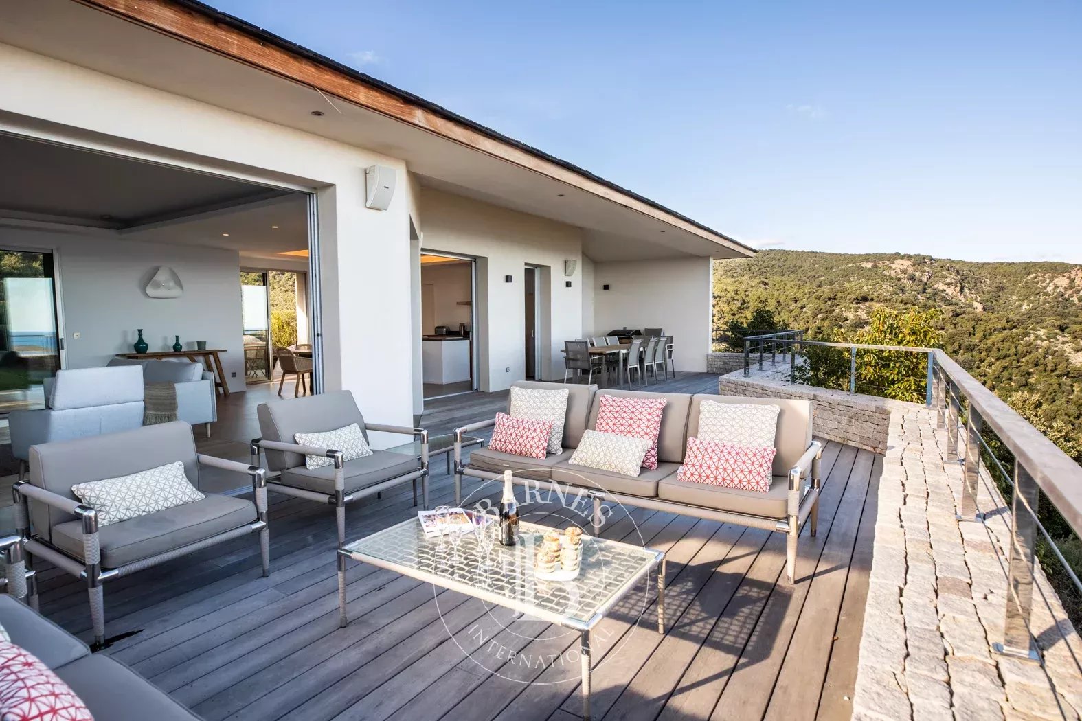 RL379 - Villa Funtana Située dans le Domaine privé des Hauts de Fontana, surplombant la baie de Palombaggia, cette villa avec vue mer panoramique d'environ 400 m², répartie sur deux niveaux, offre une pièce de vie avec cuisine américaine ouvertes sur terrasse, un cellier et une buanderie. 7 chambres avec salles de douche privatives, dont 2 master-room avec salle de bains et une chambre de service avec salle de douche. La villa est édifiée sur un terrain paysager d'essences locales d'environ 2 hectares avec piscine et terrain de pétanque. Idéalement située, non loin du centre de Porto-Vecchio et de l'aéroport international de Figari. Services inclus : ménage régulier, linge de maison, linge de piscine et service conciergerie personnalisé. Les informations sur les risques auxquels ce bien est exposé sont disponibles sur le site Géorisques : www.georisques.gouv.fr