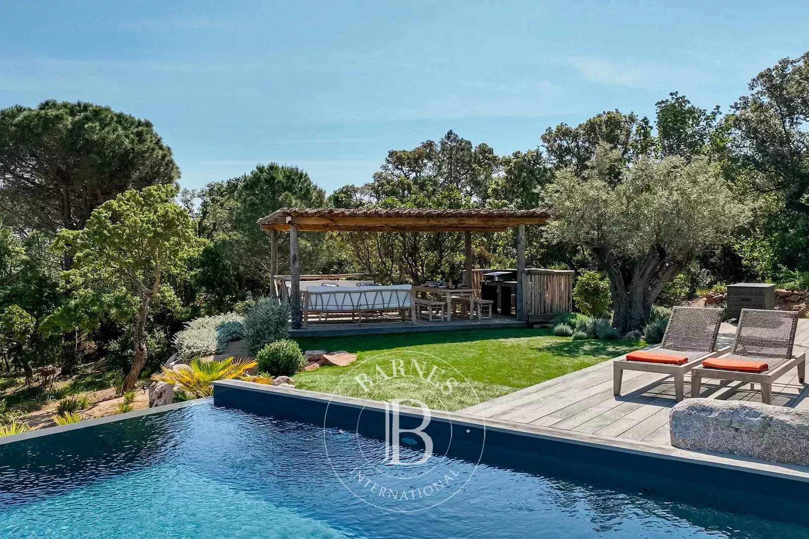La propriété comprend une villa d'environ 300 m², répartie sur deux niveaux. Le niveau principal comprend, une large pièce à vivre baignée de lumière et donnant sur la terrasse vue mer. Une cuisine moderne, ouverte et toute équipée. Une première chambre est disponible à droite du salon et bénéficie de sa salle de douche privative et d'une terrasse attenante avec vue jardin. La seconde chambre dispose de sa salle d'eau attenante, dressing et d'un accès terrasse vue mer. La magnifique suite parentale est située à l'autre extrémité de la villa et dispose également d'une salle de douche et d'un accès terrasse vue mer. Une quatrième chambre vient compléter l'agencement de la villa et profite des mêmes prestations, salle de douche, accès terrasse. Une salle de sport toute équipée est mise à disposition au rez-de-chaussée et dispose d'une salle de douche et rétroprojecteur. Un jardin paysager d'essences locales, une piscine à débordement, une cuisine d'été et un terrain de pétanque viennent compléter les nombreux atouts de cette propriété. Environnement calme et préservé, station balnéaire prisée, plage accessible à pied en 15 minutes. Services inclus : ménage régulier, linge de maison, linge de piscine et service conciergerie personnalisé. « Les informations sur les risques auxquels ce bien est exposé sont disponibles sur le site Géorisques : www.georisques.gouv.fr »