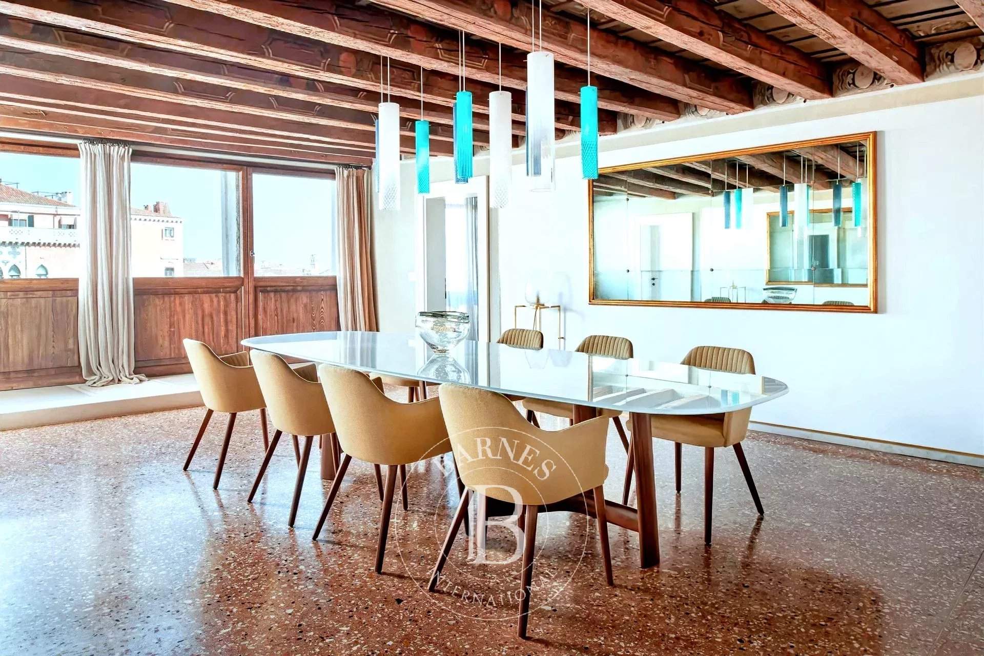 Magnifique appartement avec une vue imprenable sur le Grand Canal et le Pont du Rialto, situé dans un palais historique prestigieux au coeur de Venise. Cette résidence exceptionnelle d'environ 250 mètres carrés offre une expérience de vie authentique et raffinée, mise en valeur par une cuisine spectaculaire donnant sur le Grand Canal, avec une vue époustouflante sur le célèbre Pont du Rialto. L'appartement comprend quatre chambres et quatre salles de bain, toutes élégamment meublées et équipées de tout le confort nécessaire. Les pièces sont spacieuses, lumineuses et décorées avec goût ? idéales pour les familles ou les groupes à la recherche d'intimité, d'espace et du charme vénitien. Un joyau rare, également disponible pour des séjours courts à partir de trois nuits, parfait pour vivre Venise dans un cadre exclusif et enchanteur.